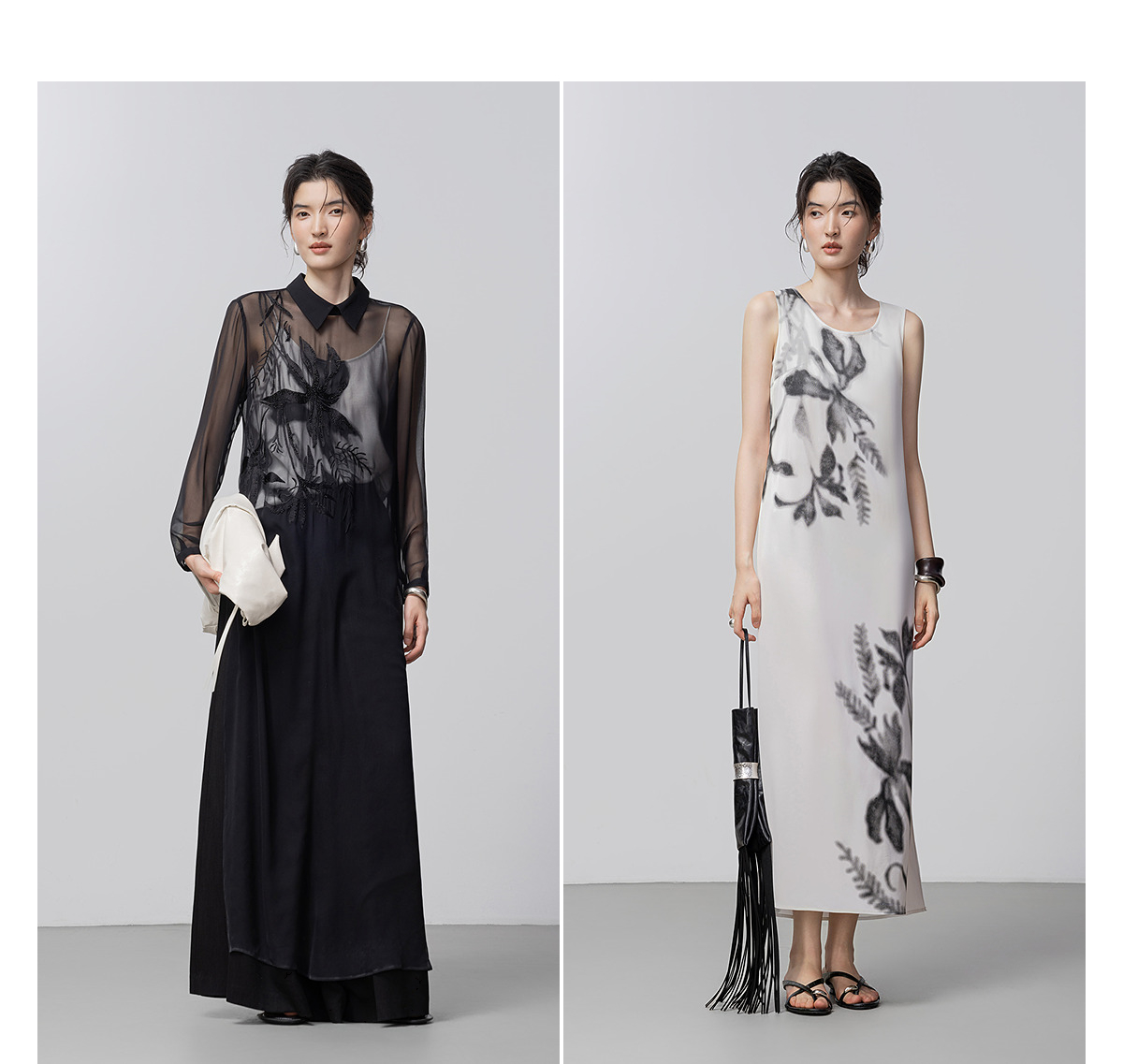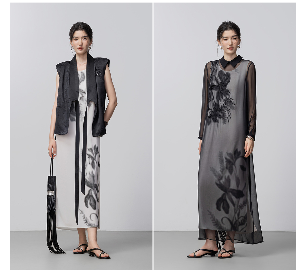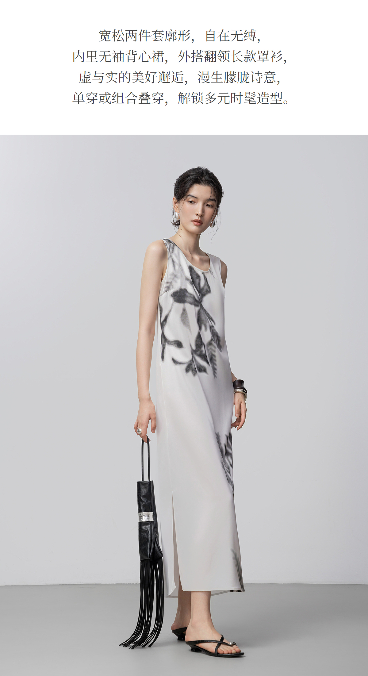 【林栖设计小店】【手工钉珠】笔墨花事生活在左印花连衣裙两件套2026早春新款花仙子长裙女1961126
