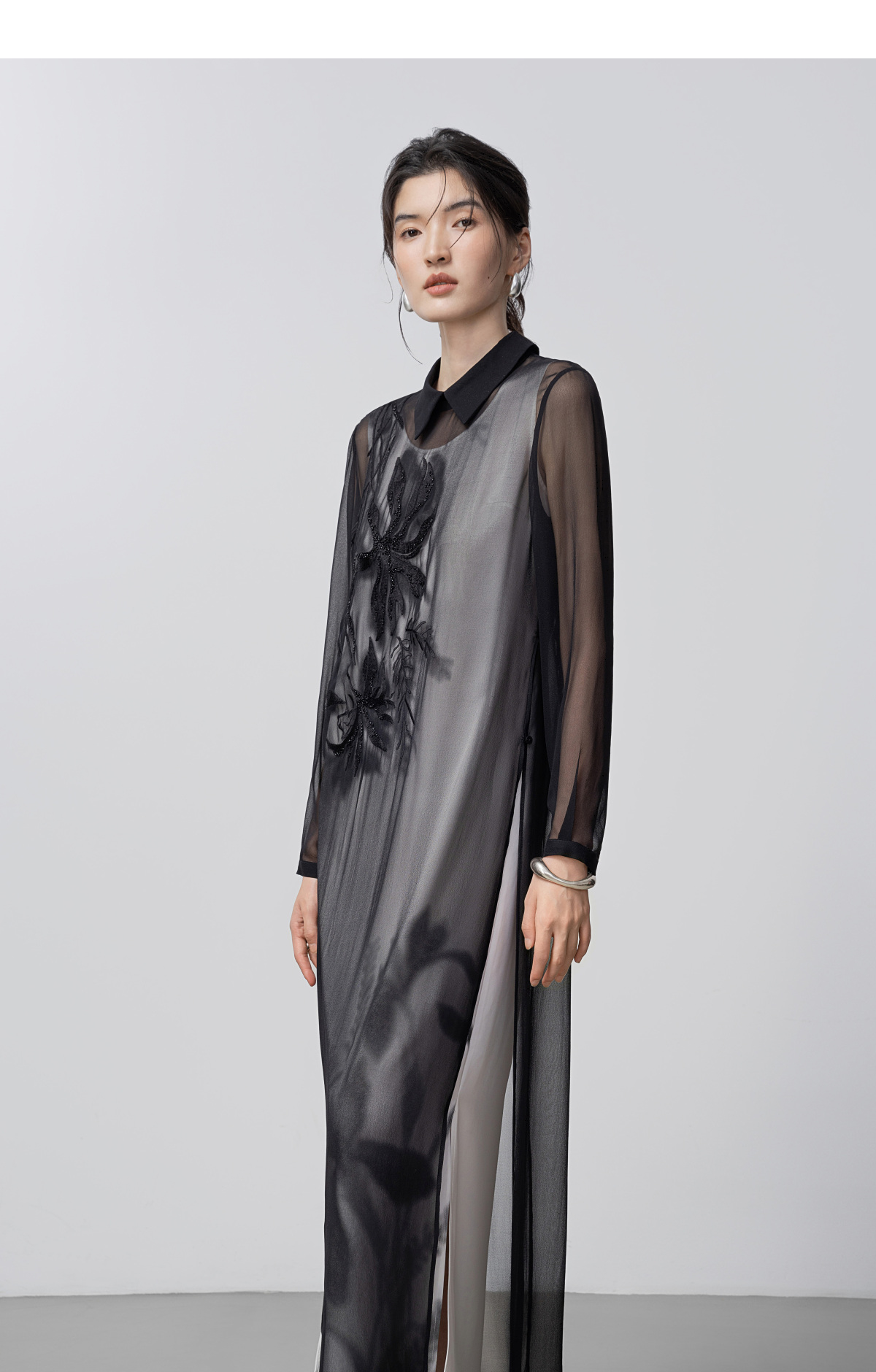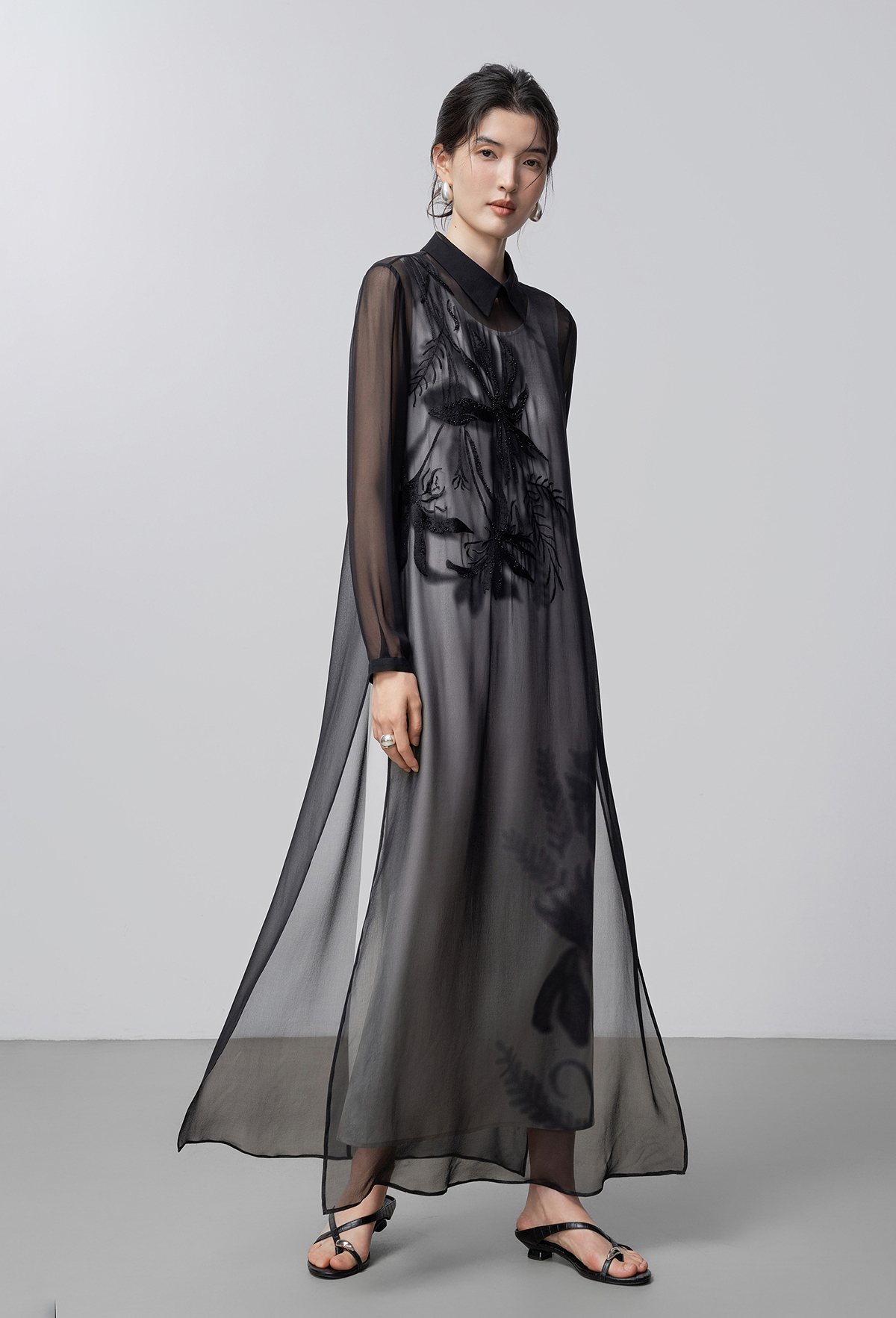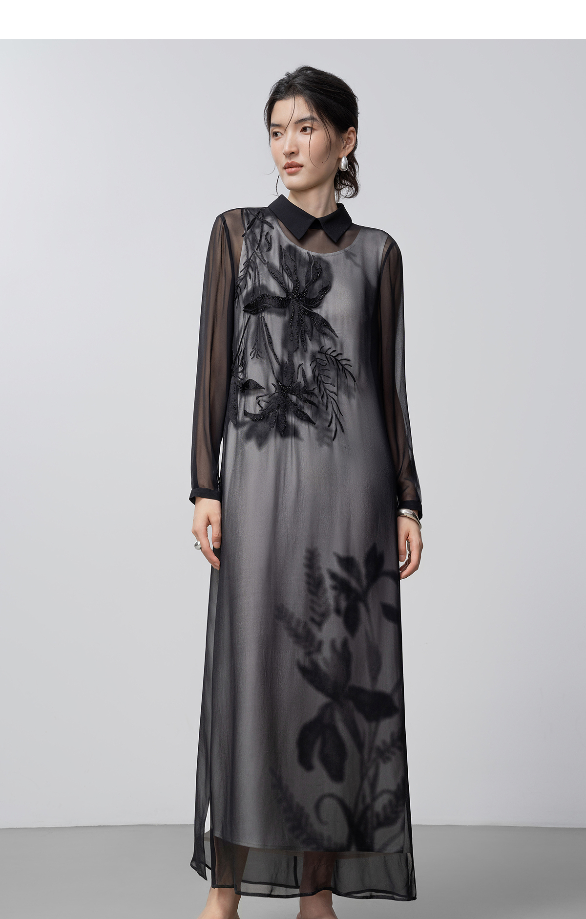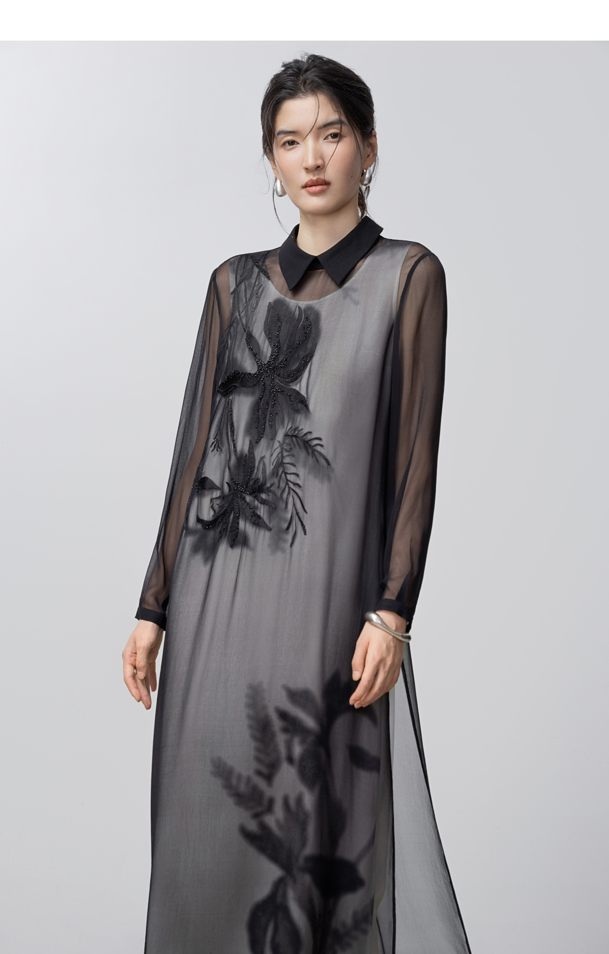 【林栖设计小店】【手工钉珠】笔墨花事生活在左印花连衣裙两件套2026早春新款花仙子长裙女1961126