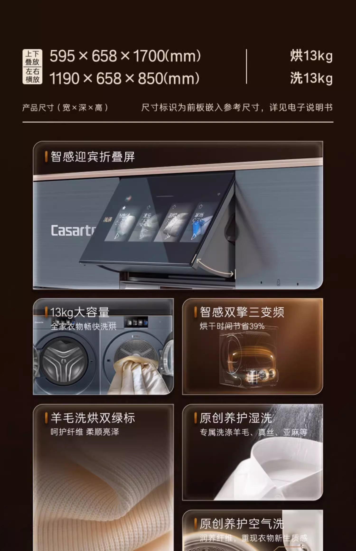 【卡萨帝指挥家】13kg大容量平嵌洗衣机热泵烘干机组合洗烘套装LC