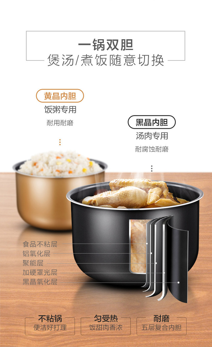【家用电器】电压力锅*Midea/美的MY-CD5026P电压力锅双胆微电脑式5L智能家用高压锅