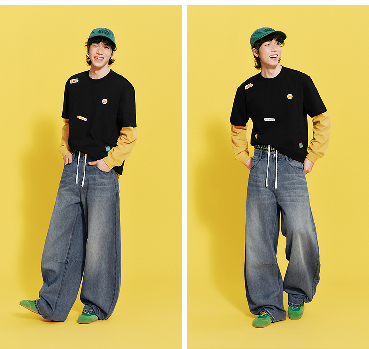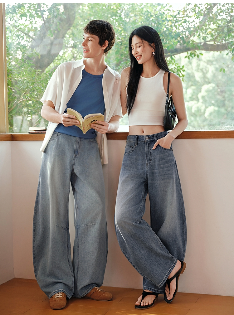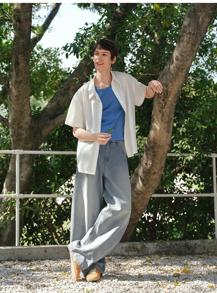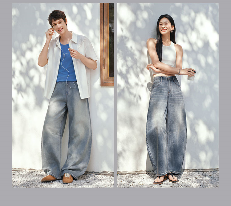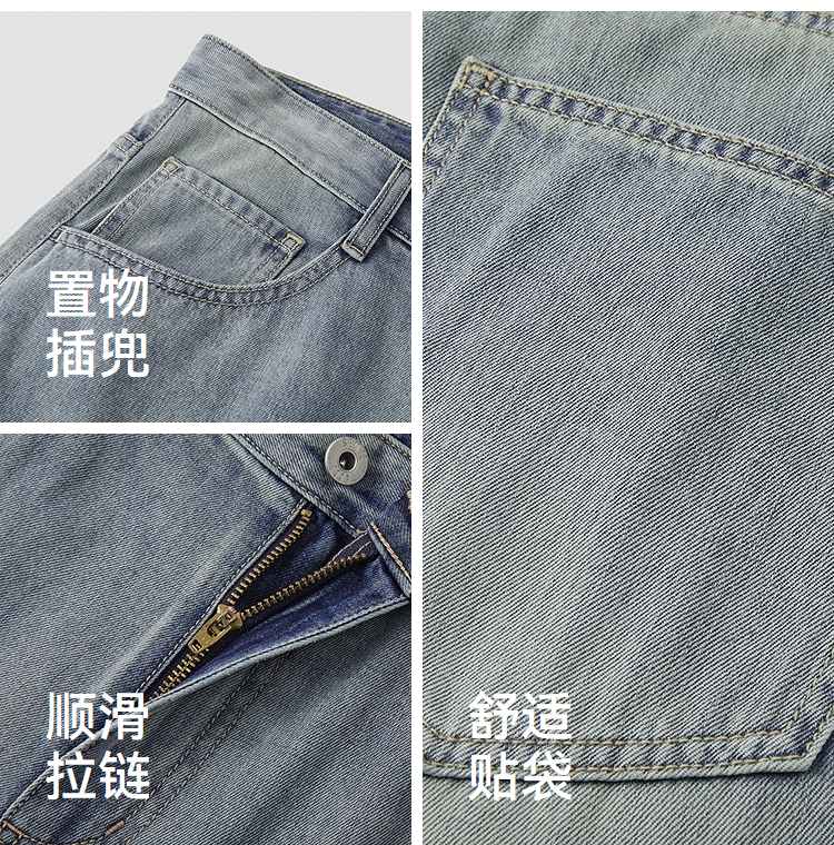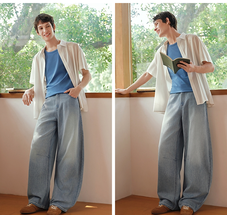 森柔|森马牛仔裤男夏季显瘦阔感弯刀裤2026新款凉感复古做旧长裤