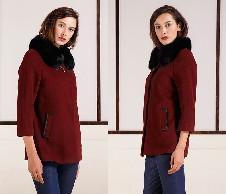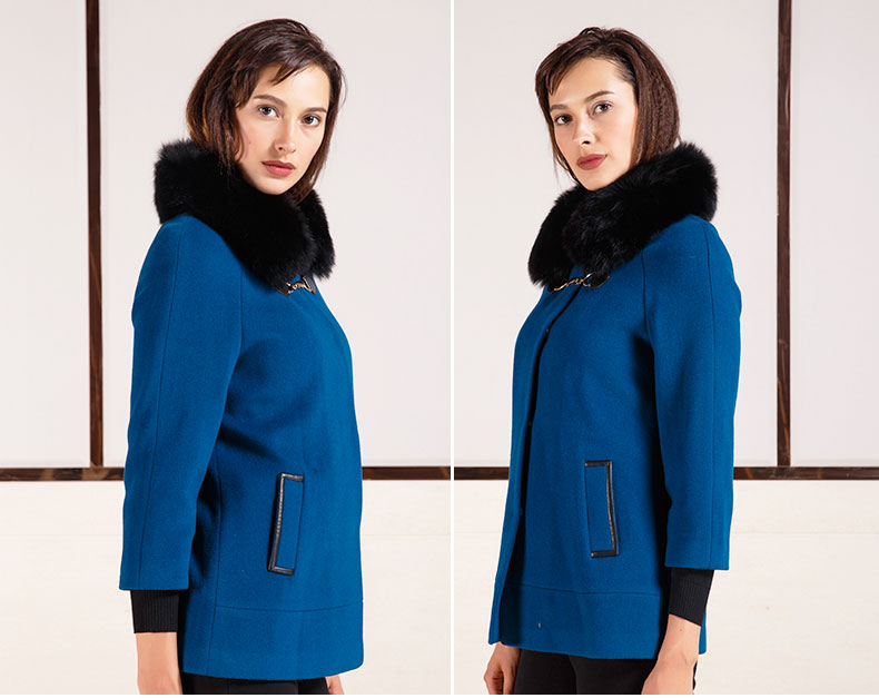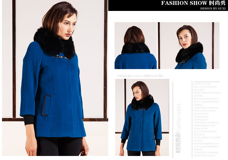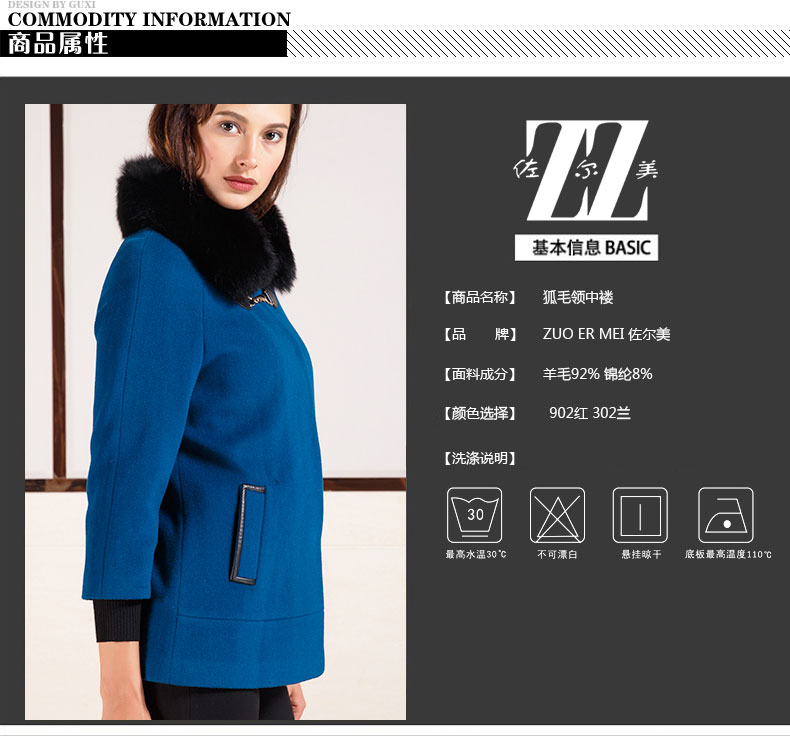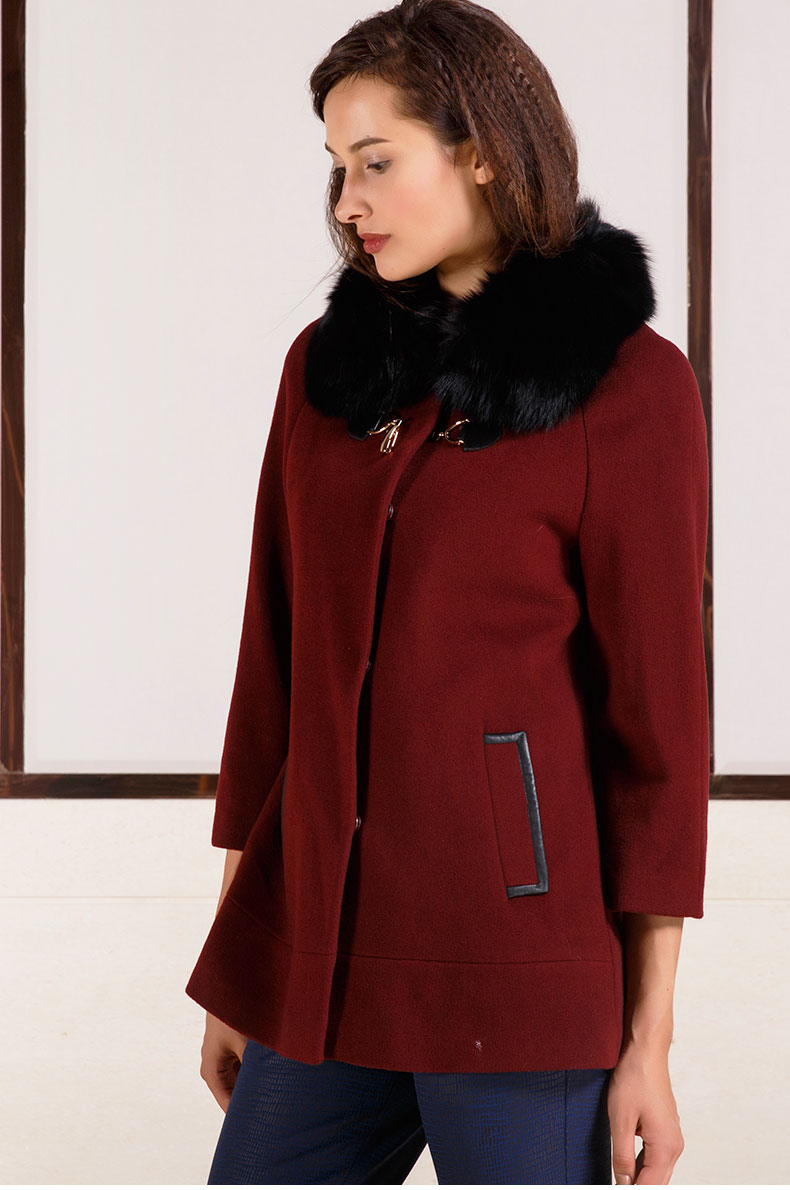 佐尔美秋冬女装毛领毛呢外套女羊毛大衣时尚短款E44ZT48