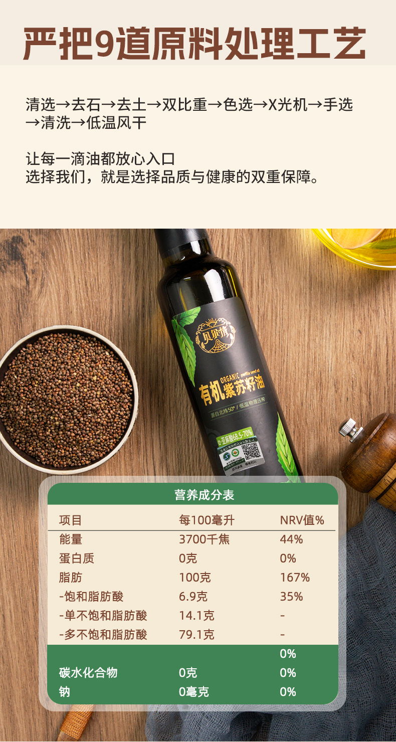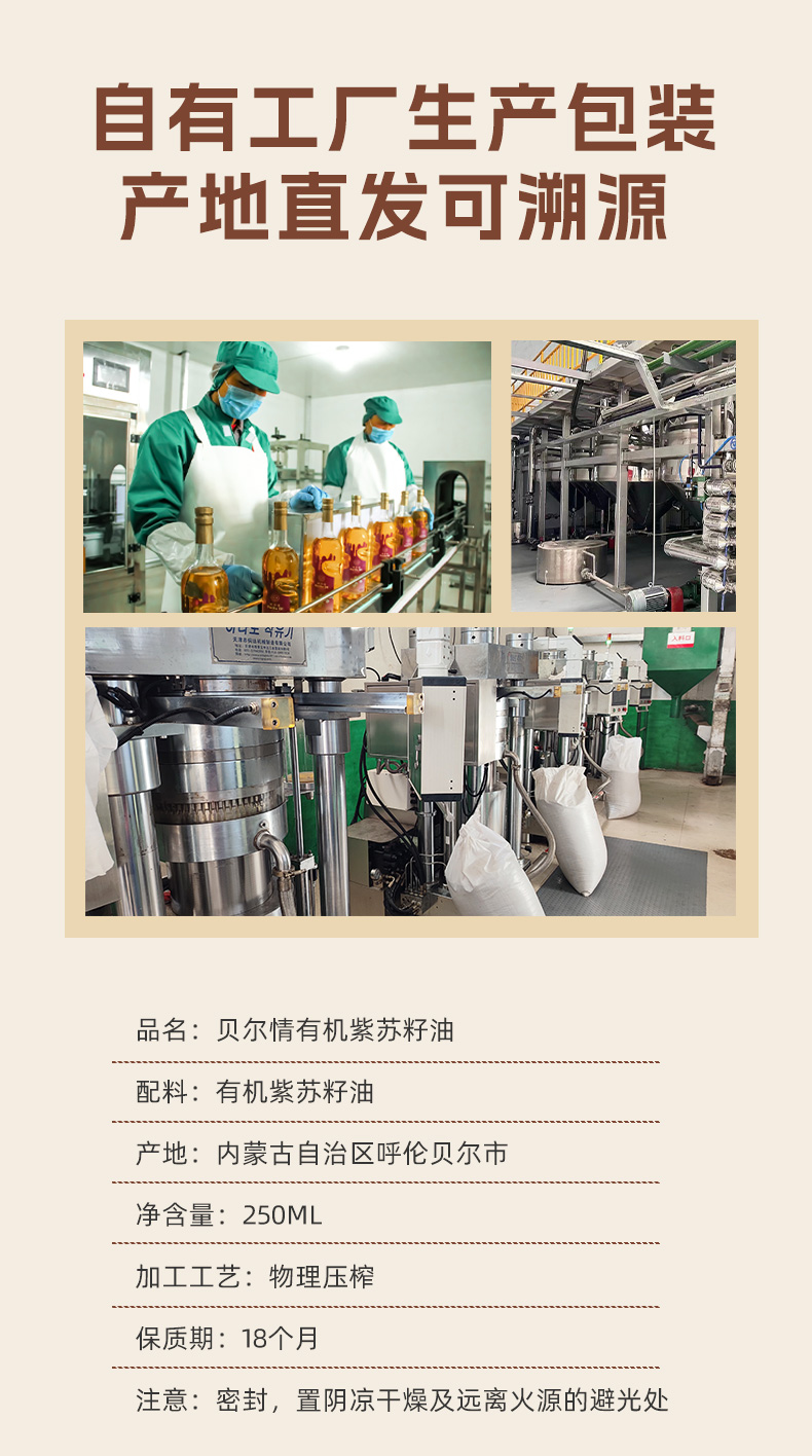 有机紫苏籽油250ml/瓶