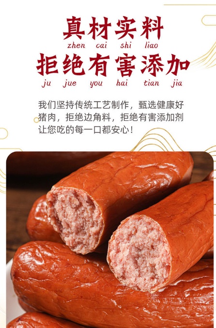【材质】猪肉 ,鸡肉, 淀粉,猪肠衣等
