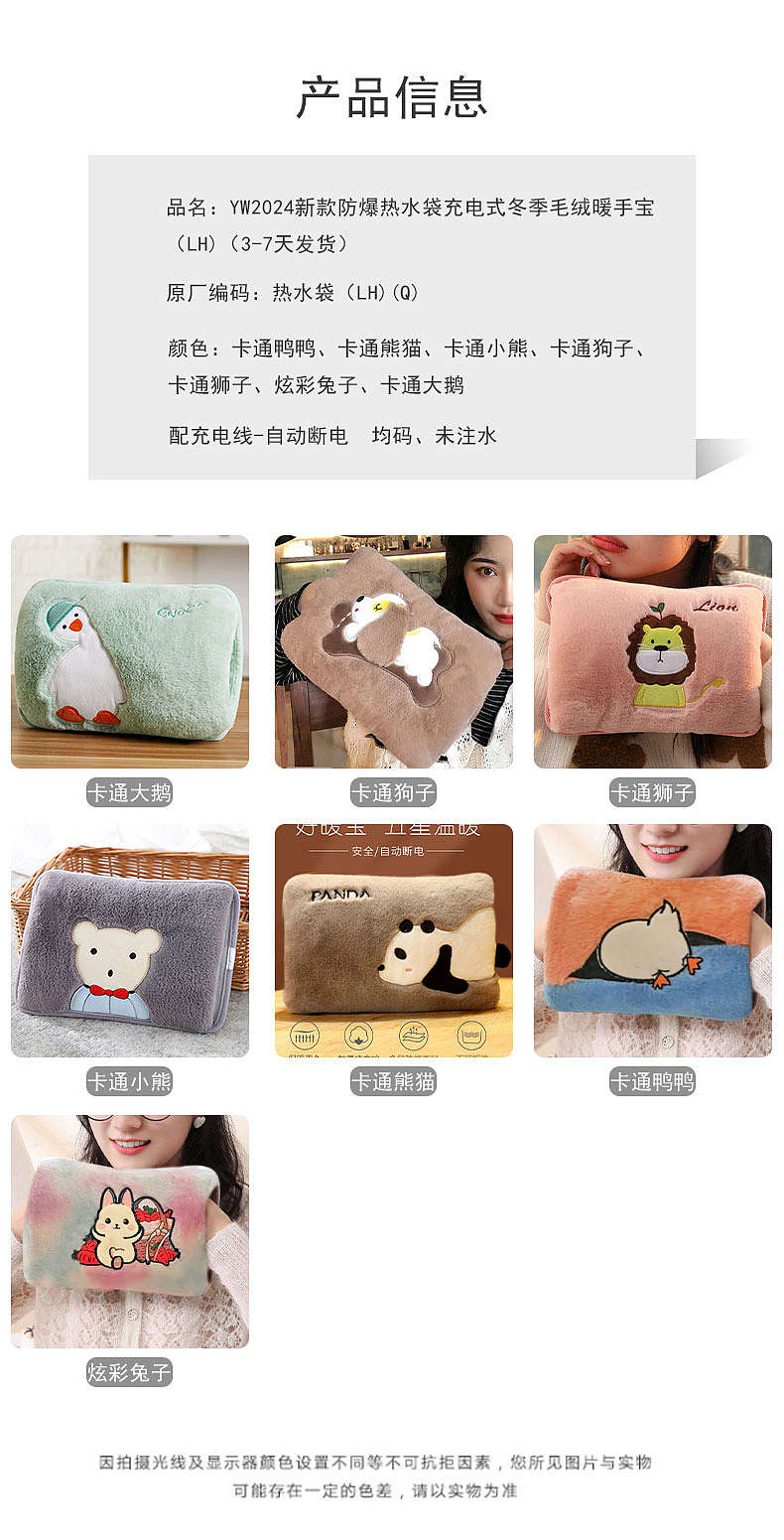 【YW】无忧购35元2件未注水新款防爆热水袋充电式冬季毛绒暖手宝需要充电18分钟左右~(截单后7天发货)