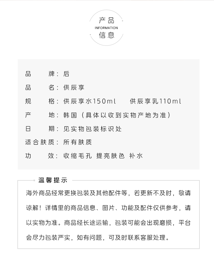 后 WHOO 拱辰享平衡水乳单品水150ML+乳液110ML 组合(CDF)