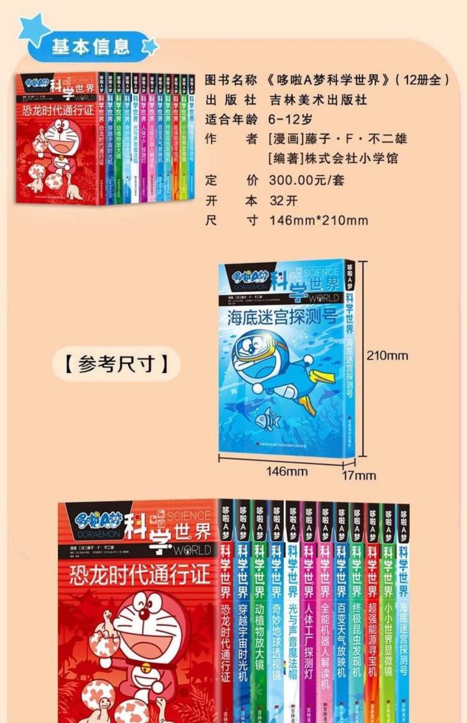 哆啦A梦科学世界全12册日本漫画机器猫儿童科普百科十万个为什么显微镜儿童科学哆啦a梦课外阅读小故事畅销书籍书
