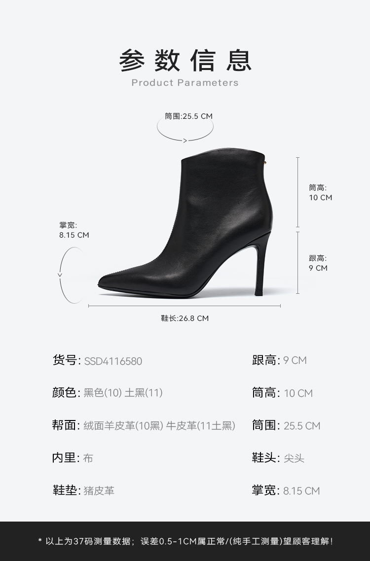 星期六高贵气质尖头细跟短靴SSD4116580
