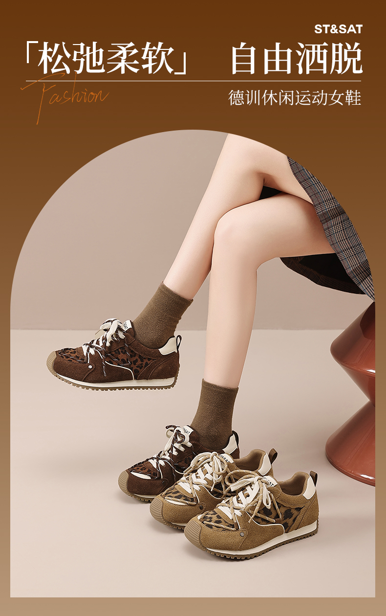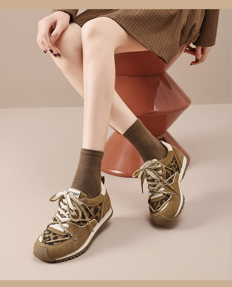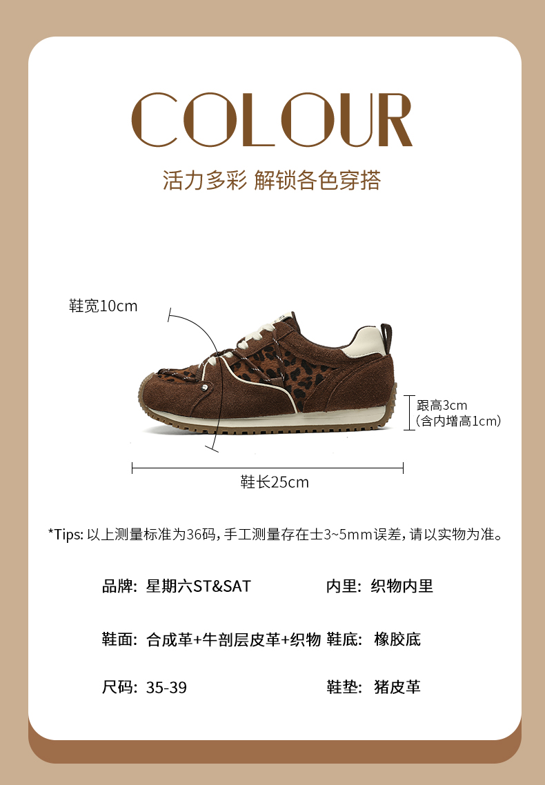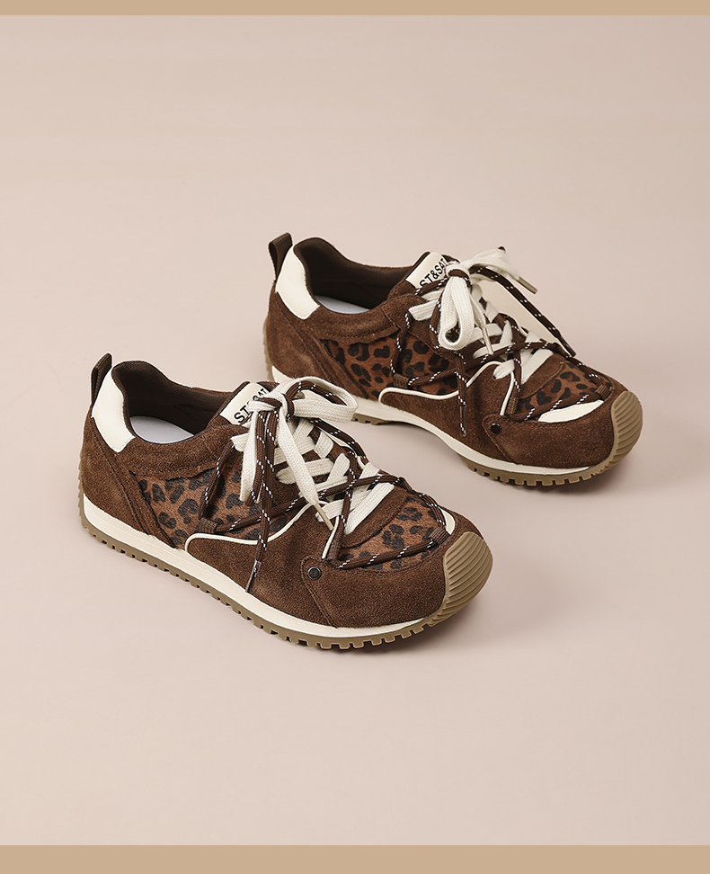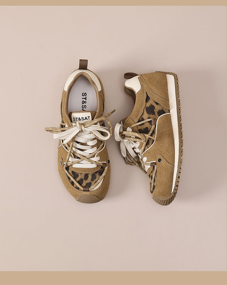 星期六时髦豹纹拼接厚底阿甘鞋SSD3112T3M