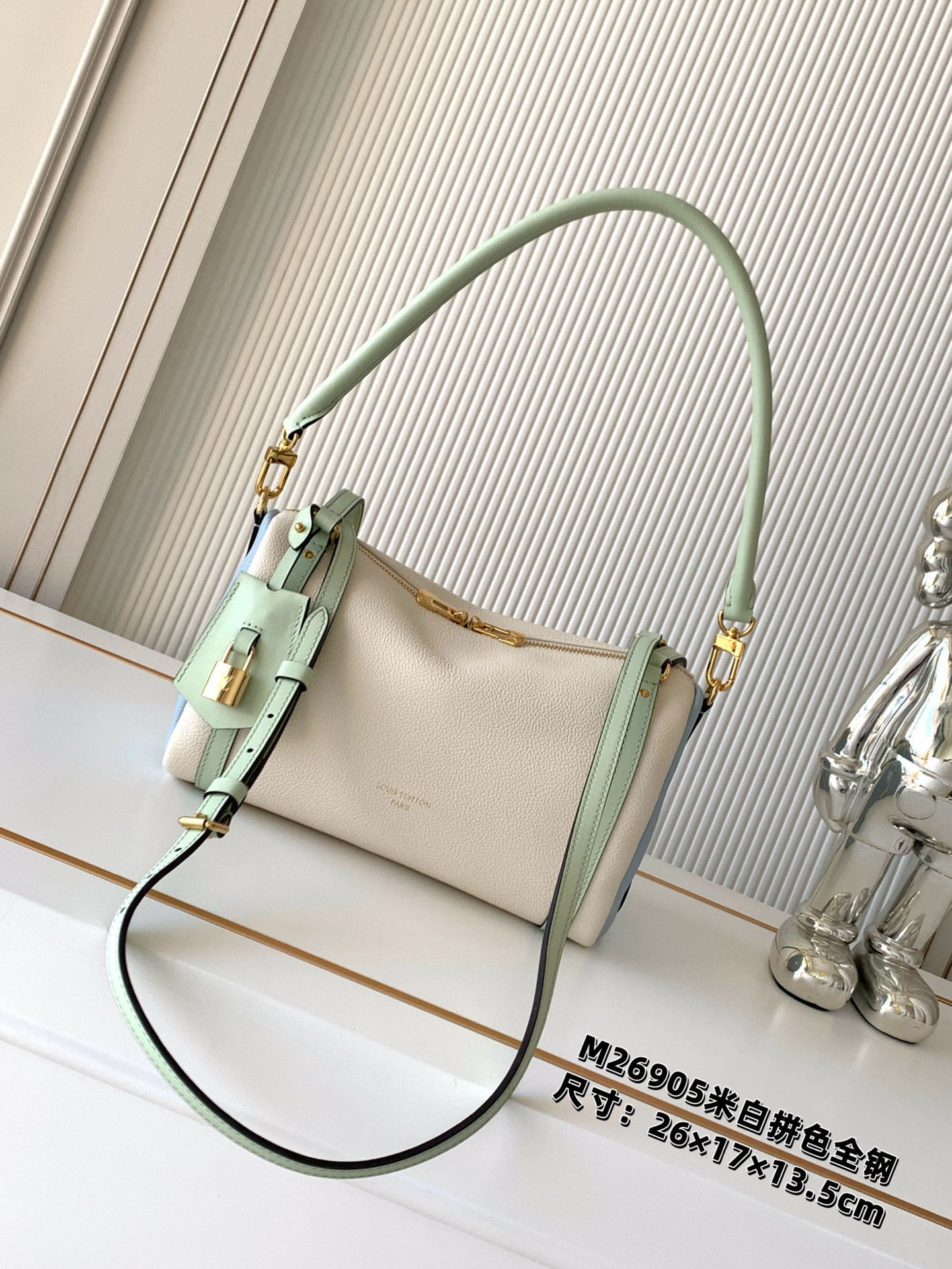 秋冬特惠💰1490 渠道级LV【全钢五金 MB163c01变码芯片】te级LV 全套包装 M26905米白拼色 本款 Express 小号手袋堪称都市臻品,其设计灵感源自品牌经典Keepall 旅行袋。选用细腻牛皮革精心打造,饰以Monogram 经典花纹镶边与内衬,搭配金属件及标志性钥匙包与挂锁,尽显路易威登旅行传统的精髓。精巧尺寸恰能收纳日常随身物件,多种背法随心切换,契合现代都市生活。