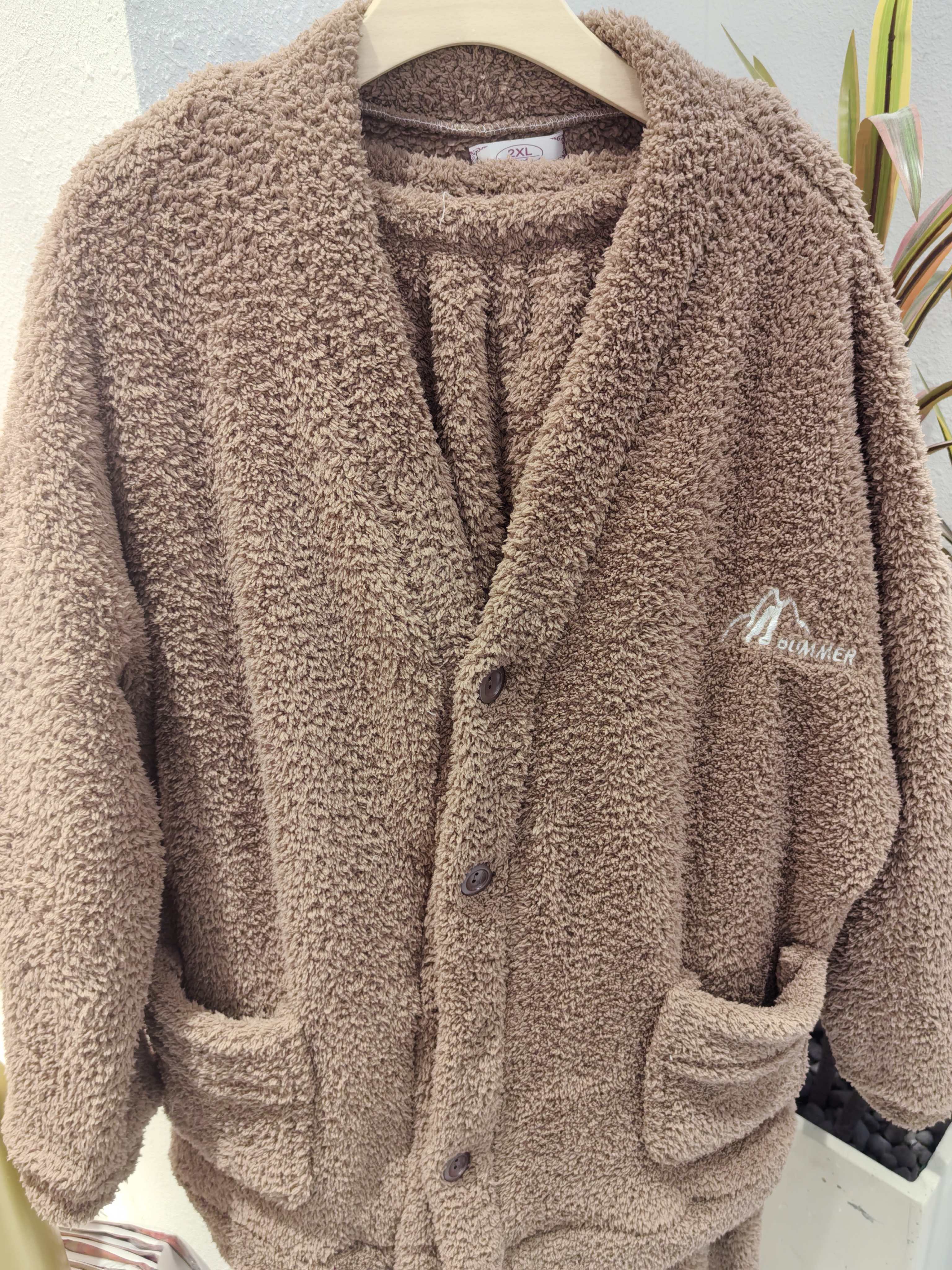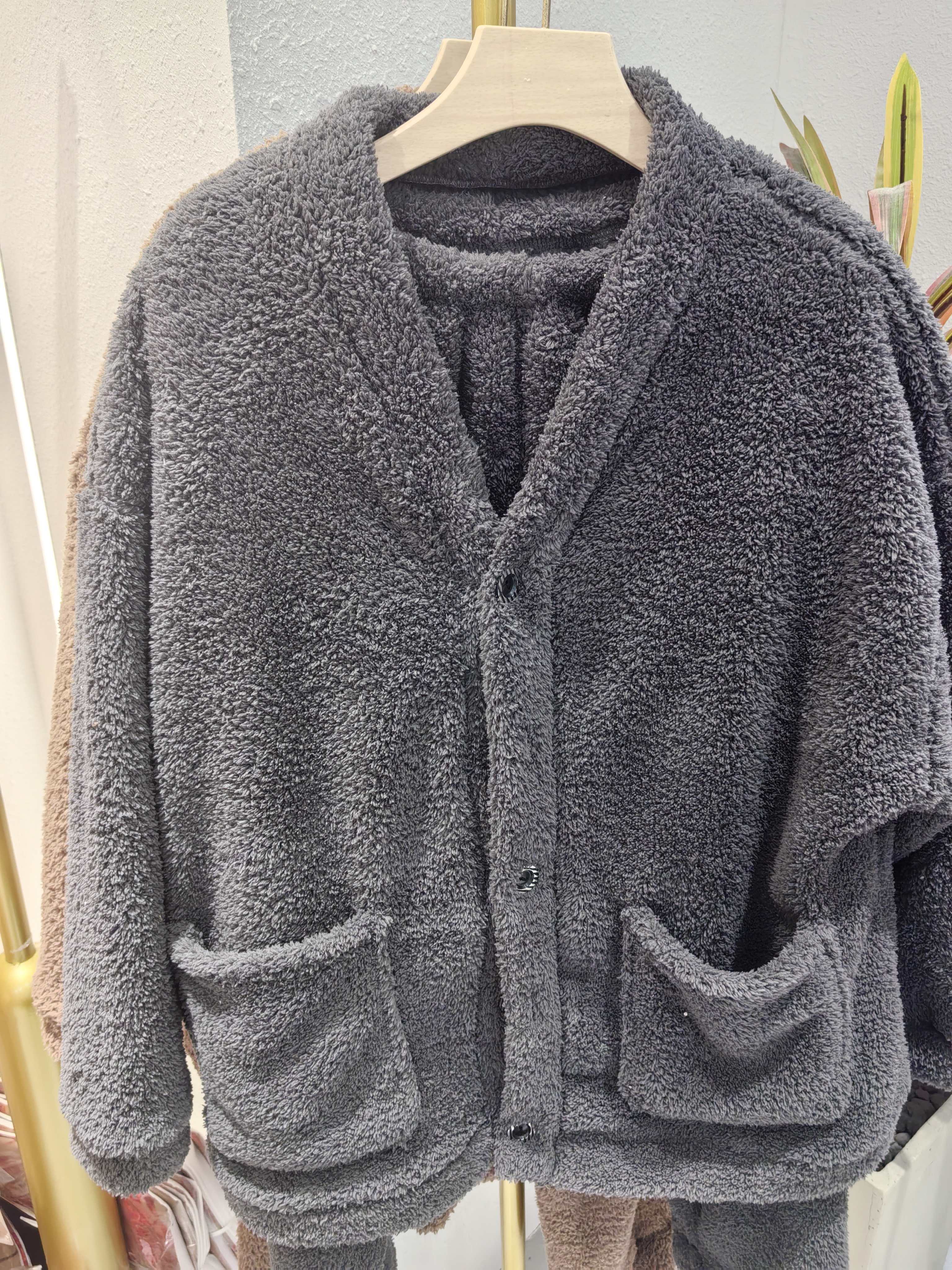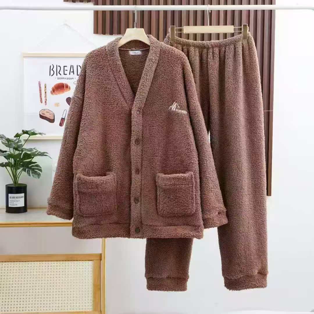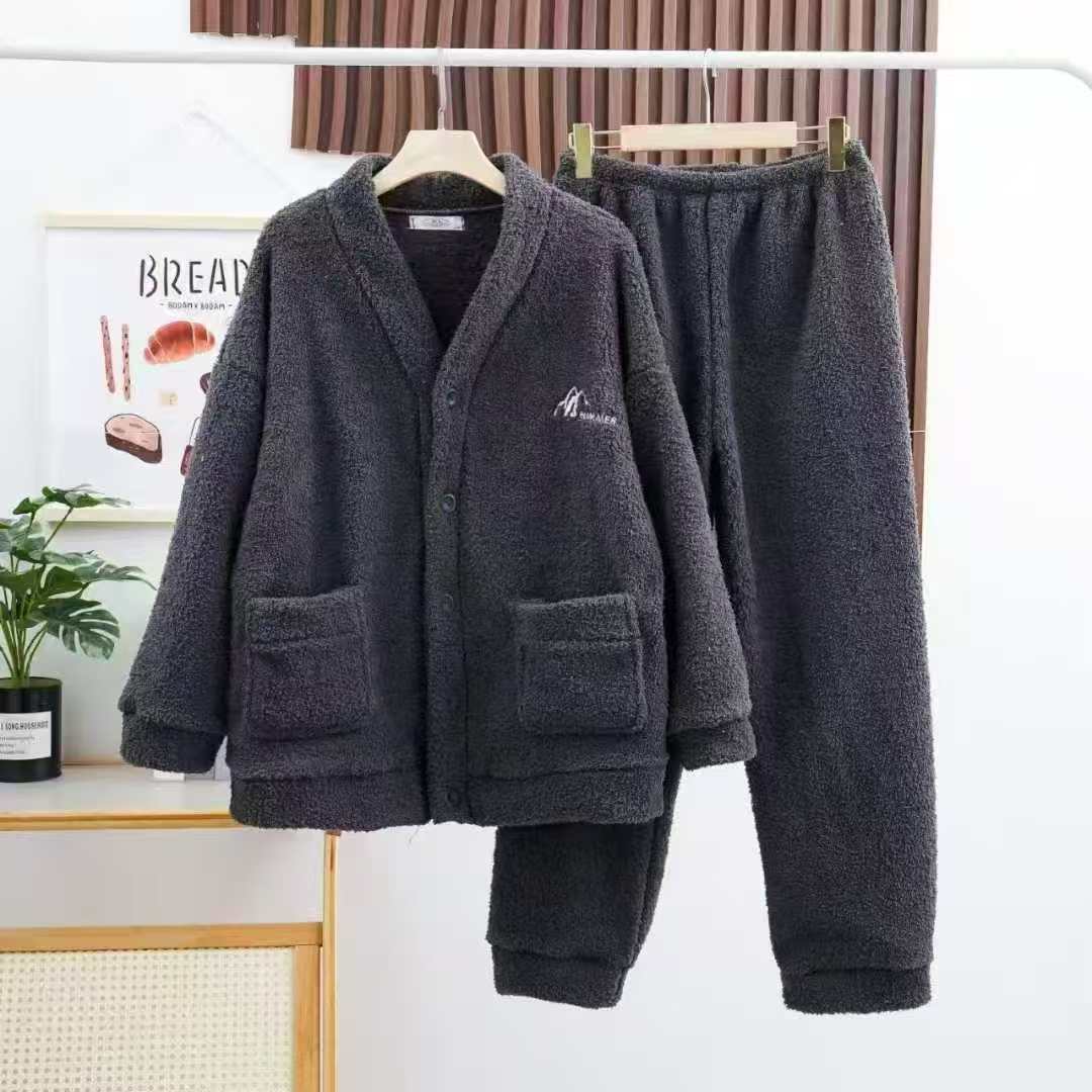 【YW】无忧购“清仓特价”男士半边绒纯色简约家居服保暖睡衣套装(截单后3-5天发货)