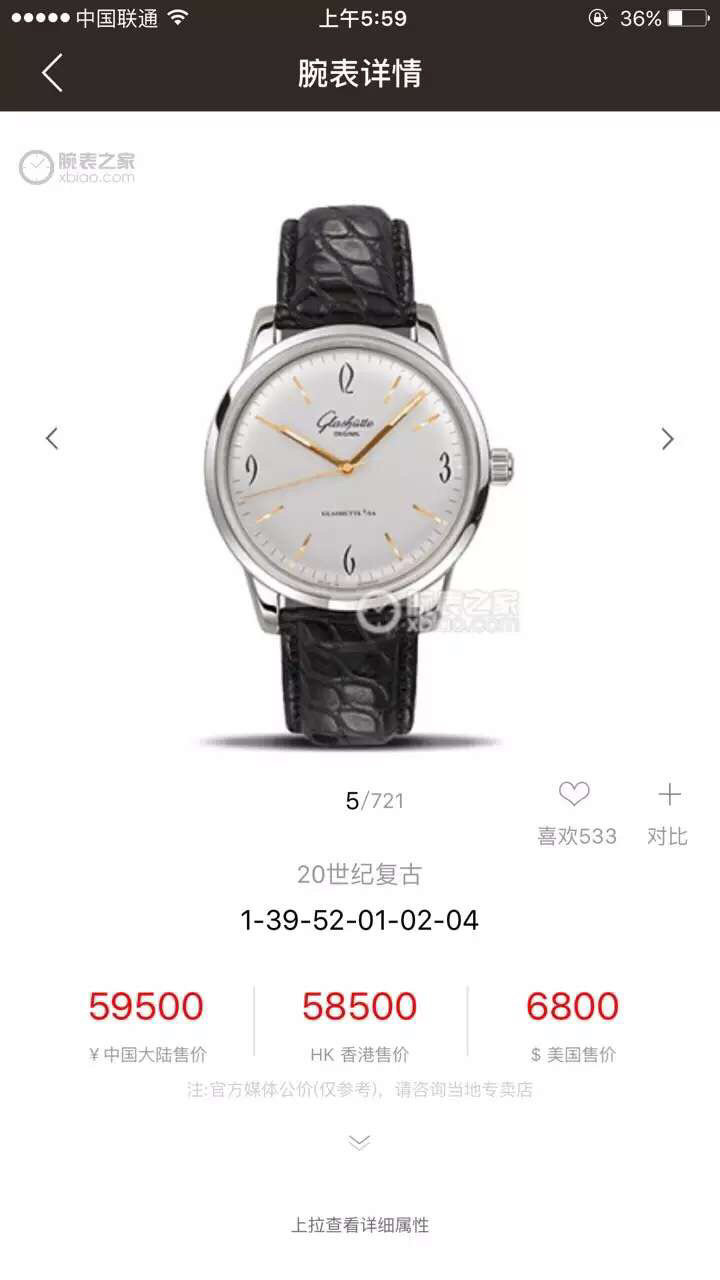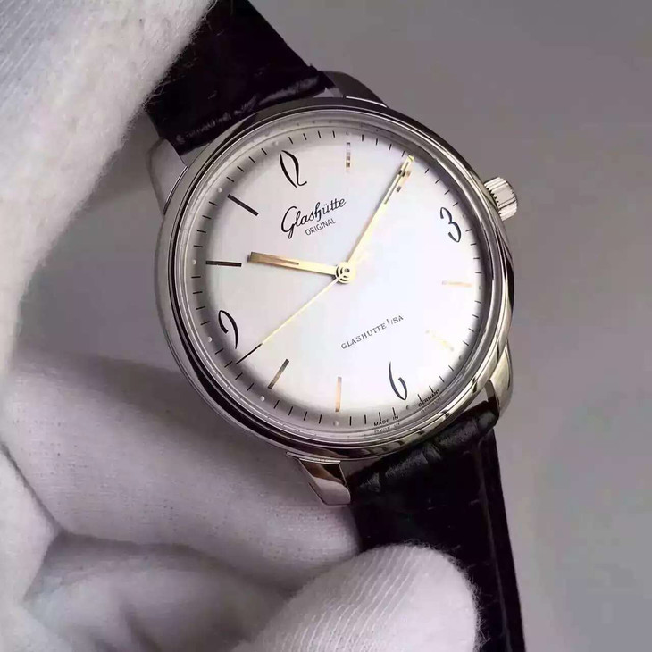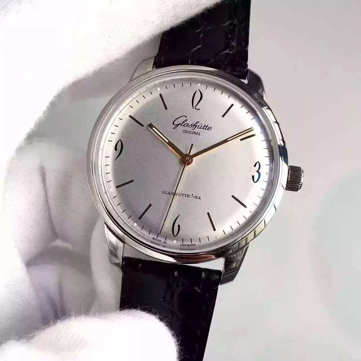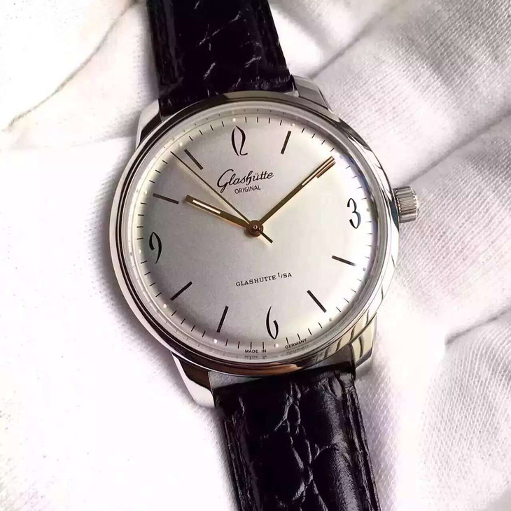 FK格拉苏蒂原创。型号:1-39-52-01-02-04,系列:20世纪复古,男士,透底。全自动机械机芯,精钢外壳,39毫米,9.4毫米,镀银表盘。