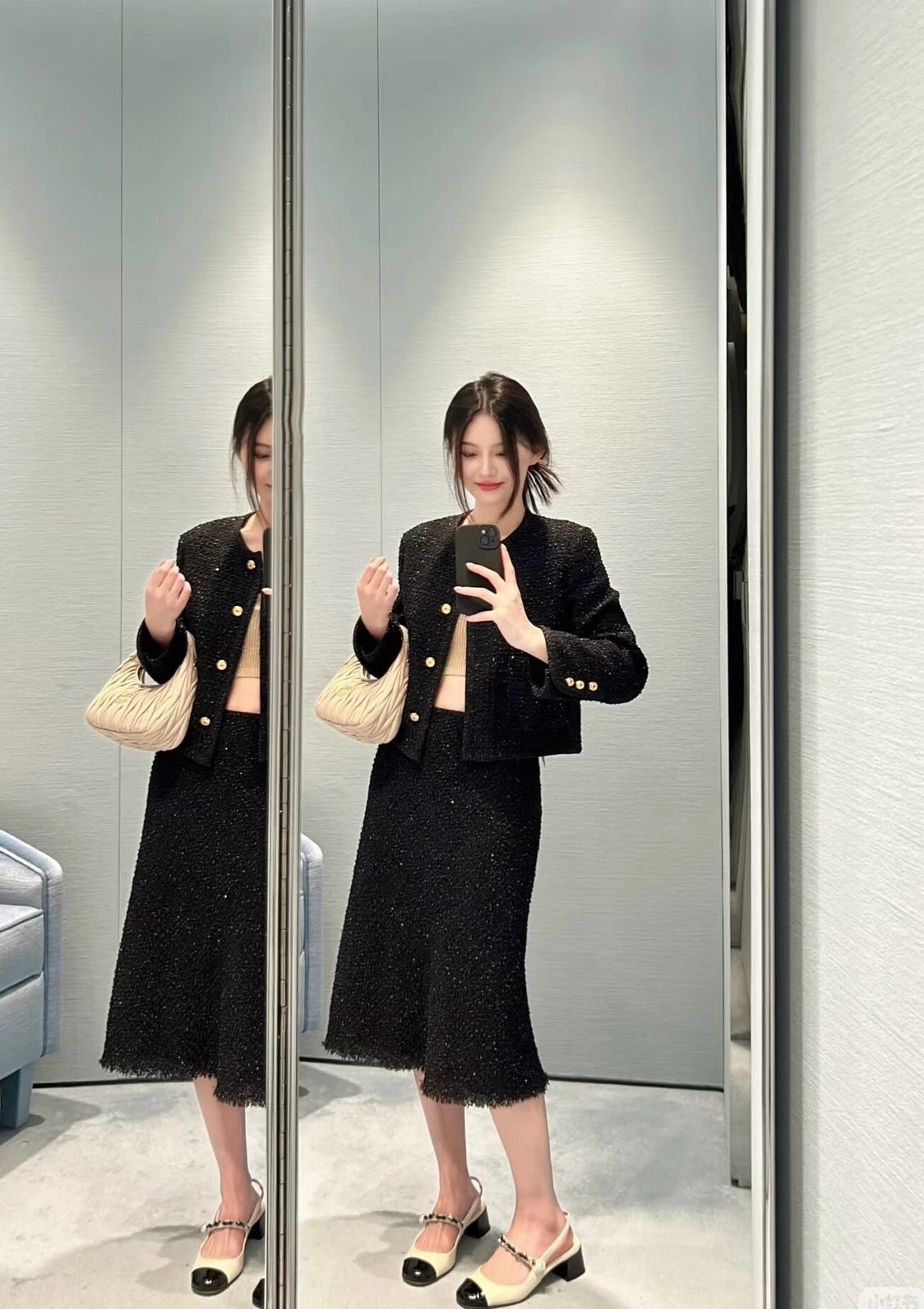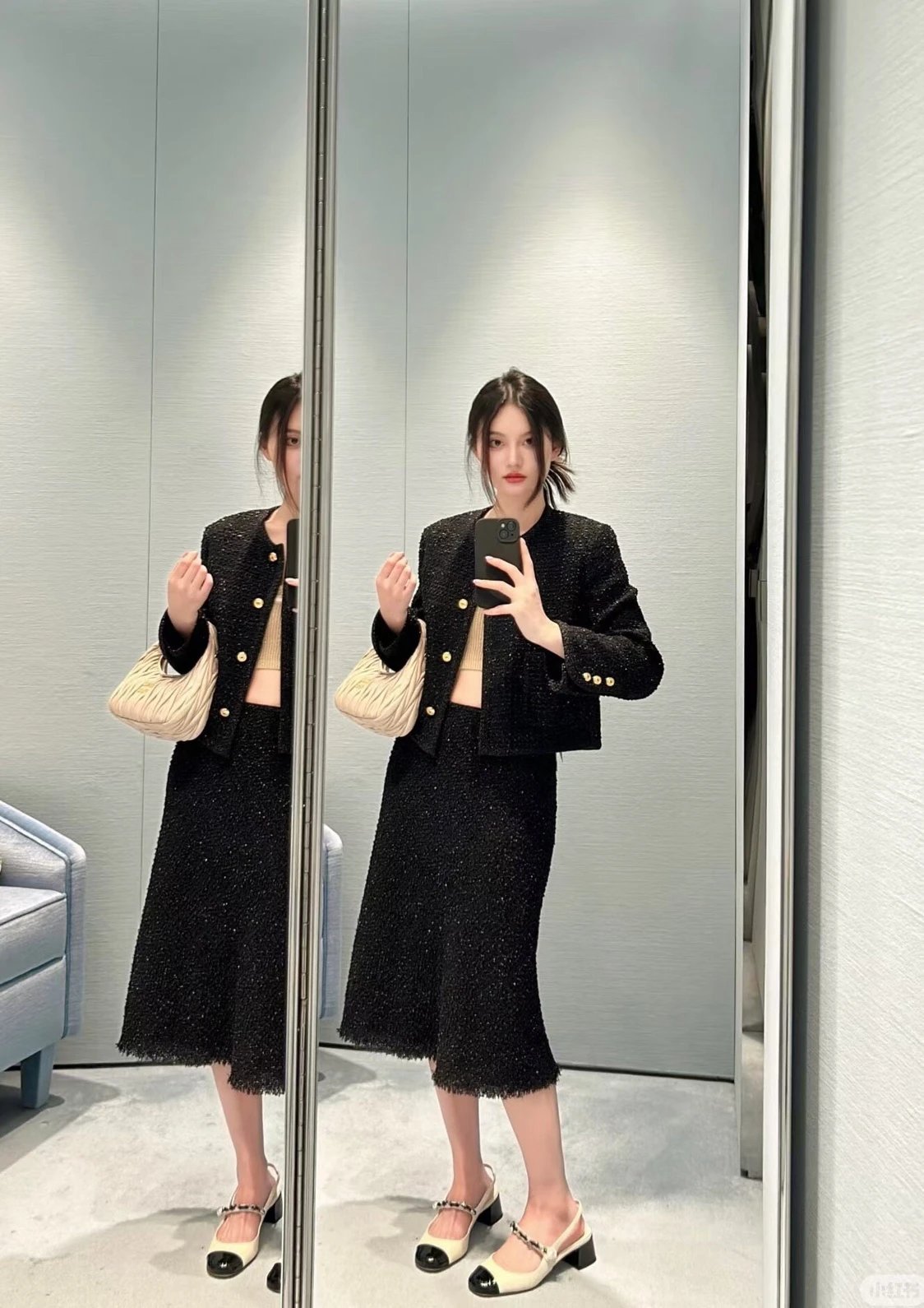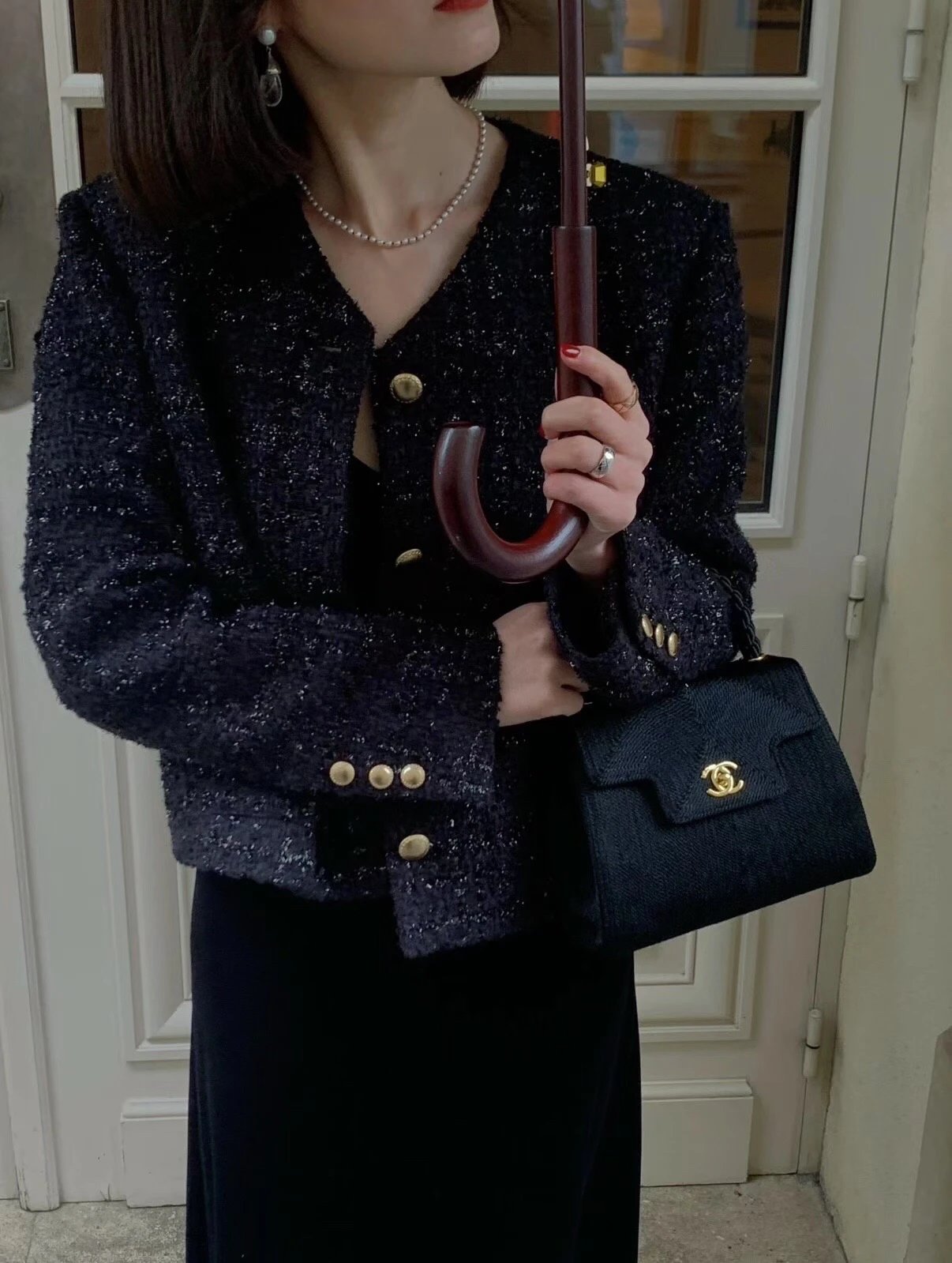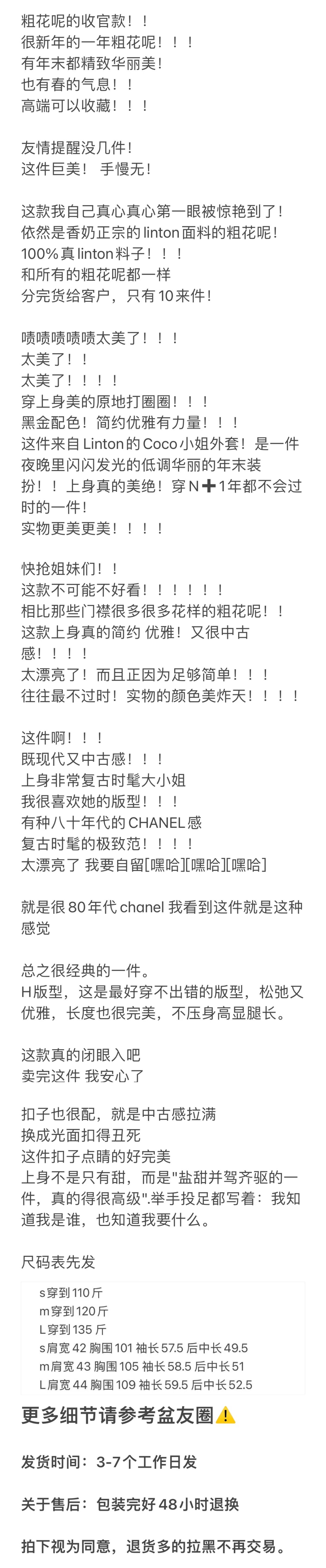 重磅渠道 linton金扣粗花呢 黑金短款粗花呢 羊毛棉真丝