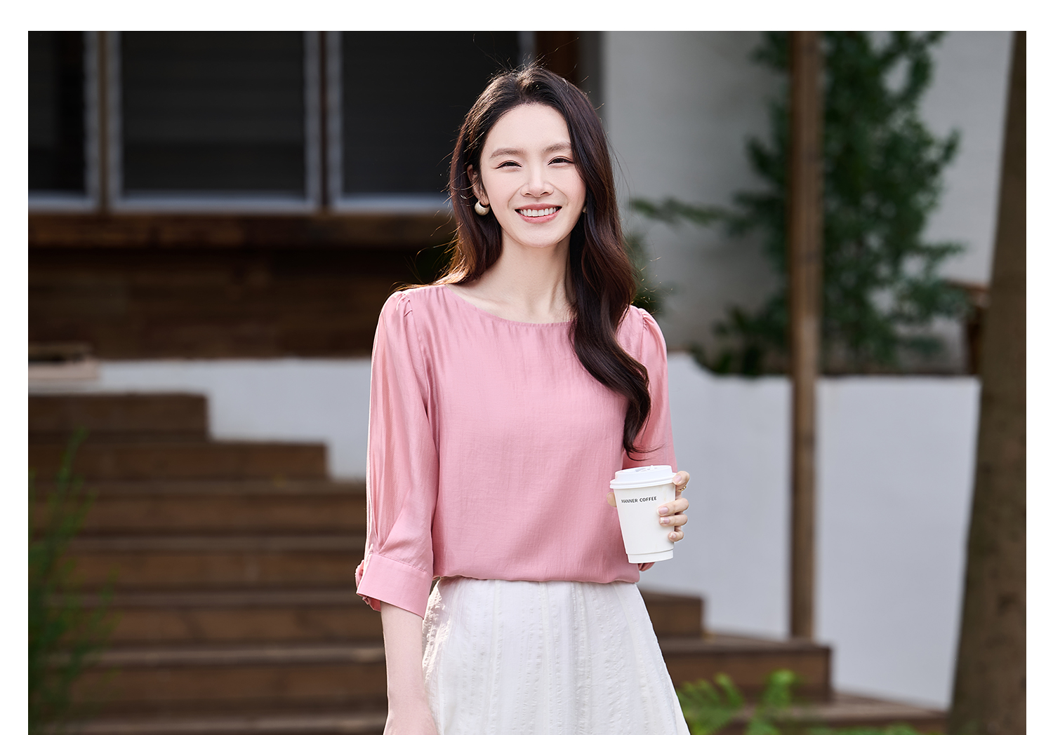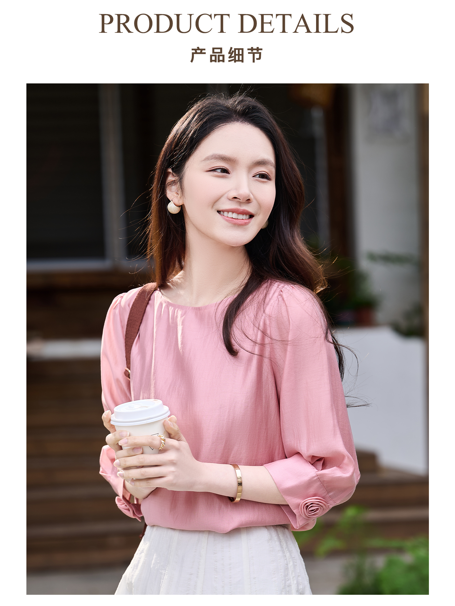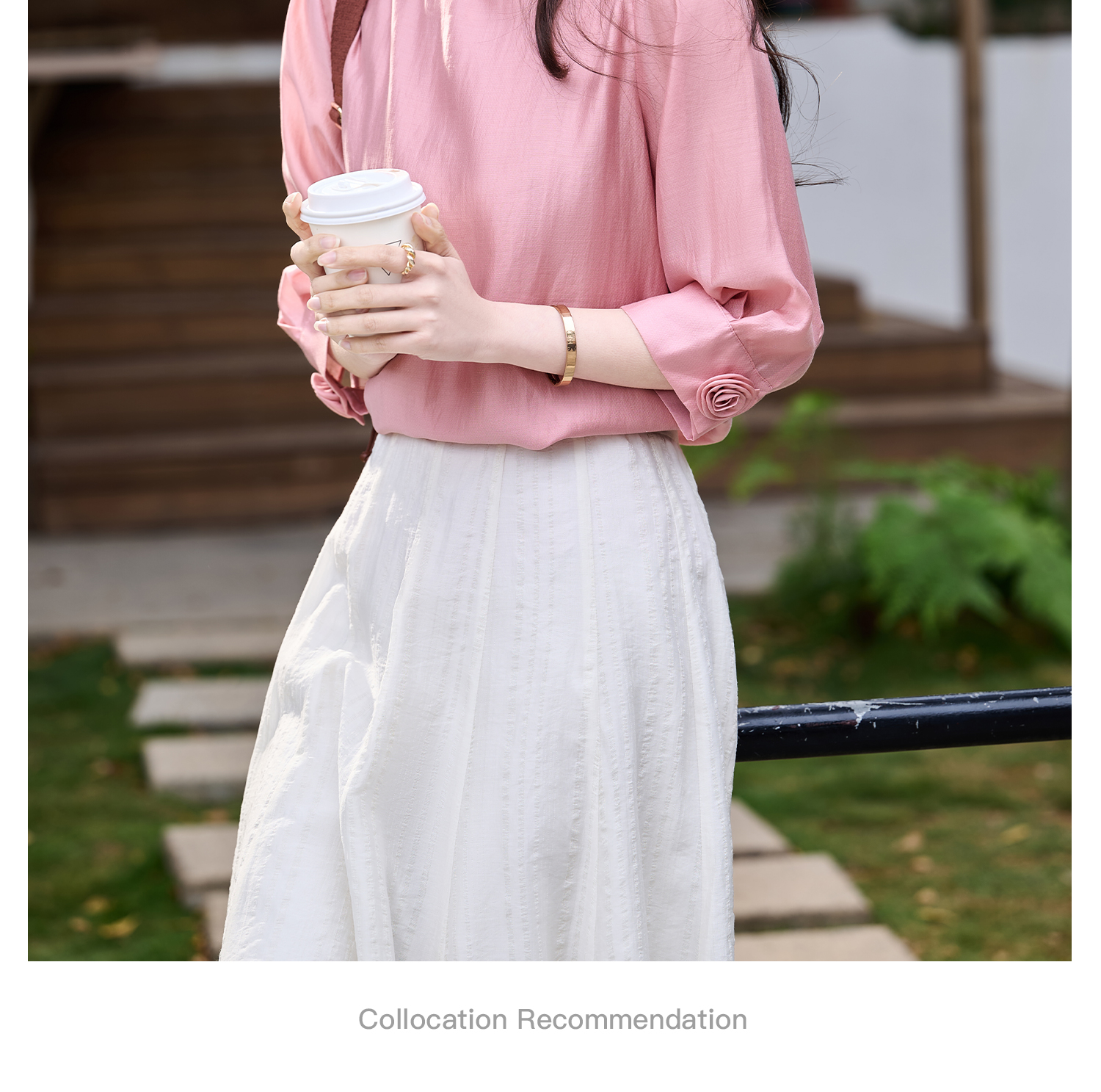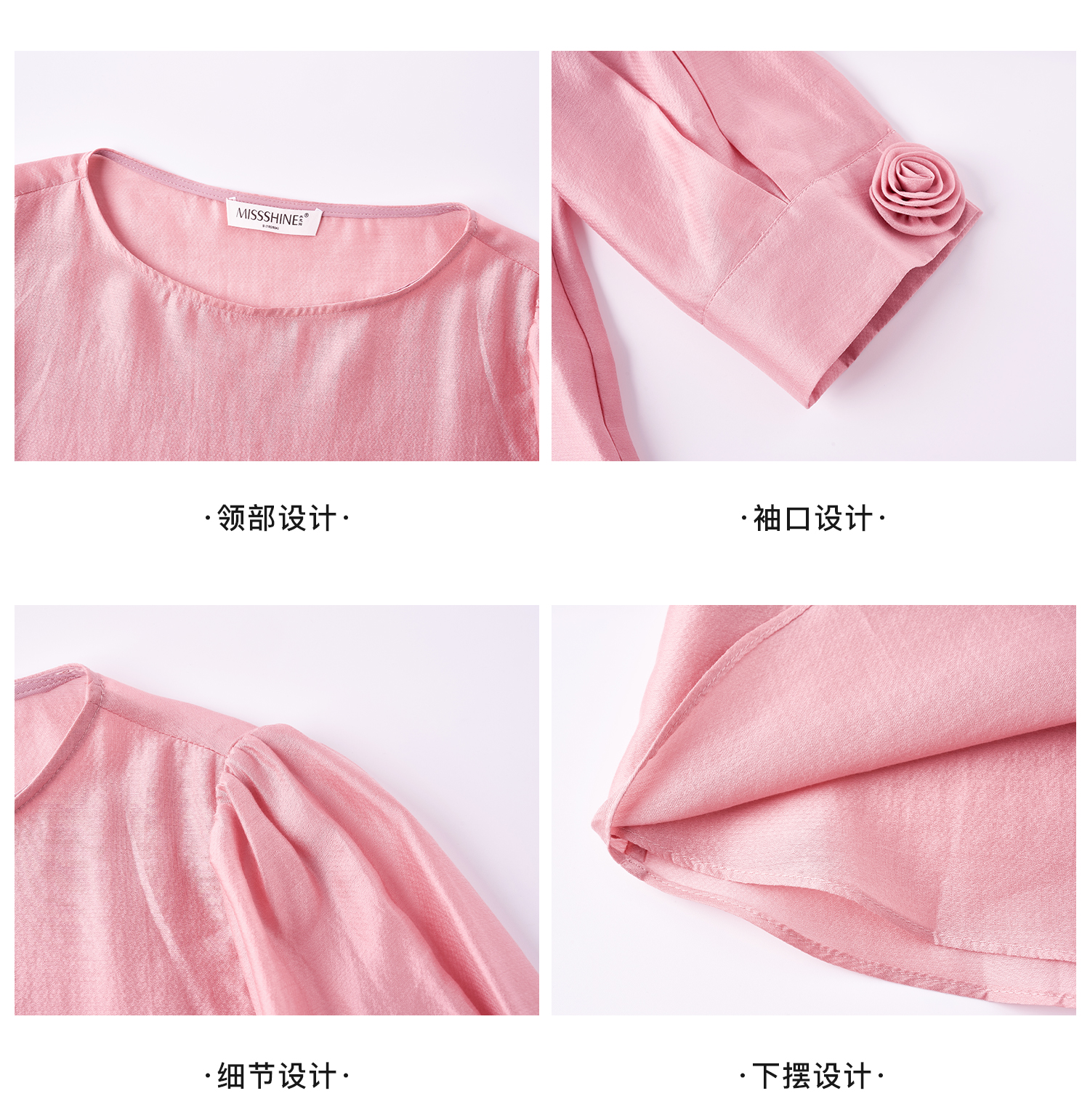 米思阳2026春新款气质优雅高级感天丝衬衫薄款亲肤舒适纯色上衣1015