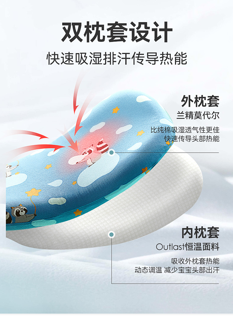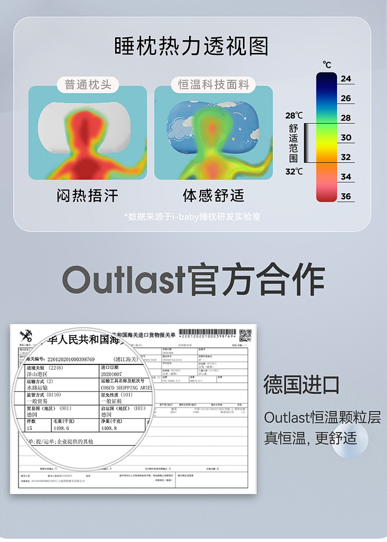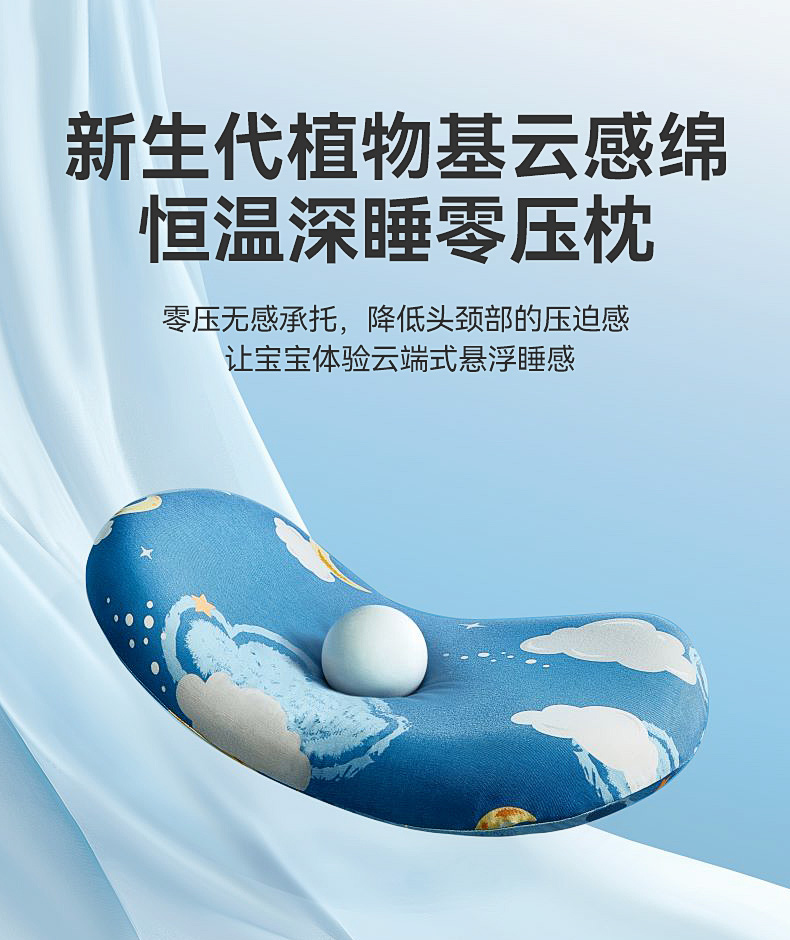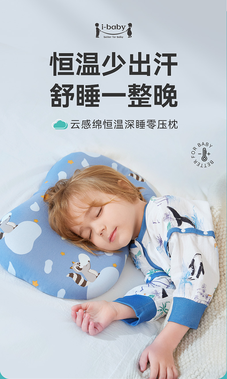 ibaby×outlast太空科技恒温新生代植物基云感绵深睡零压枕1到6岁新生婴儿童定型枕纠正头型
