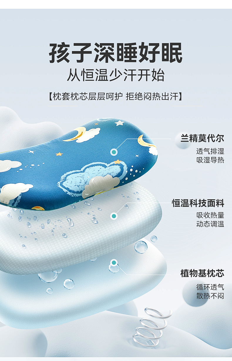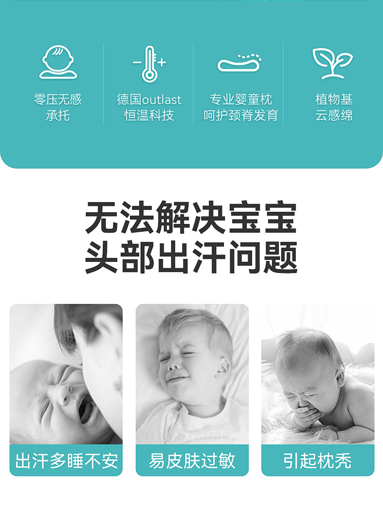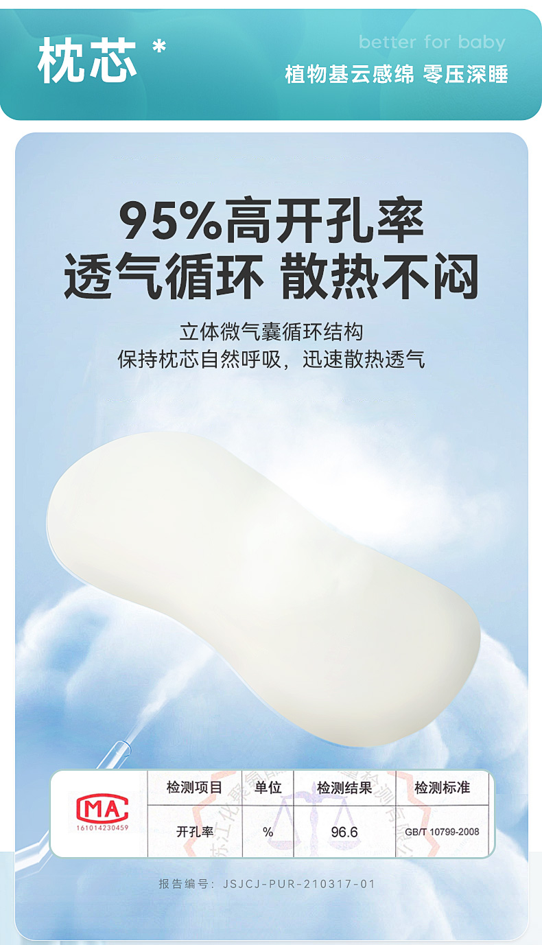 ibaby×outlast太空科技恒温新生代植物基云感绵深睡零压枕1到6岁新生婴儿童定型枕纠正头型
