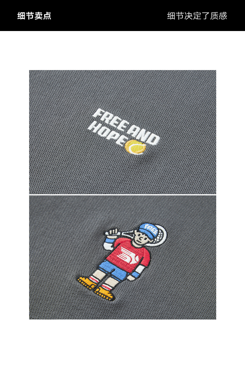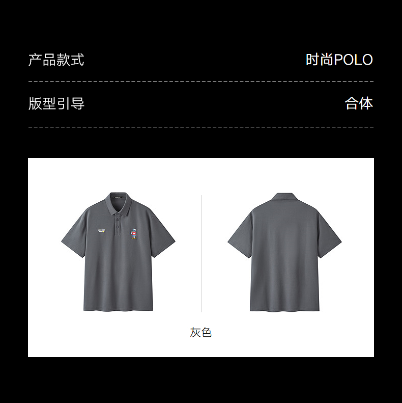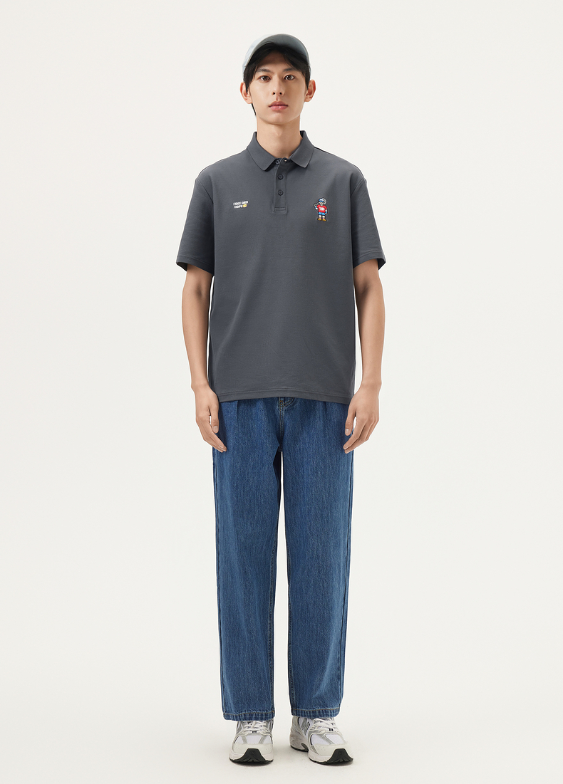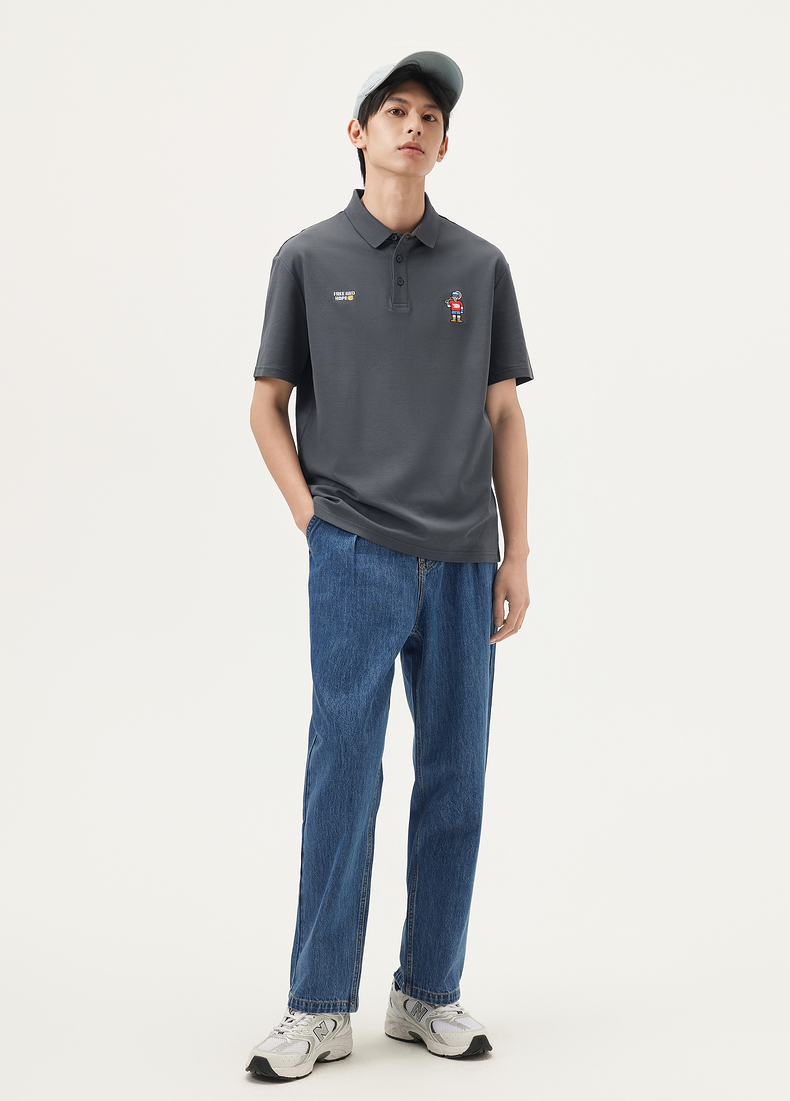 gxg.jeans男装 灰色趣味绣花商务翻领短袖polo衫男 25年夏热卖