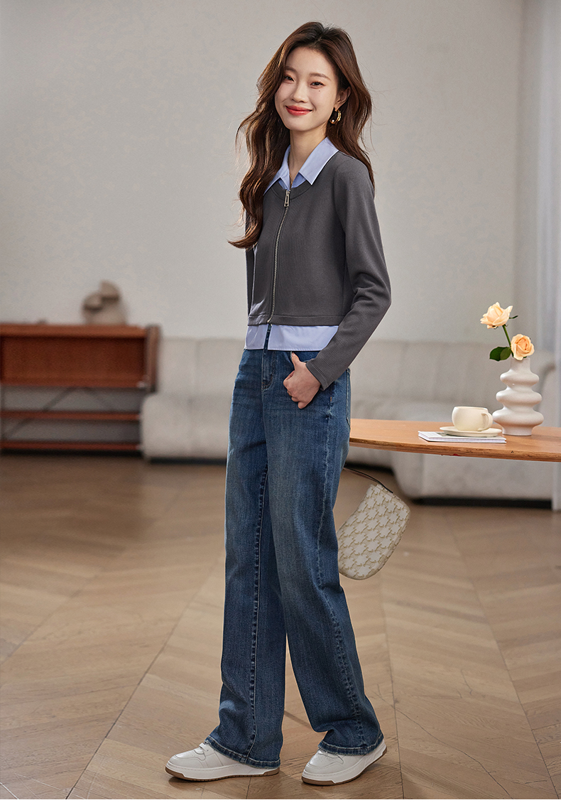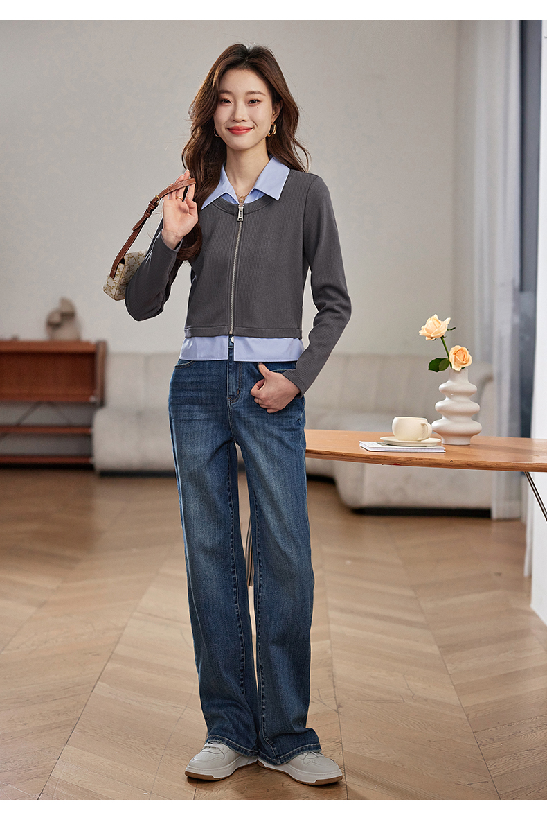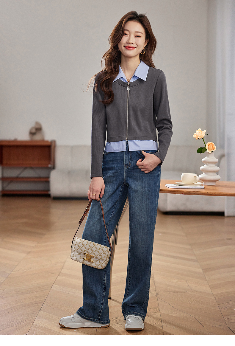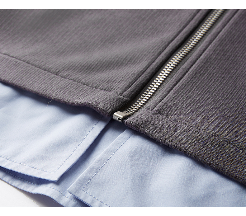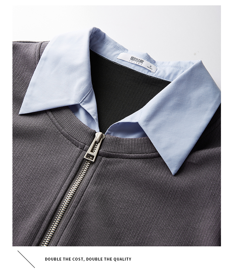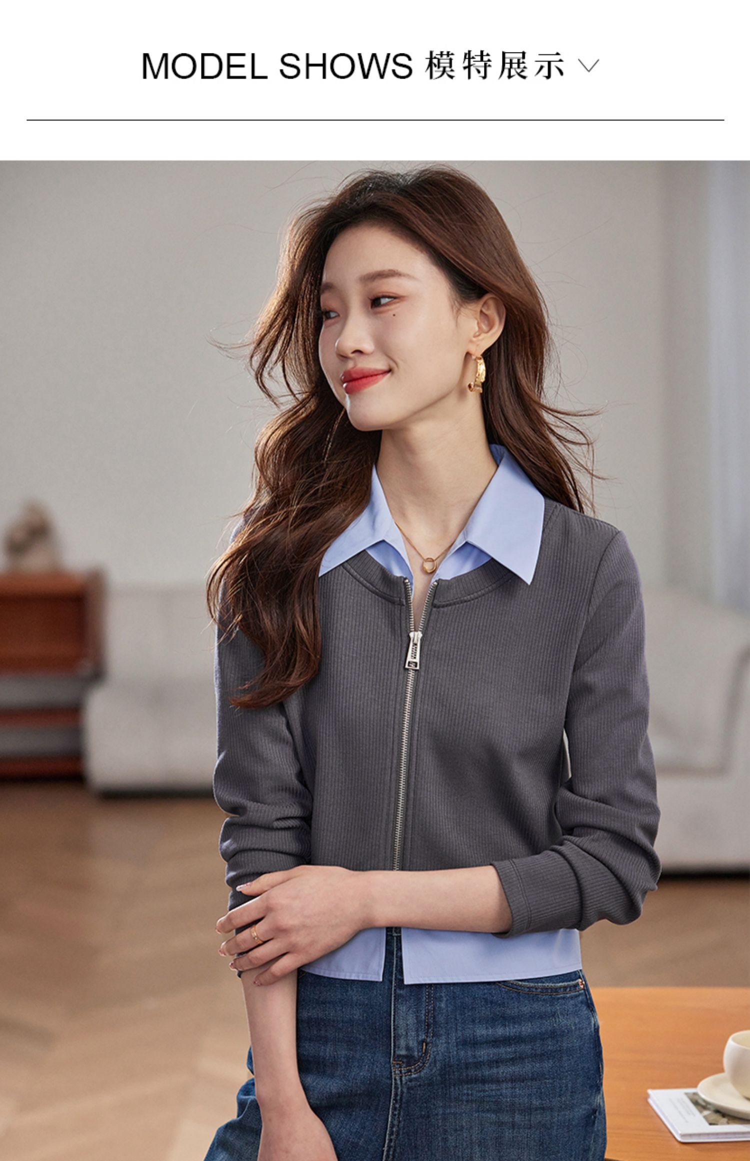 【年终特卖】熙世界设计感假两件polo领衬衫女2025秋款拉链针织拼接别致衬衣