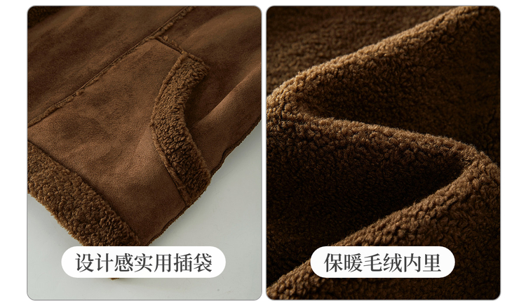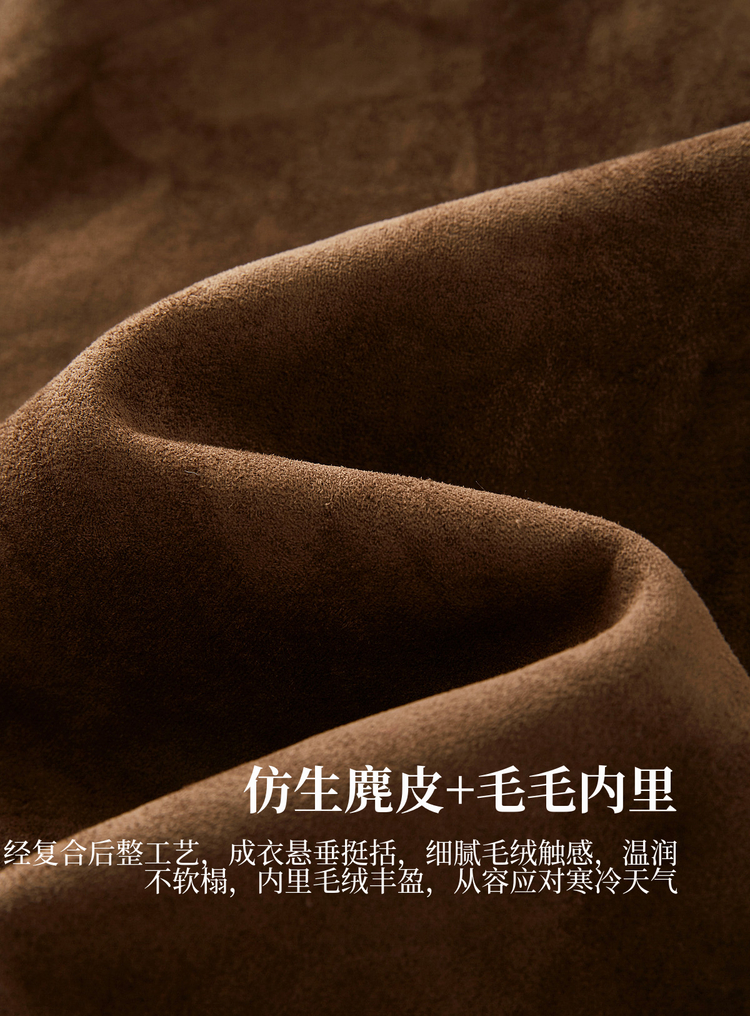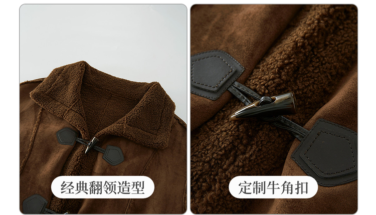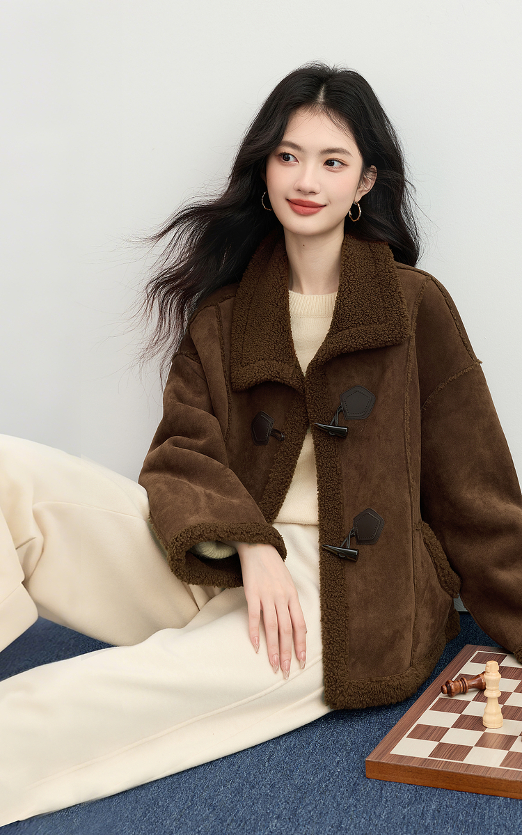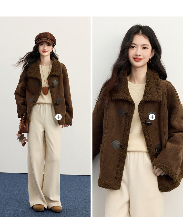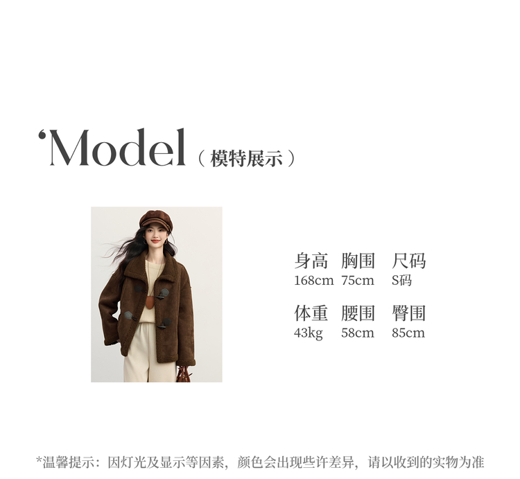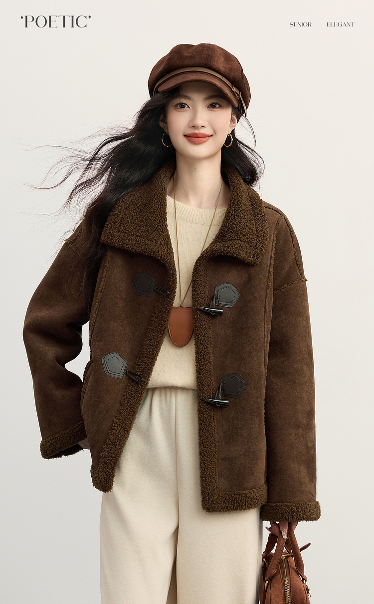 【11/26新品】熙世界仿麂皮绒皮毛一体短外套女2025冬季新款保暖牛角扣毛绒上衣