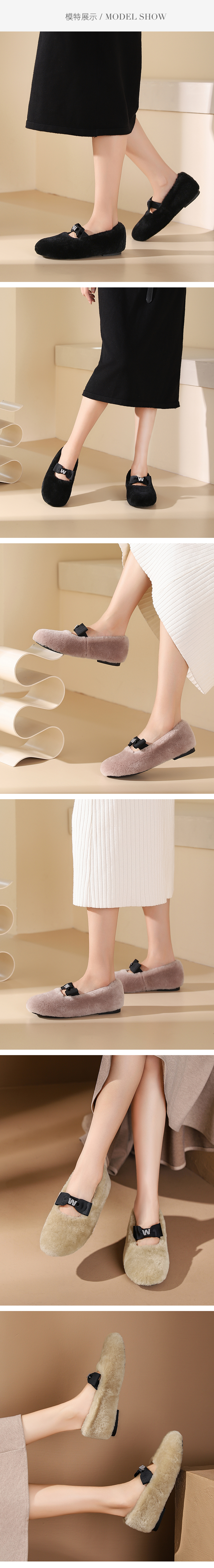 westory2023年秋季新品芭蕾风温柔毛毛鞋一脚蹬玛丽珍鞋S23DM83661