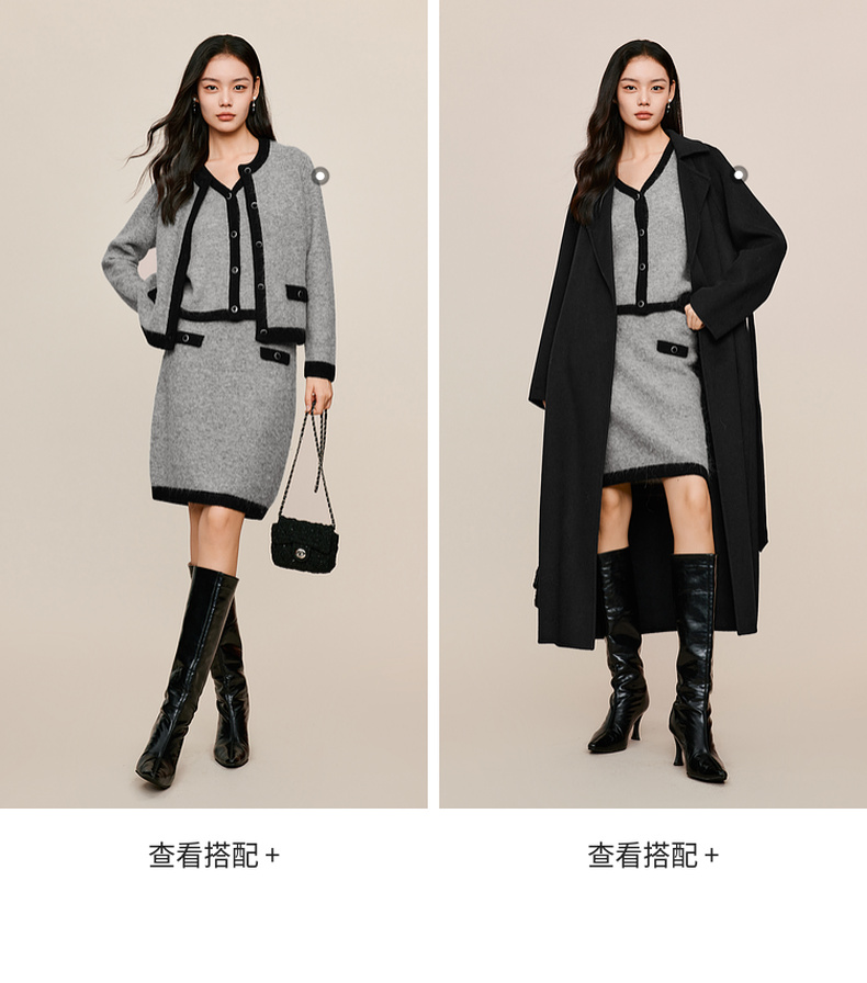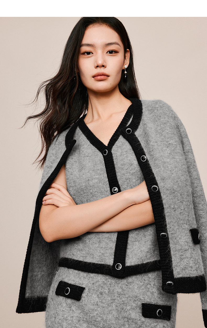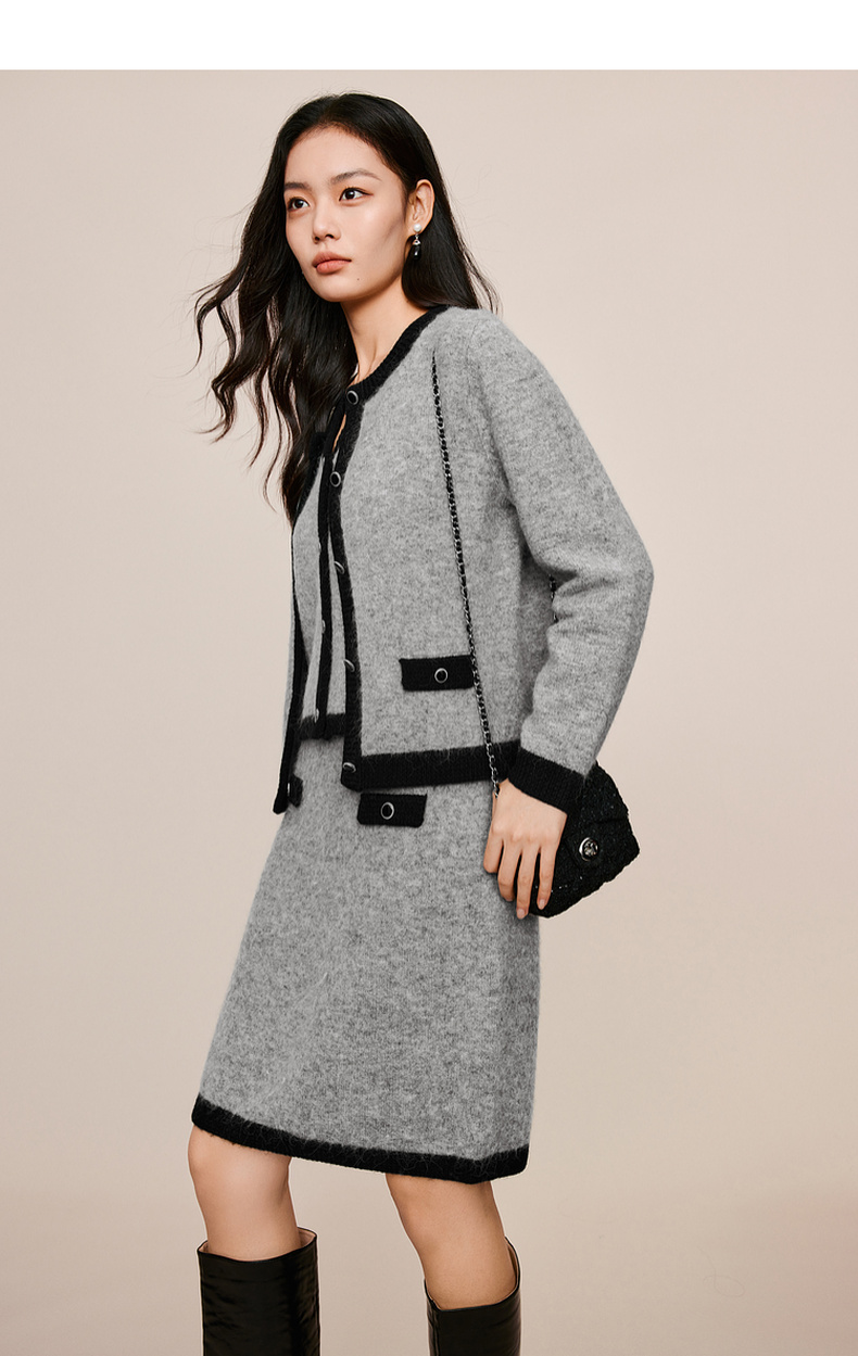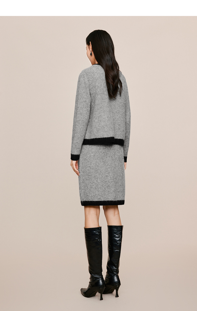 【严选】伊芙丽冬撞色小香风针织半裙1EB941641