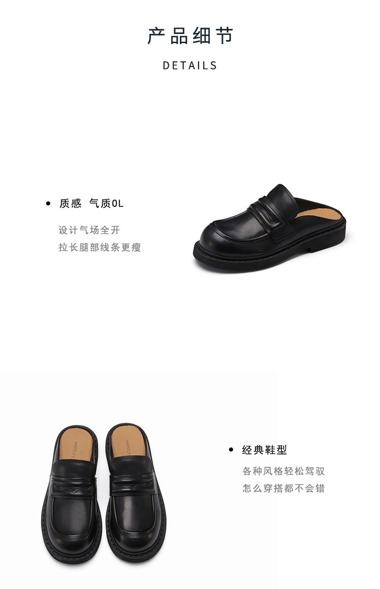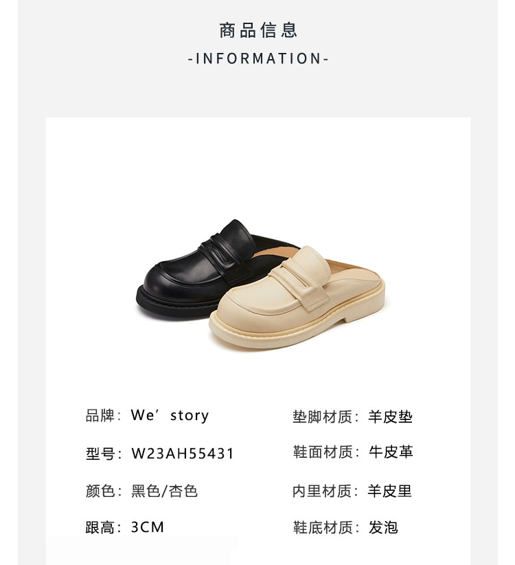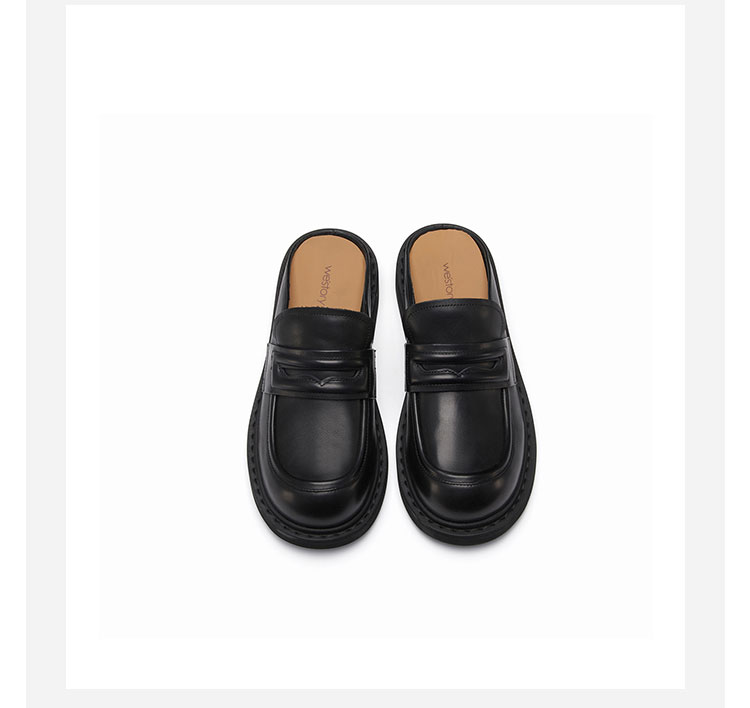 westory秋季新品英伦包头半拖懒人小众设计师真皮平底鞋W23CM73671