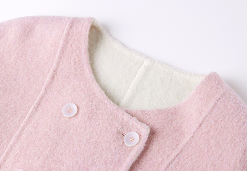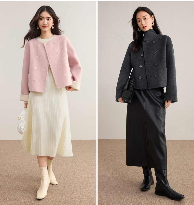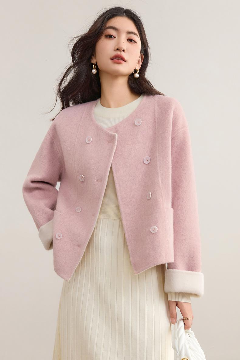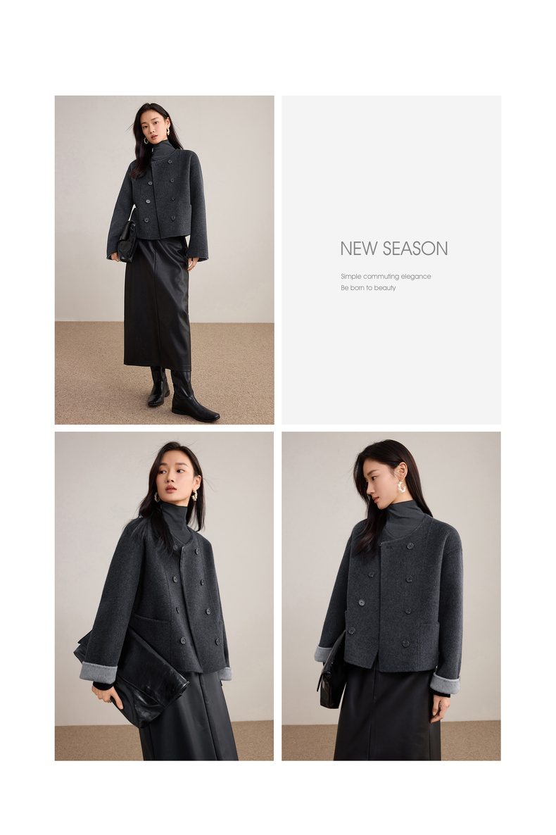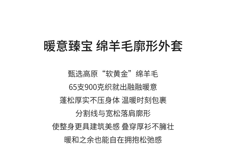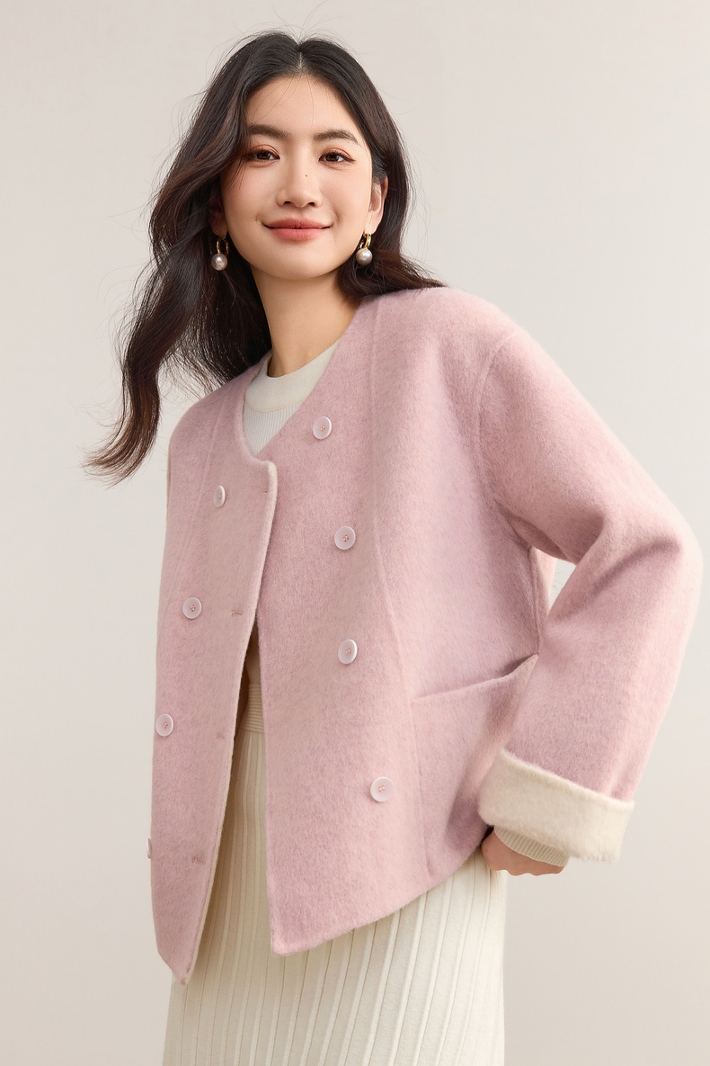 【内购】【两穿袖】圆领双排扣撞色设计宽松落肩袖保暖厚绵羊毛双面呢外套-W54OG2436