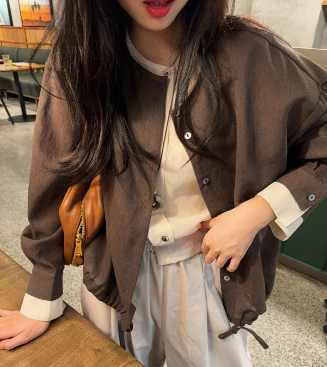 老米优品🎈3-7天发!巨显瘦~《法式假两件衬衫》 60支 100%匹马棉 美拉德色系 衣摆抽绳设计 设计感小众上衣