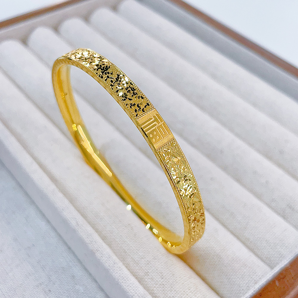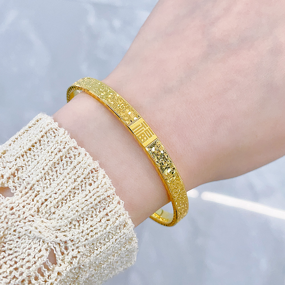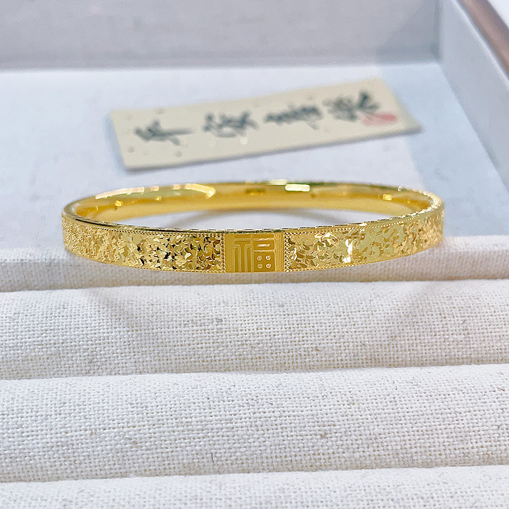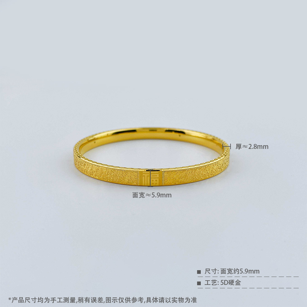【限时克减150元】足金 无氰5D空心固口手镯碎碎冰福气满满福字手镯(面宽约5.7-6.1mm)(AR5DSZ00051)(预售产品下单后不退款不退货不换货不补差价