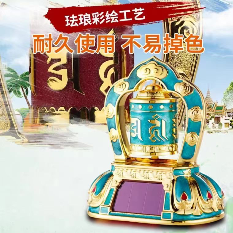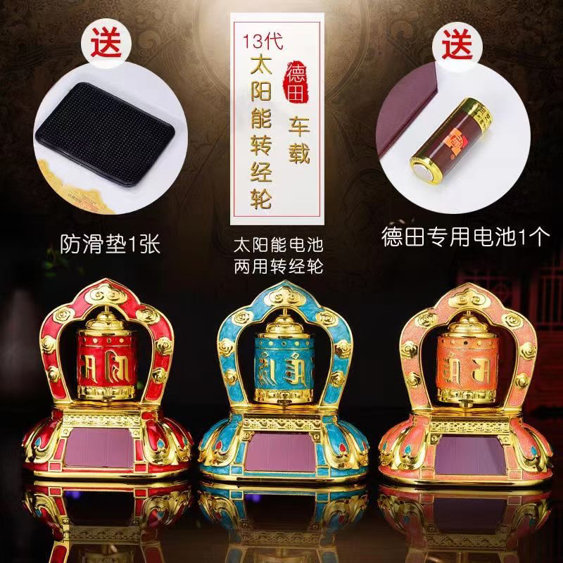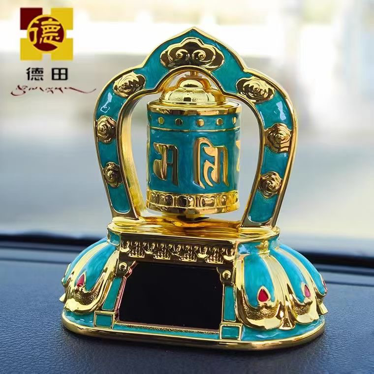 德田13代彩绘合金太阳能转经轮转经筒车载车内汽车摆件车饰摆饰用品