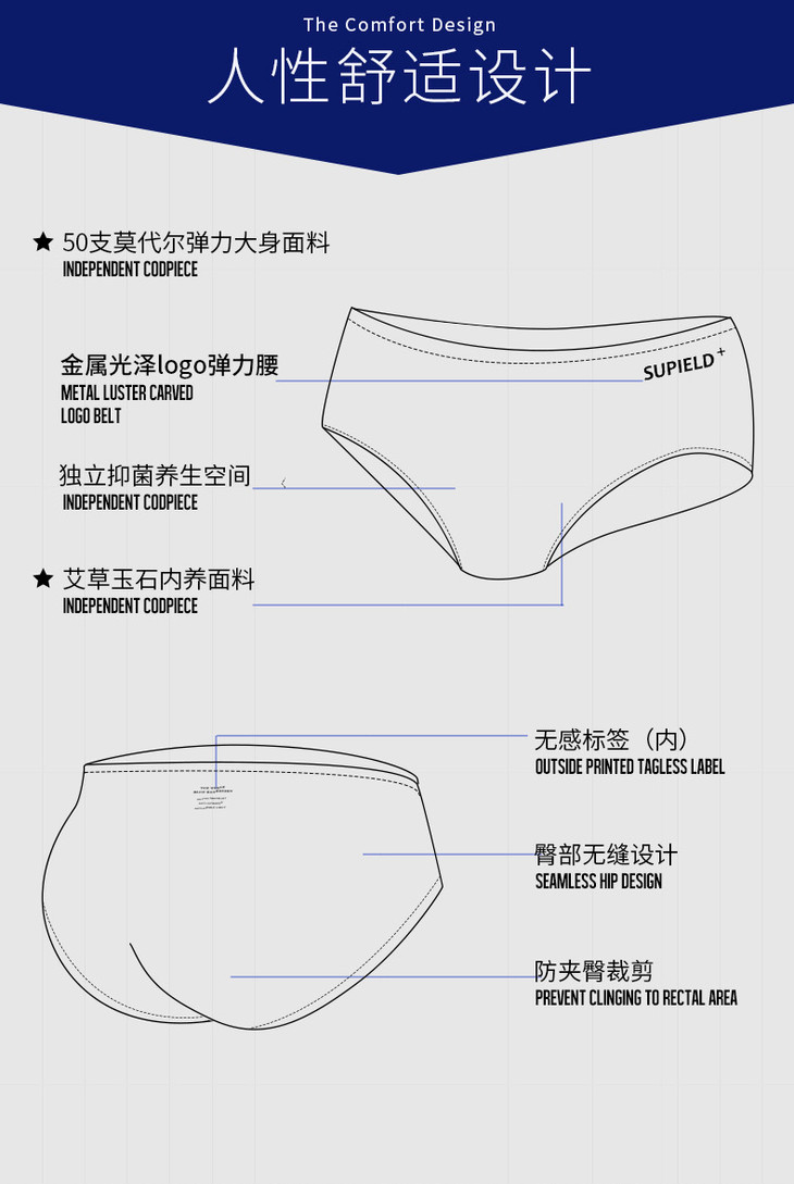 3条装Supield素湃黑科技艾草冰丝凉感内裤男薄款抗菌平角裤四角裤