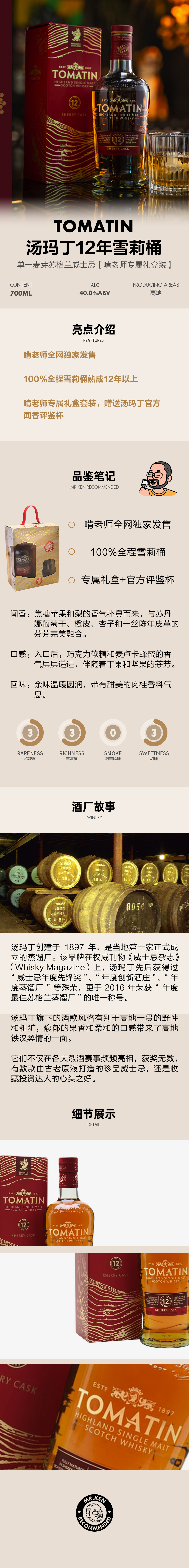 【独家礼盒】汤玛丁(Tomatin)12年单一麦芽苏格兰威士忌【啃老师专属礼盒装】
