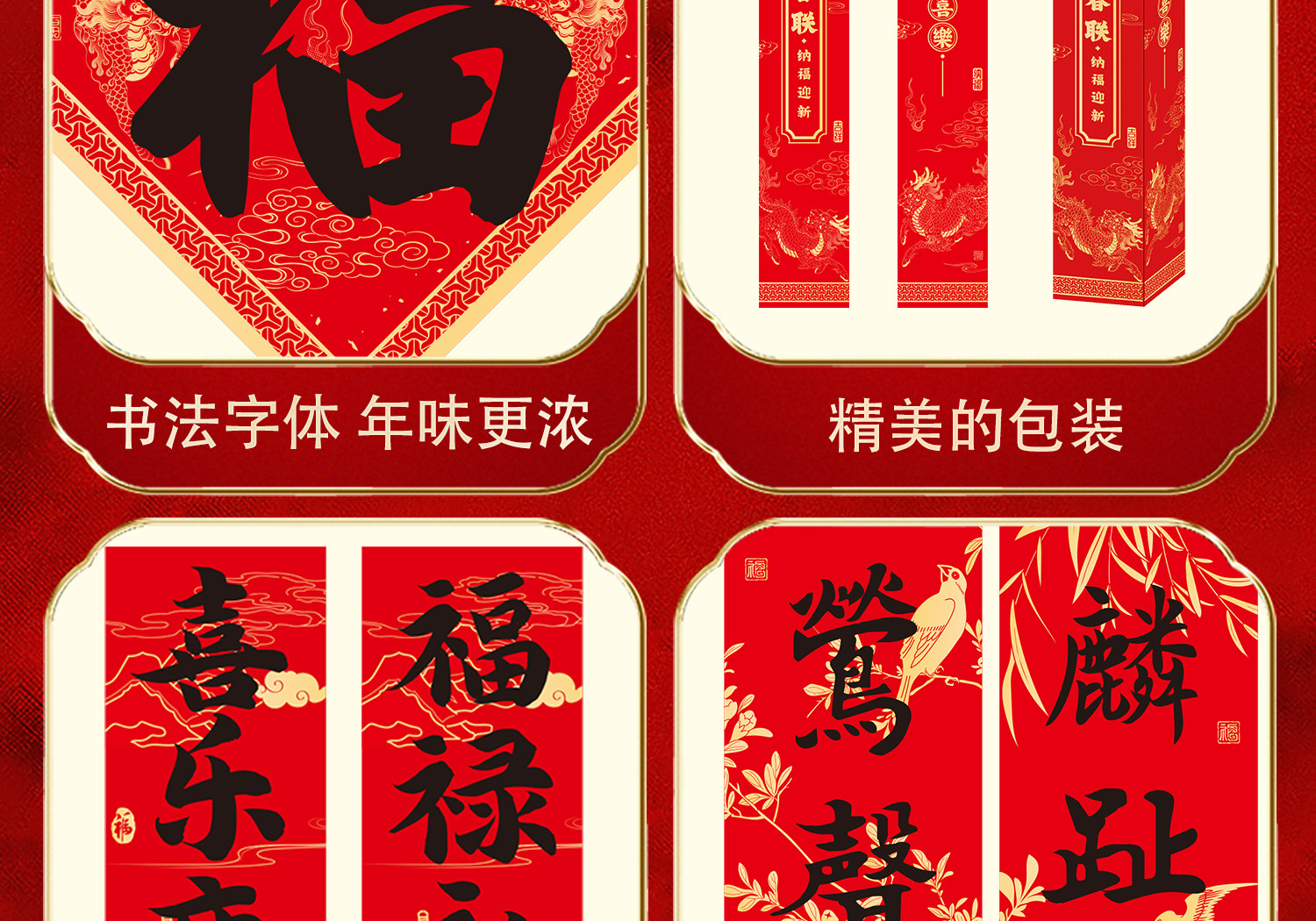 心选丨【9.9元包邮6件套】2026年马年新款春节过年书法对联入户门贴福字创意马年书法对联【礼盒装】