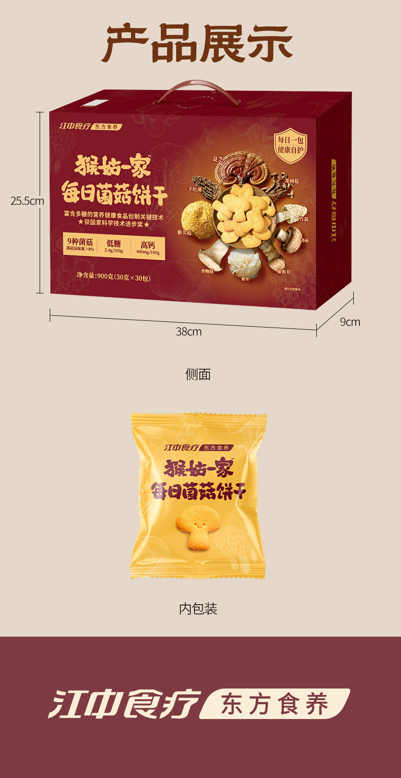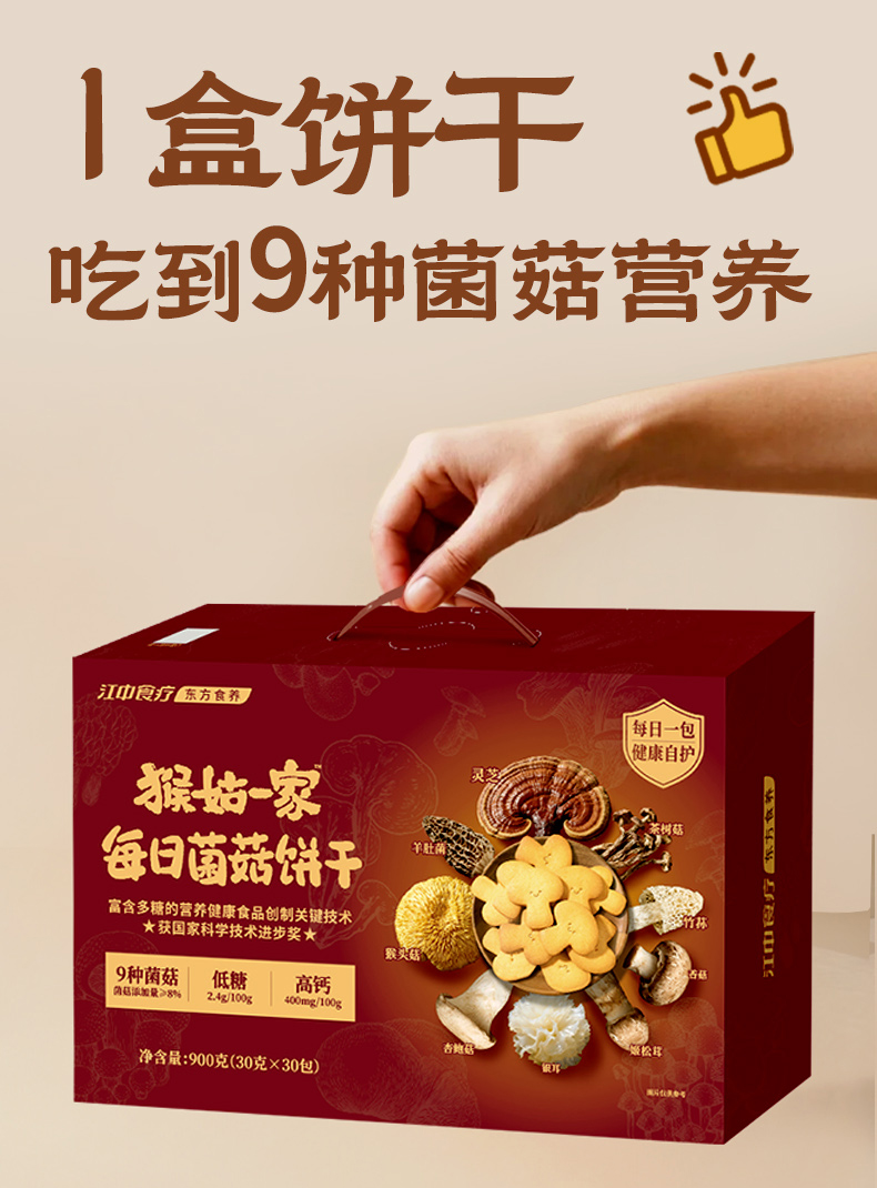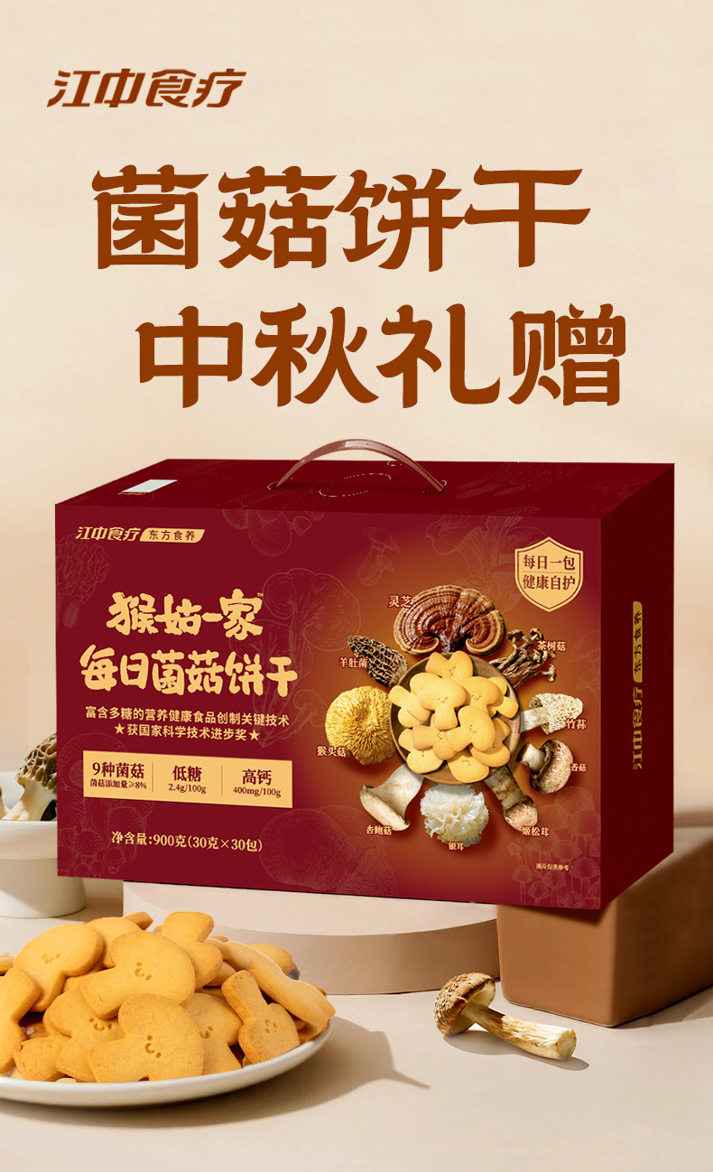 【新品】江中食疗 猴姑一家 每日菌菇饼干900g 高钙 低糖 9种菌菇 2025年9月生产 保质期12个月