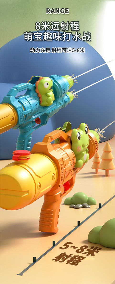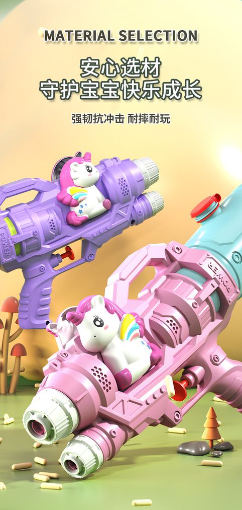 【开心加倍❗️儿童卡通喷水枪】锻炼手眼协调,满足爱玩水天性❗️六一玩具礼物网红双喷头戏水枪小马鸭子鲨鱼抽拉式滋水枪新年礼盒年货礼盒