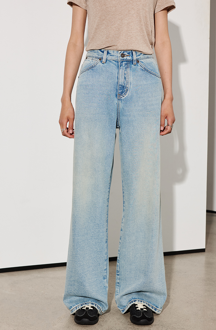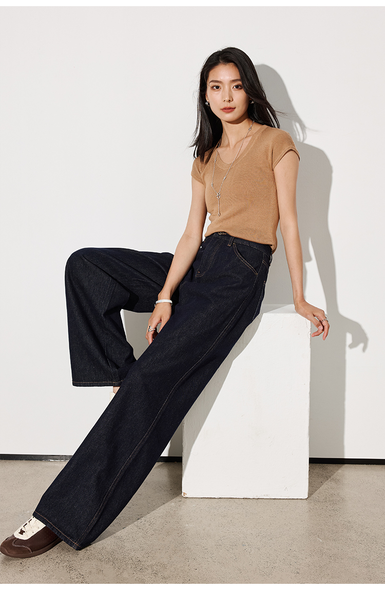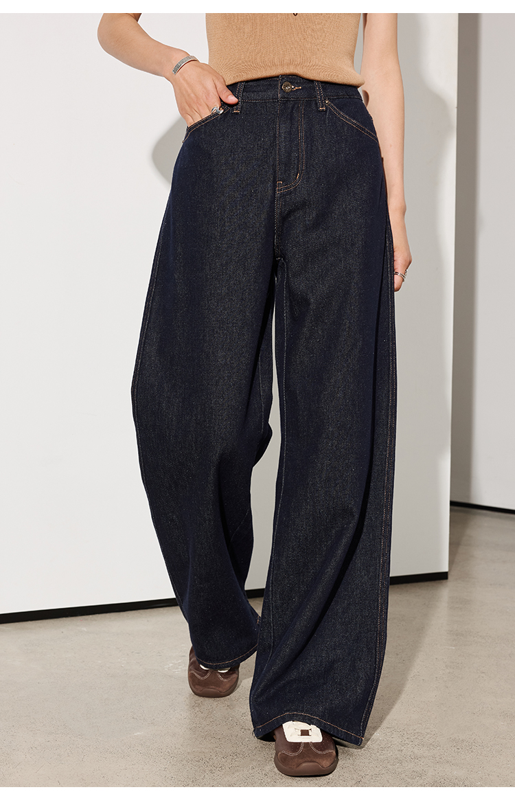 DENYBULES美式一体植绒直筒牛仔拖地裤