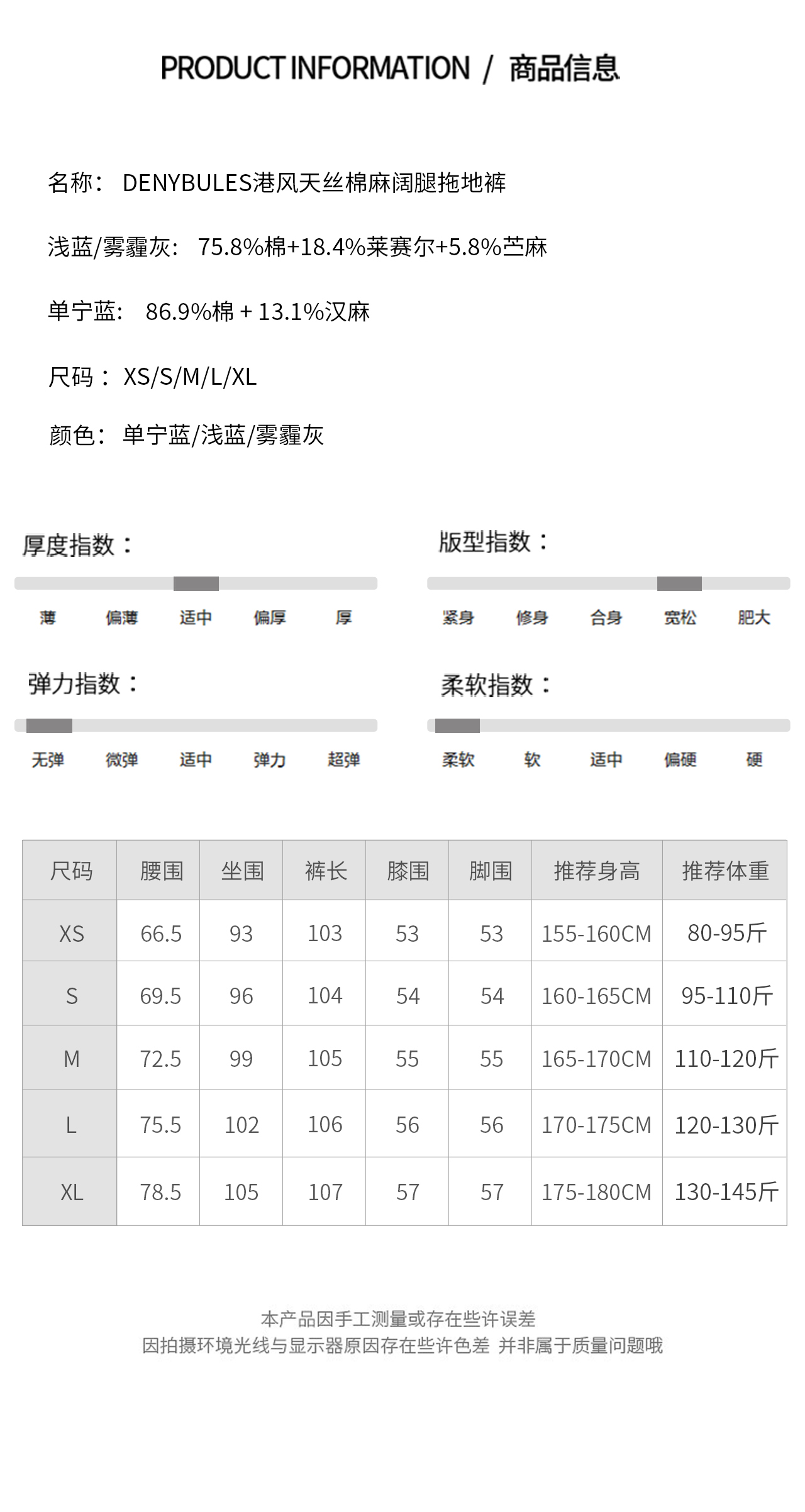DENYBULES港风天丝棉麻阔腿拖地裤DB1120
