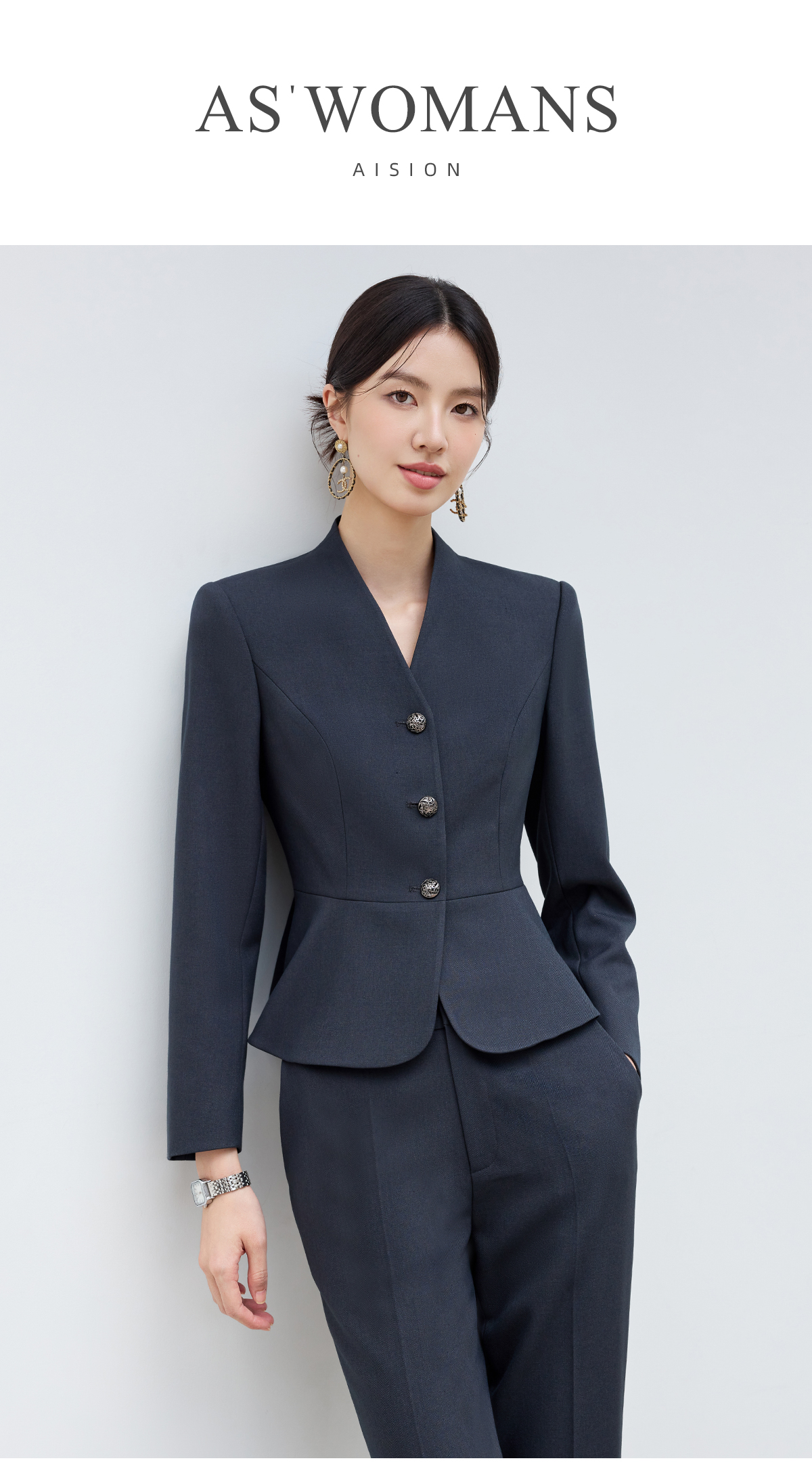 IWY/高端西装正装女职业套装藏青色面试商务工作服西服两件套25CP809