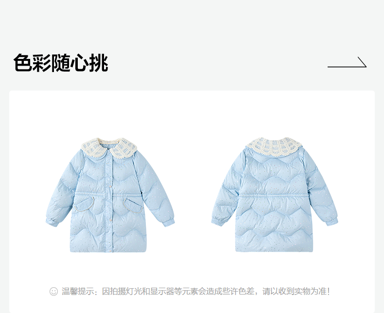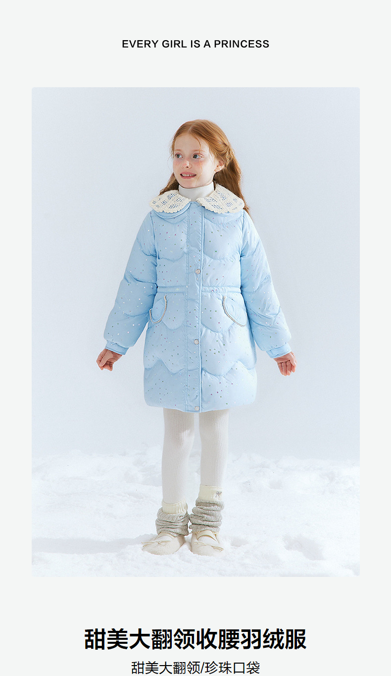 笛莎Deesha 童装女童羽绒服2025冬新款女童甜美大翻领收腰羽绒服