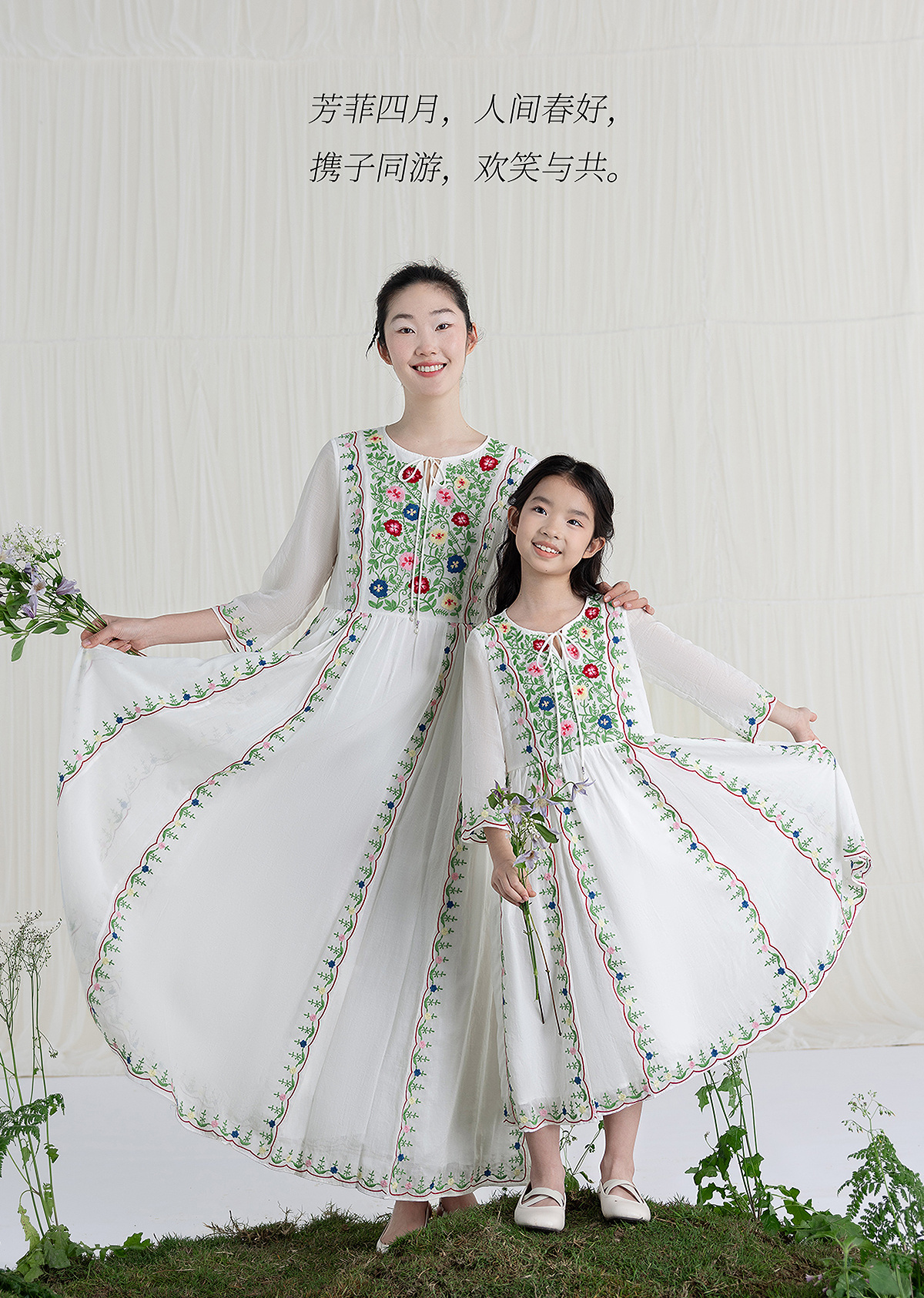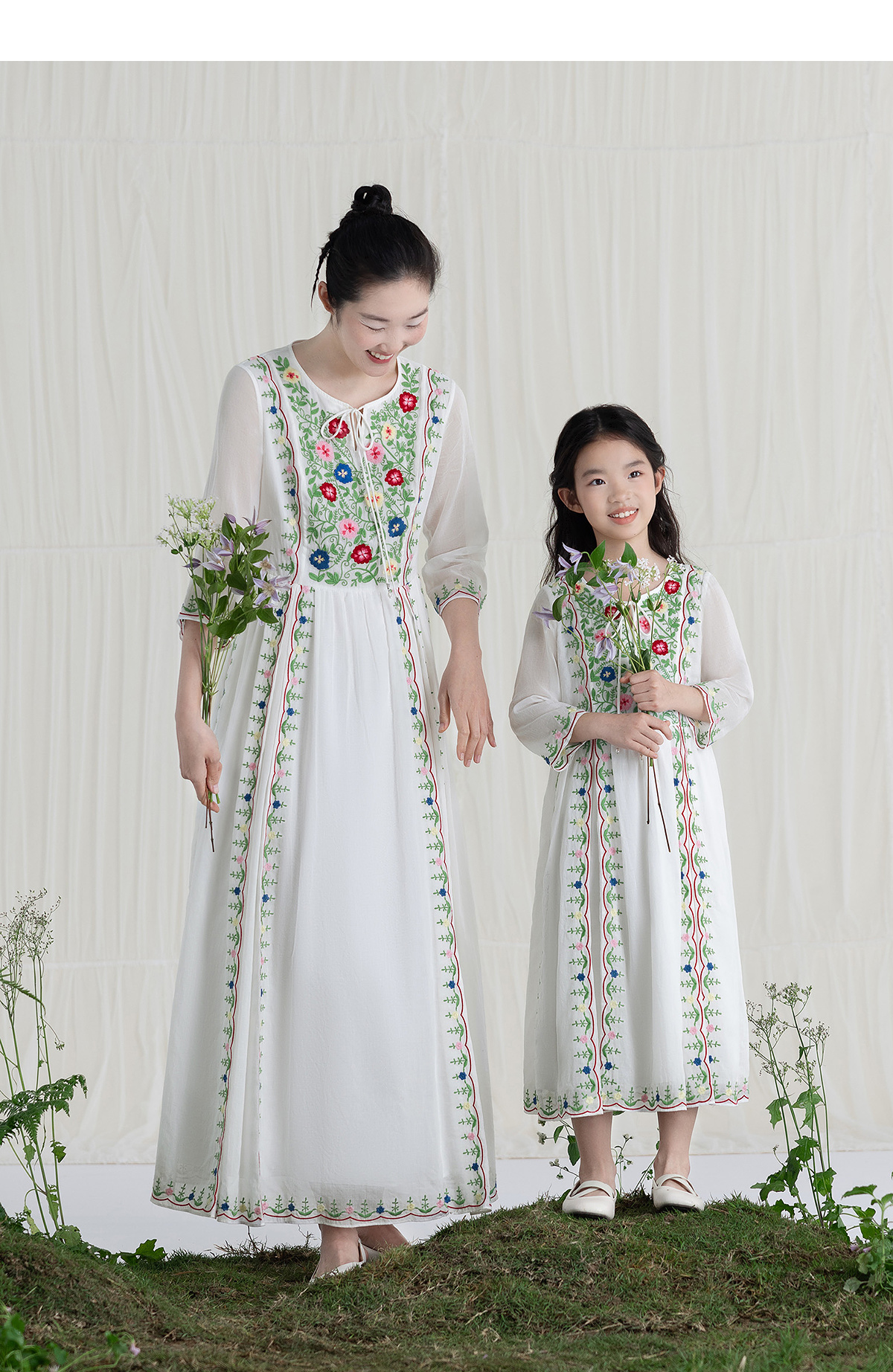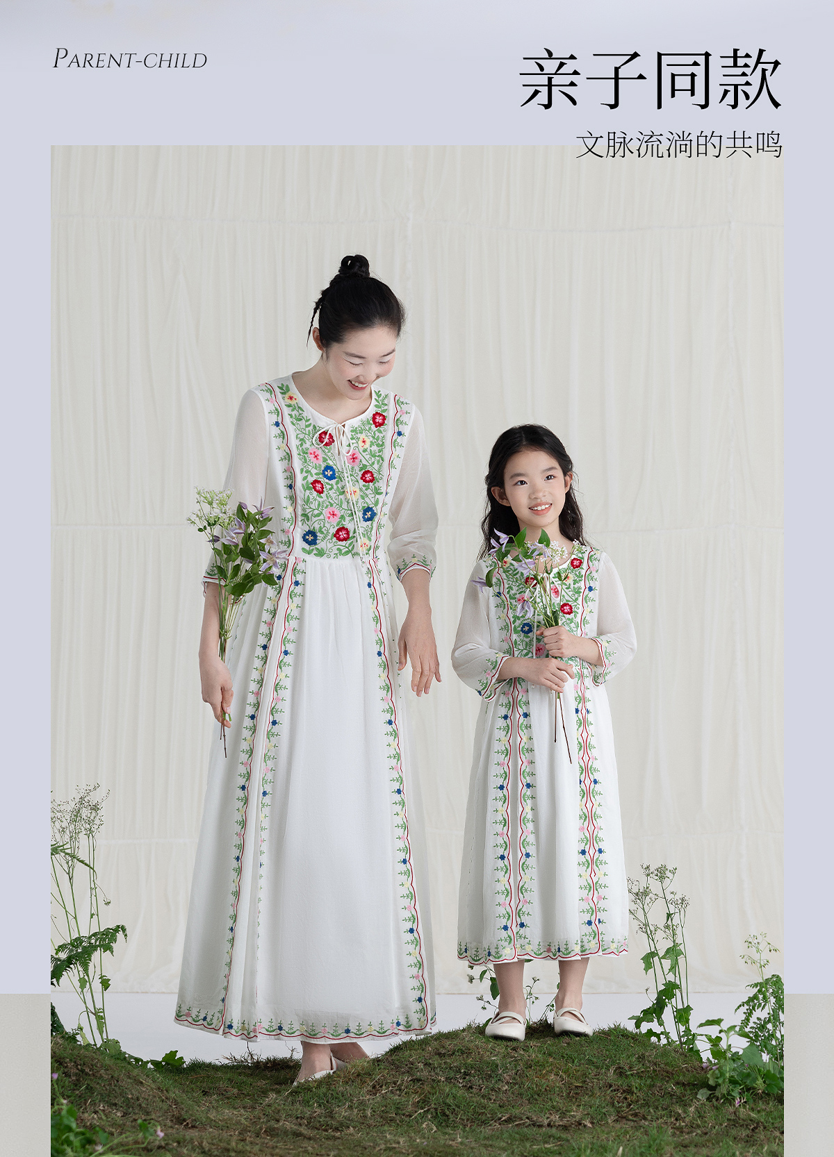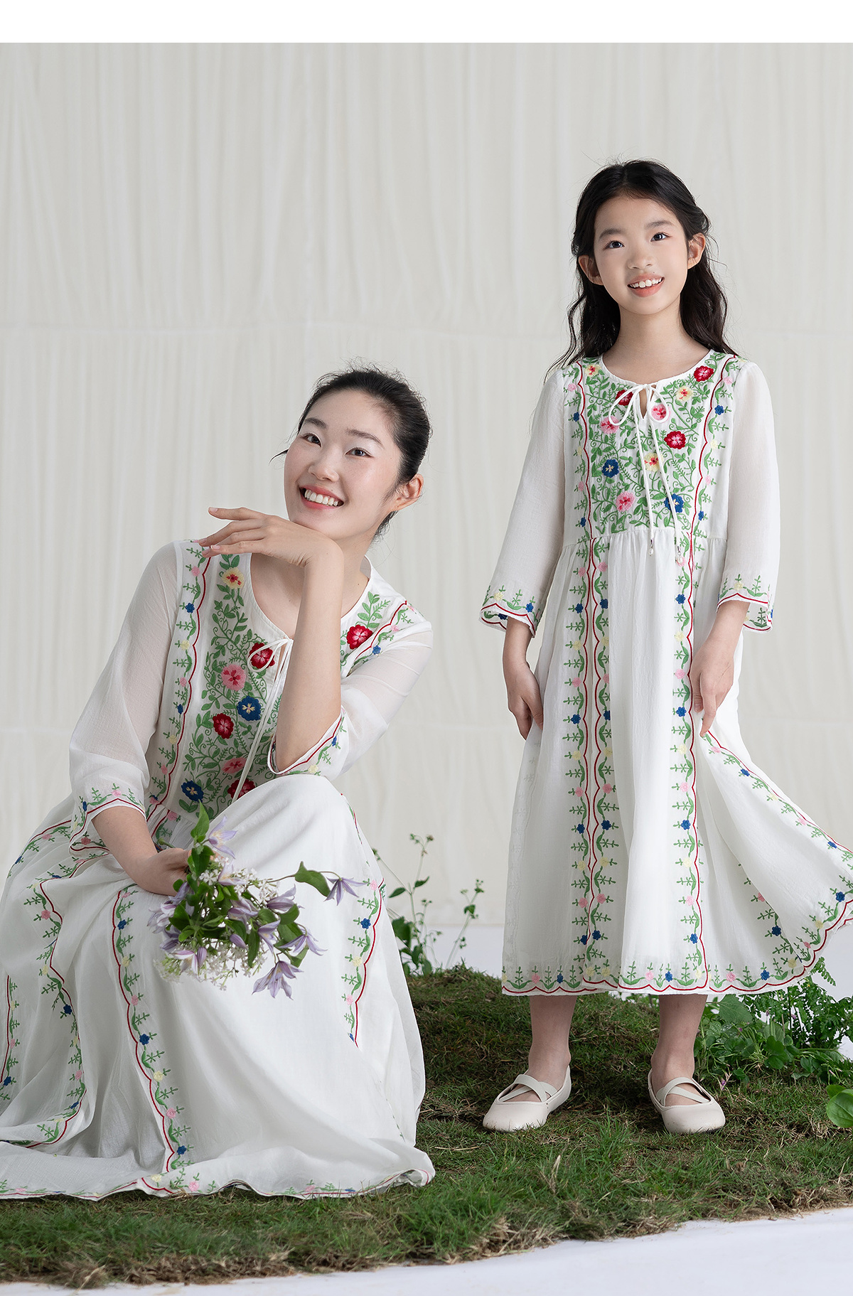 【林栖设计小店】婴儿棉亲子款连衣裙墨西哥刺绣宽松2025夏季新品童装连衣裙女3952060