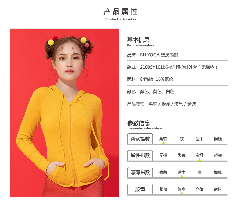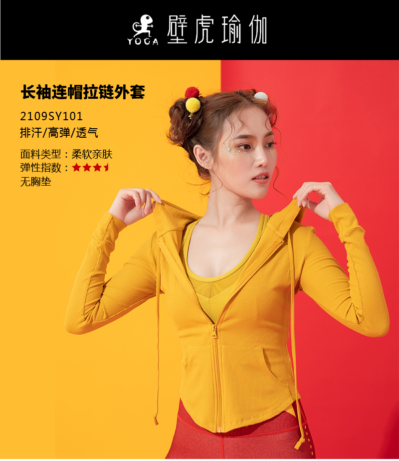 【七十二小时发货】壁虎瑜伽【2109SY101】长袖连帽拉链外套(无胸垫)