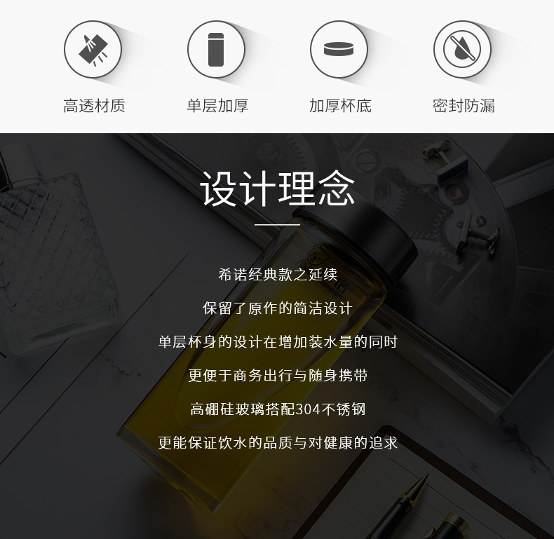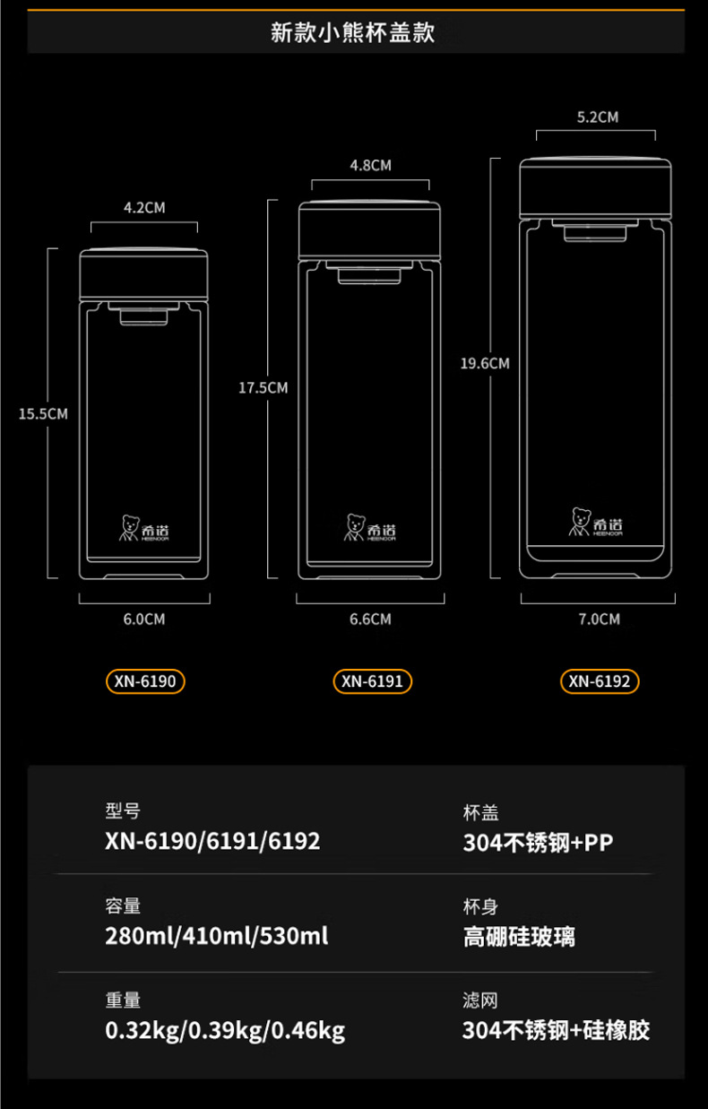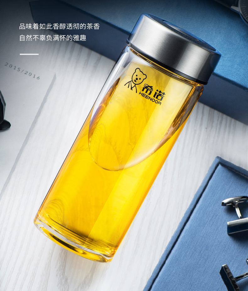 【加大容量!希诺单层玻璃杯】男士泡茶杯办公室茶杯便携杯子6017新款小熊杯。ry