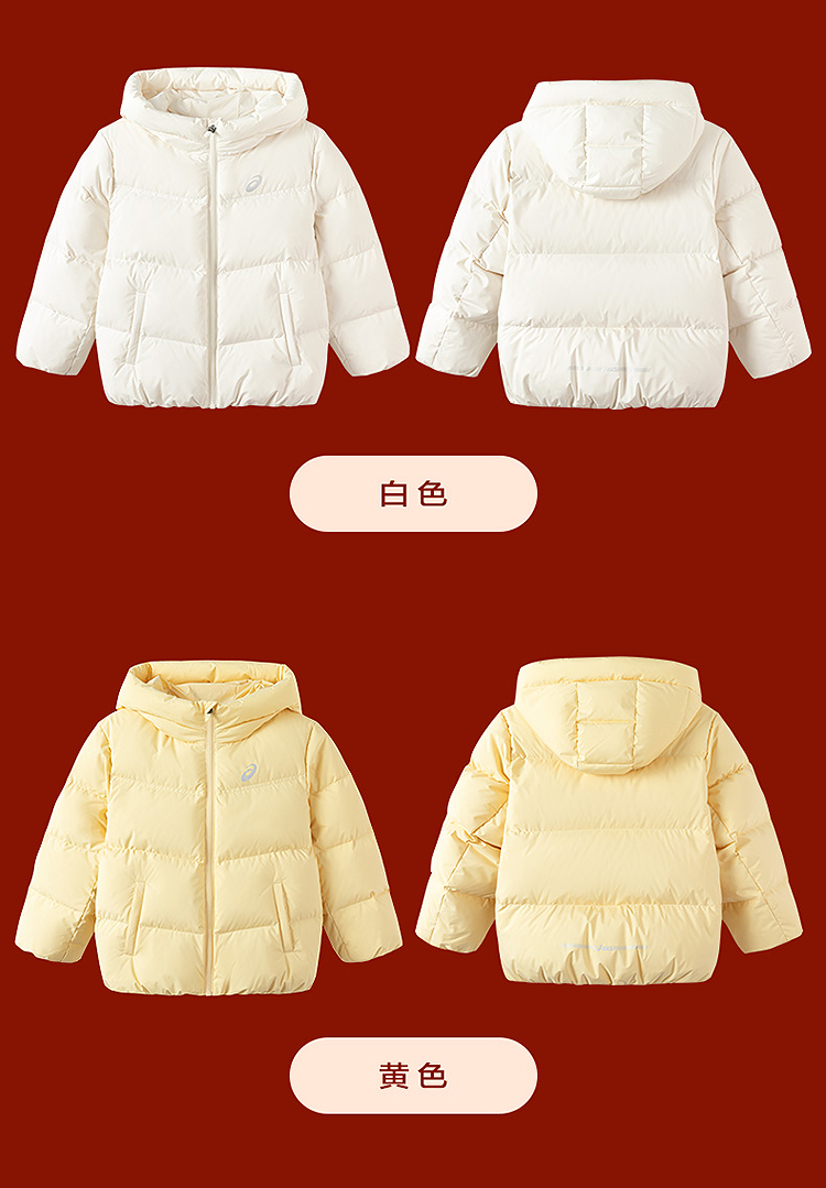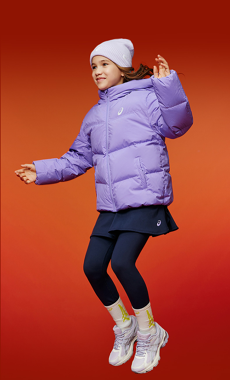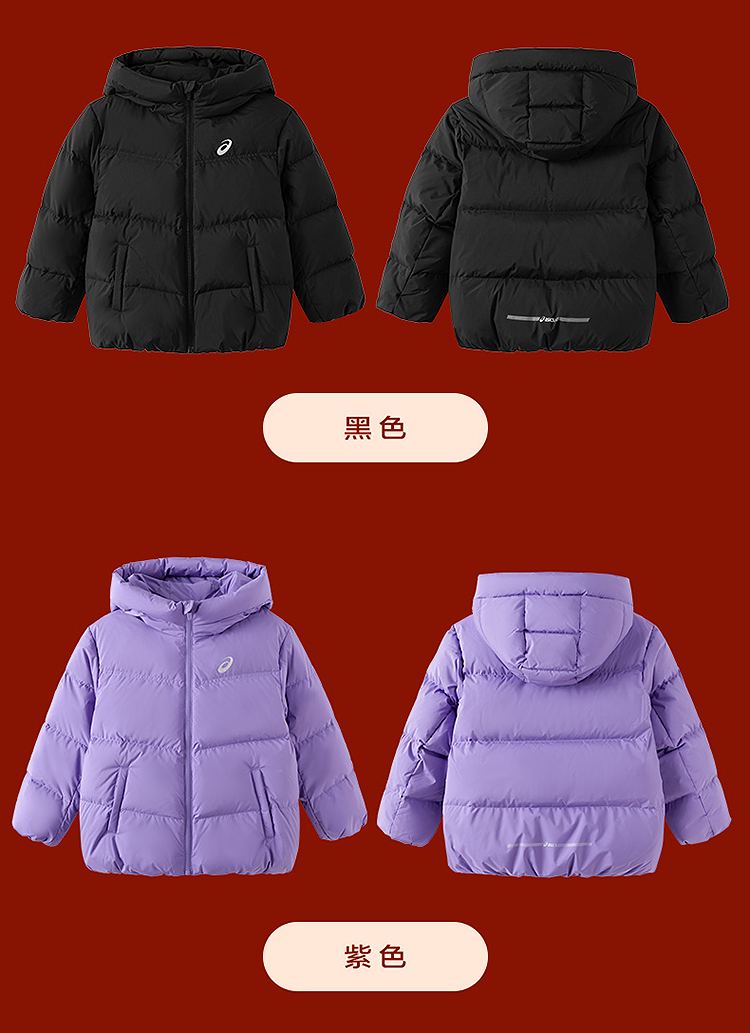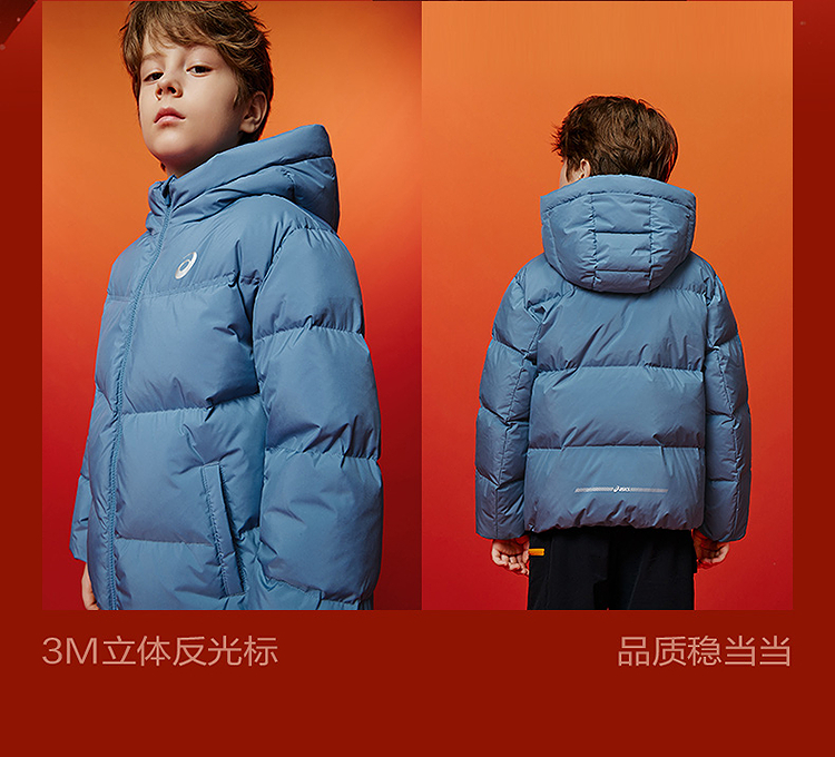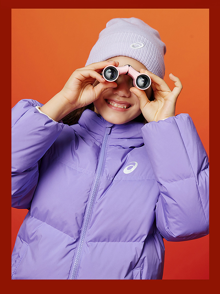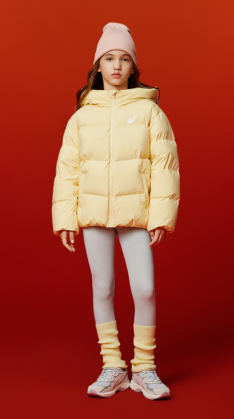 ASICS/亚瑟士童装25年冬季中大童宽松短款泡芙羽绒服外套轻薄舒适