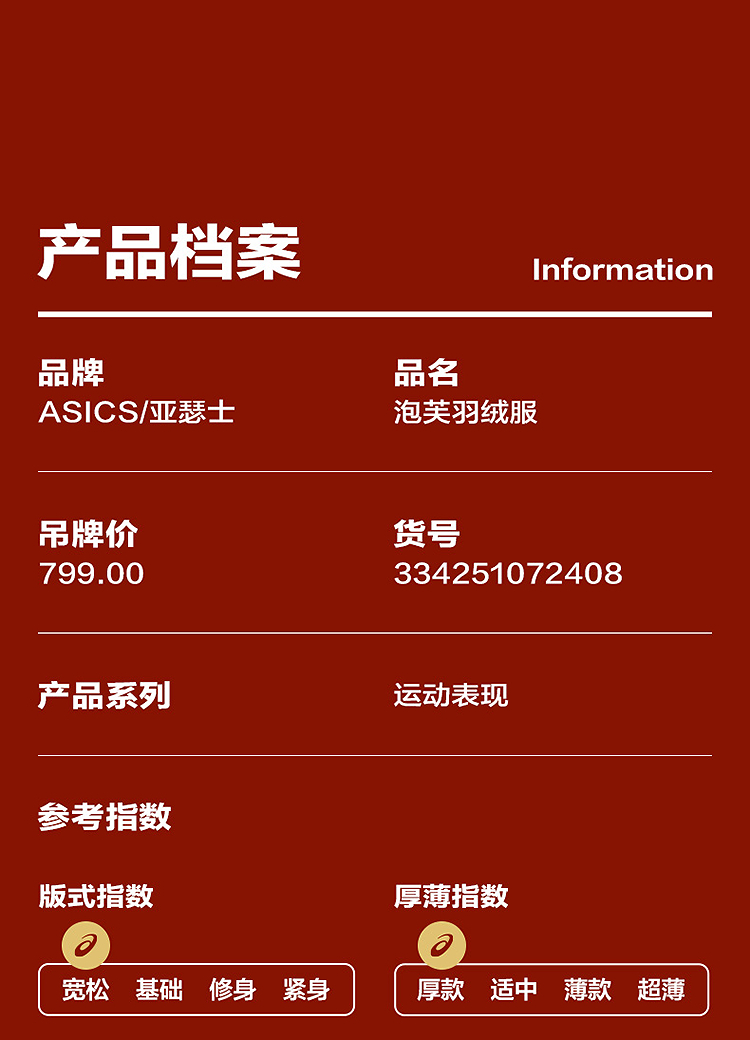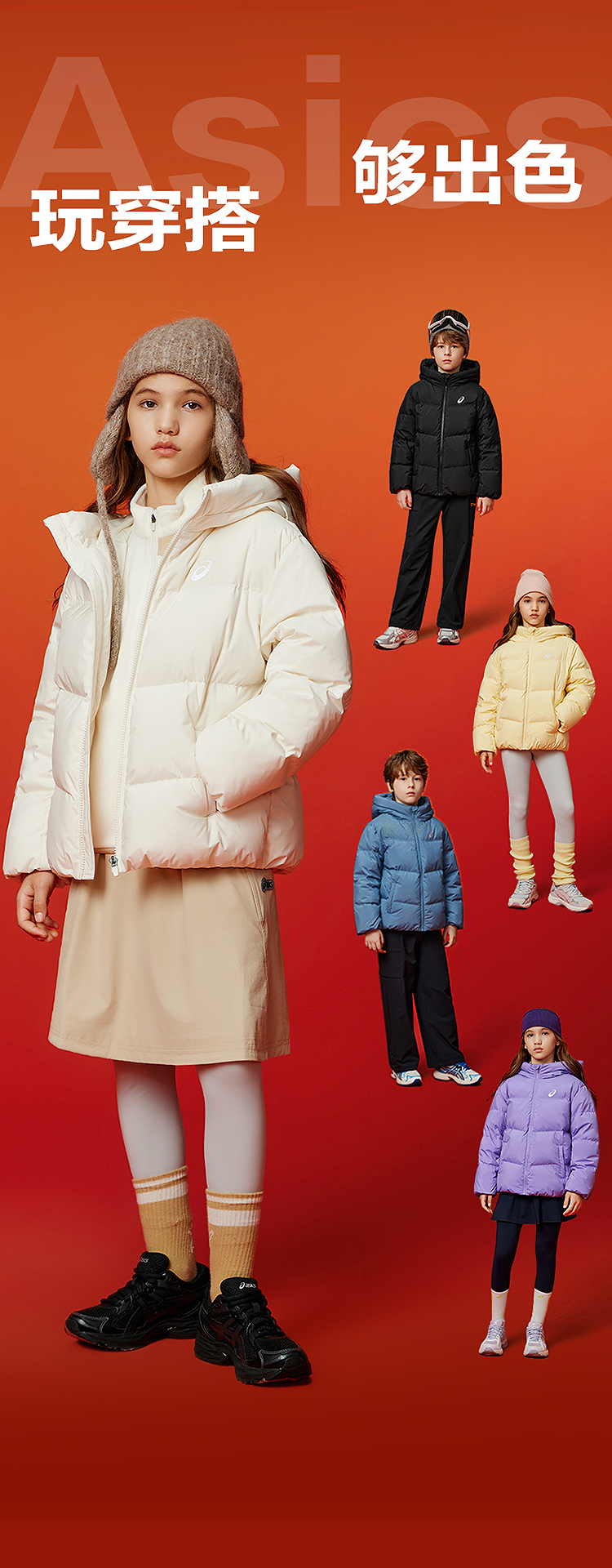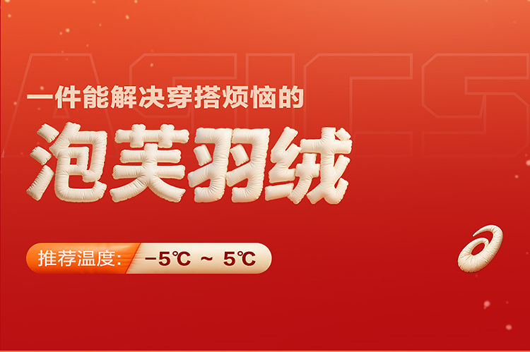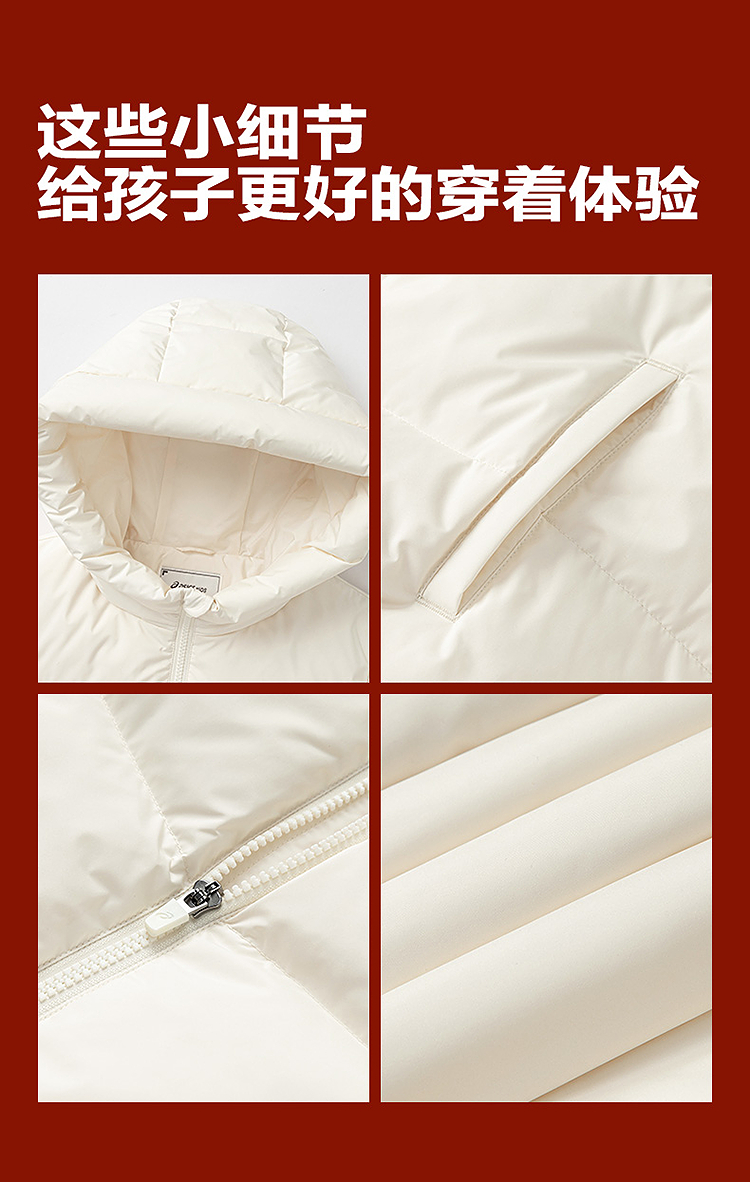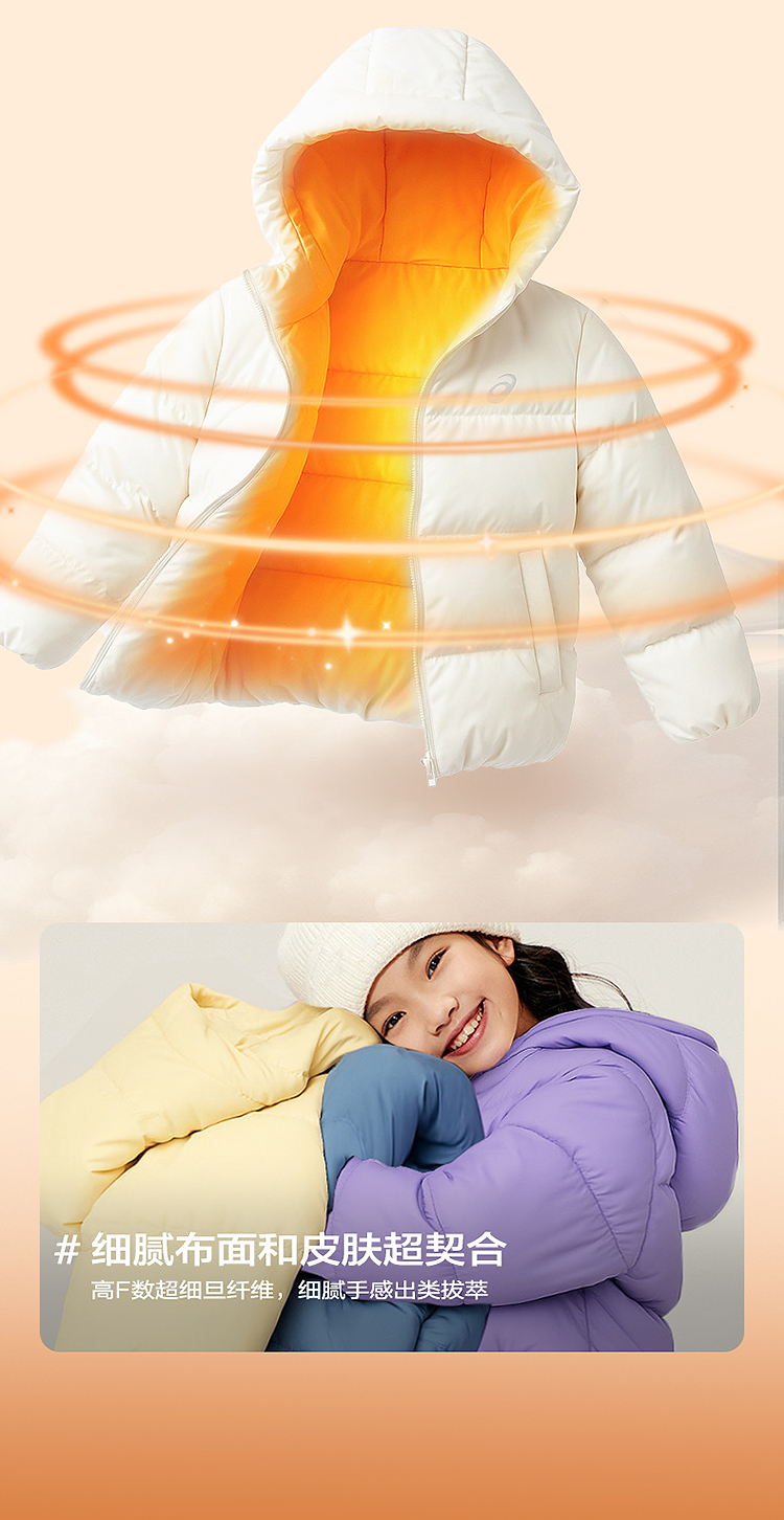 ASICS/亚瑟士童装25年冬季中大童宽松短款泡芙羽绒服外套轻薄舒适