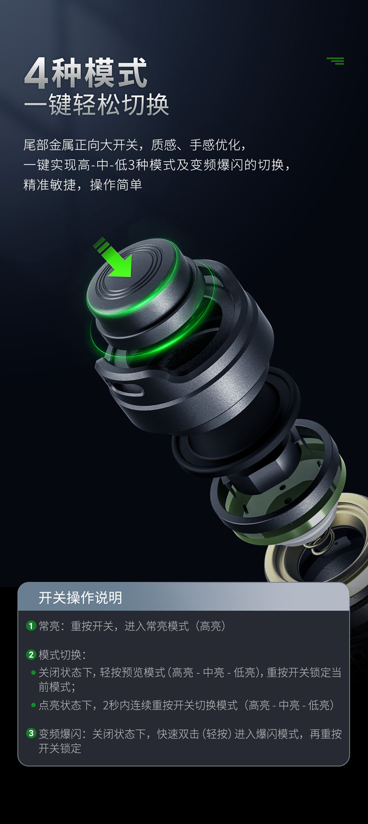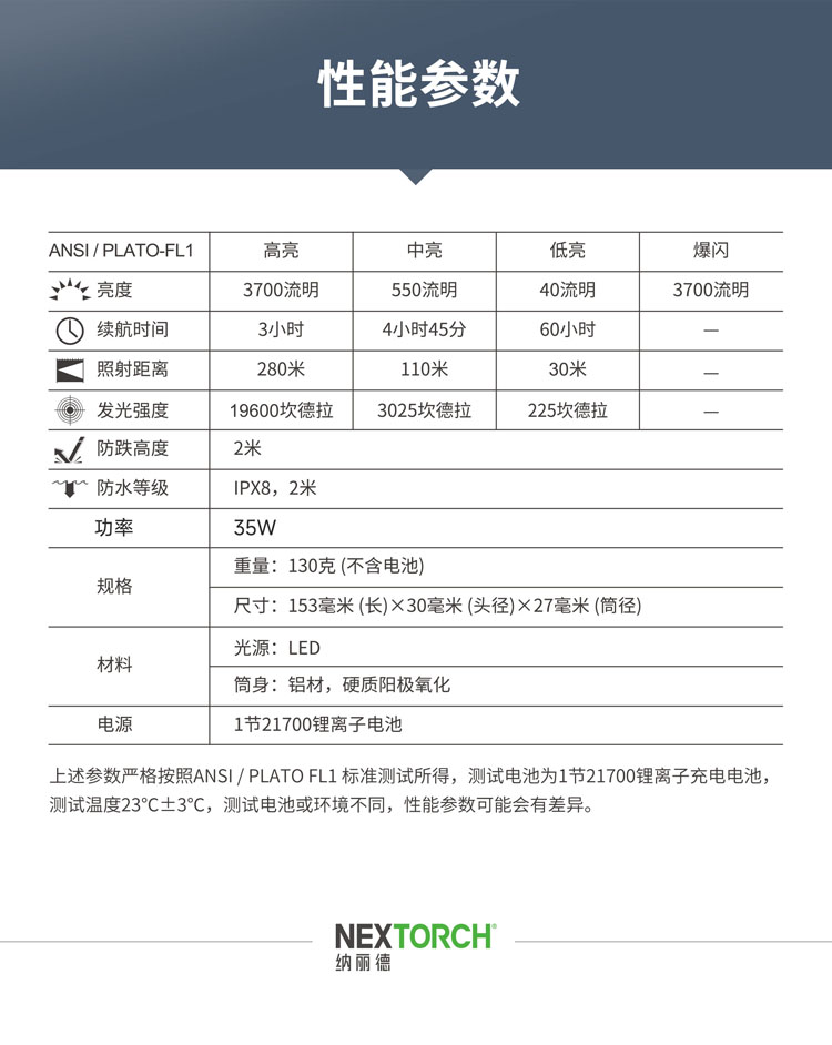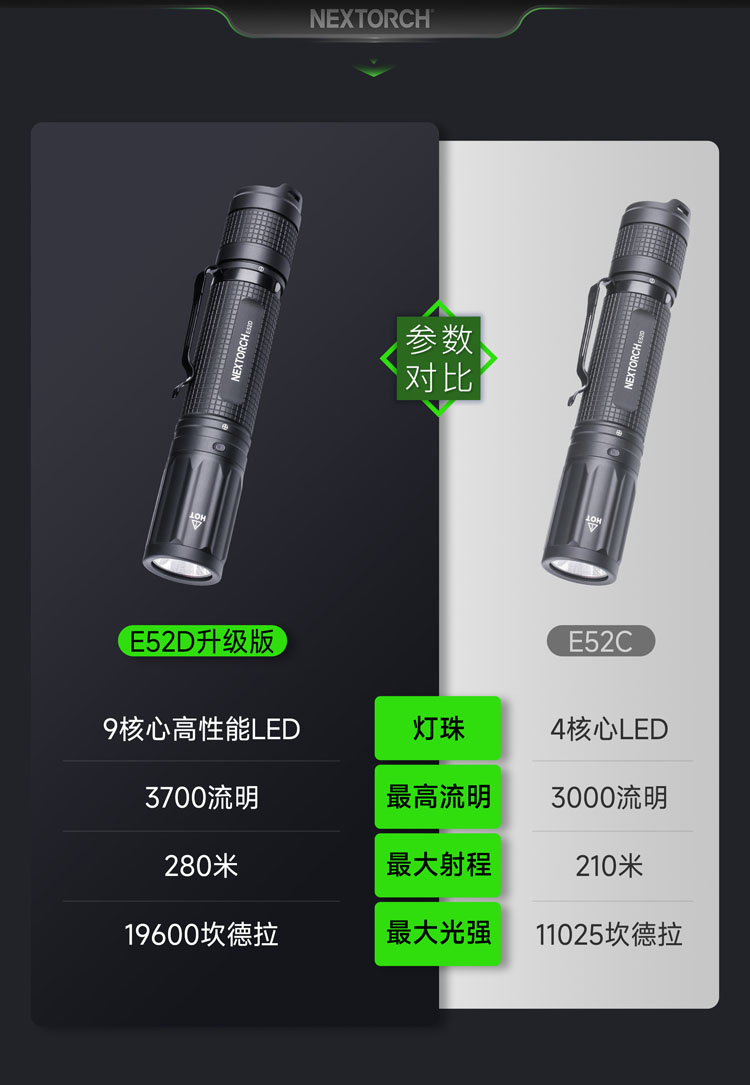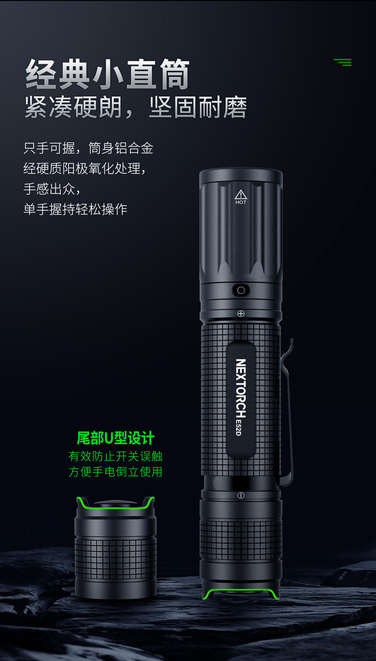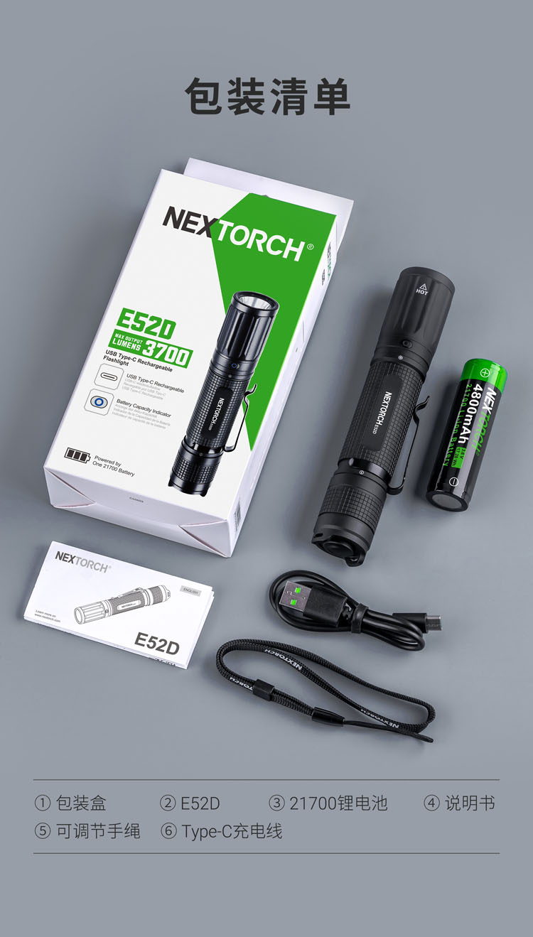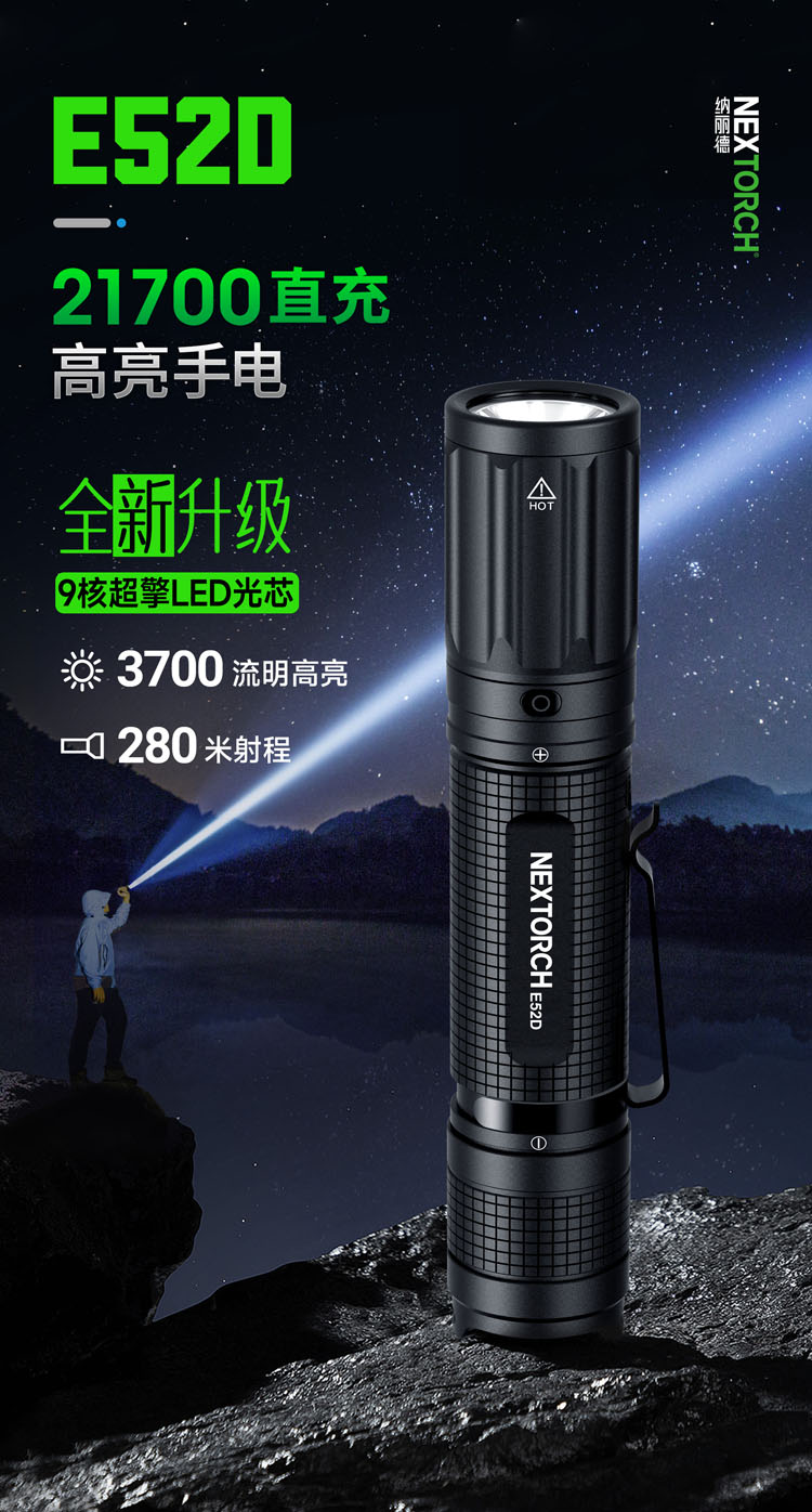 纳丽德(NEXTORCH)E52D高亮远射5档强光手电筒21700电池直充