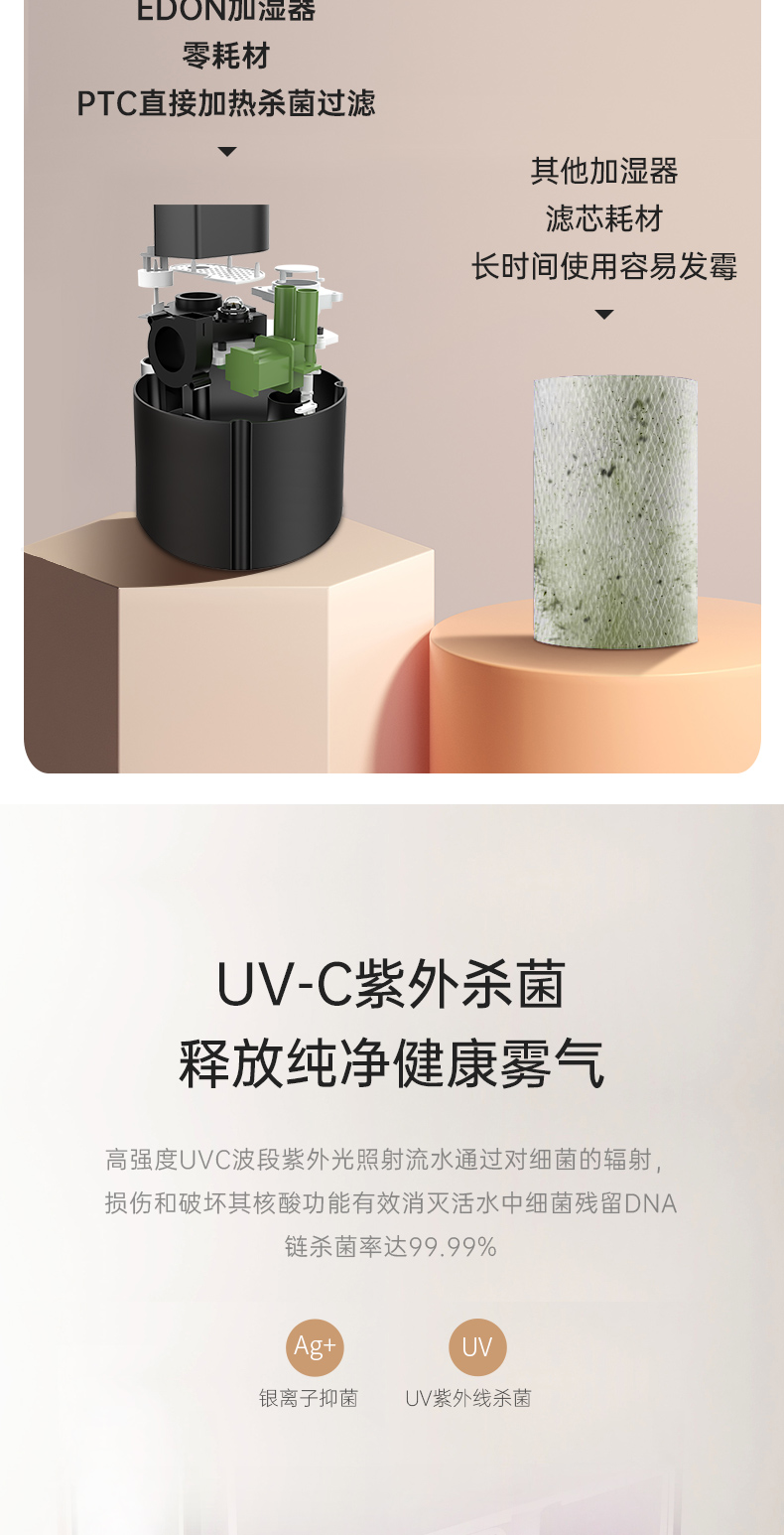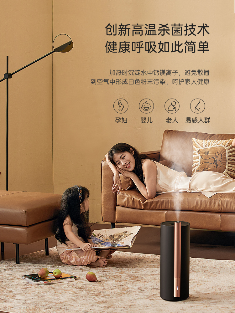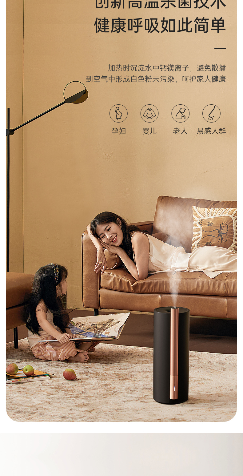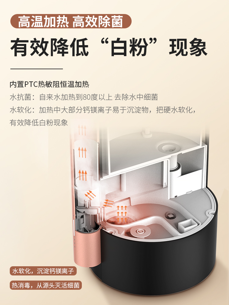 创新高温杀菌,出39°的暖雾,加热沉淀了水中的钙镁离子,避免散播白色粉末污染,家有孕妇、宝宝、老人、鼻炎群体都合适