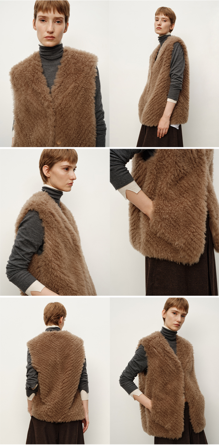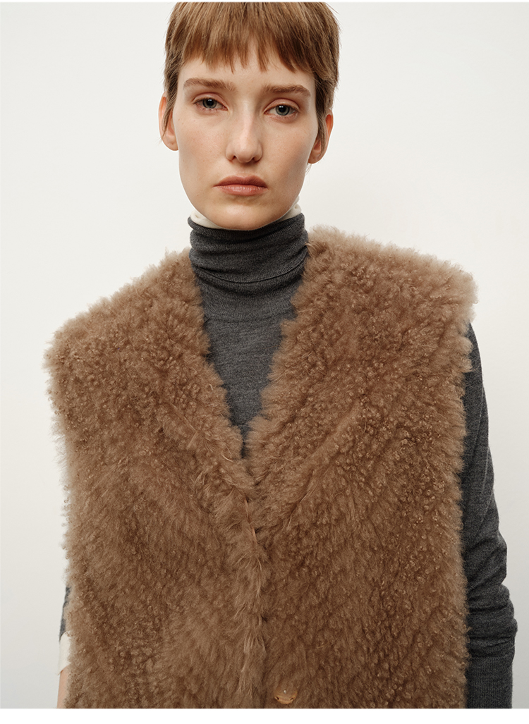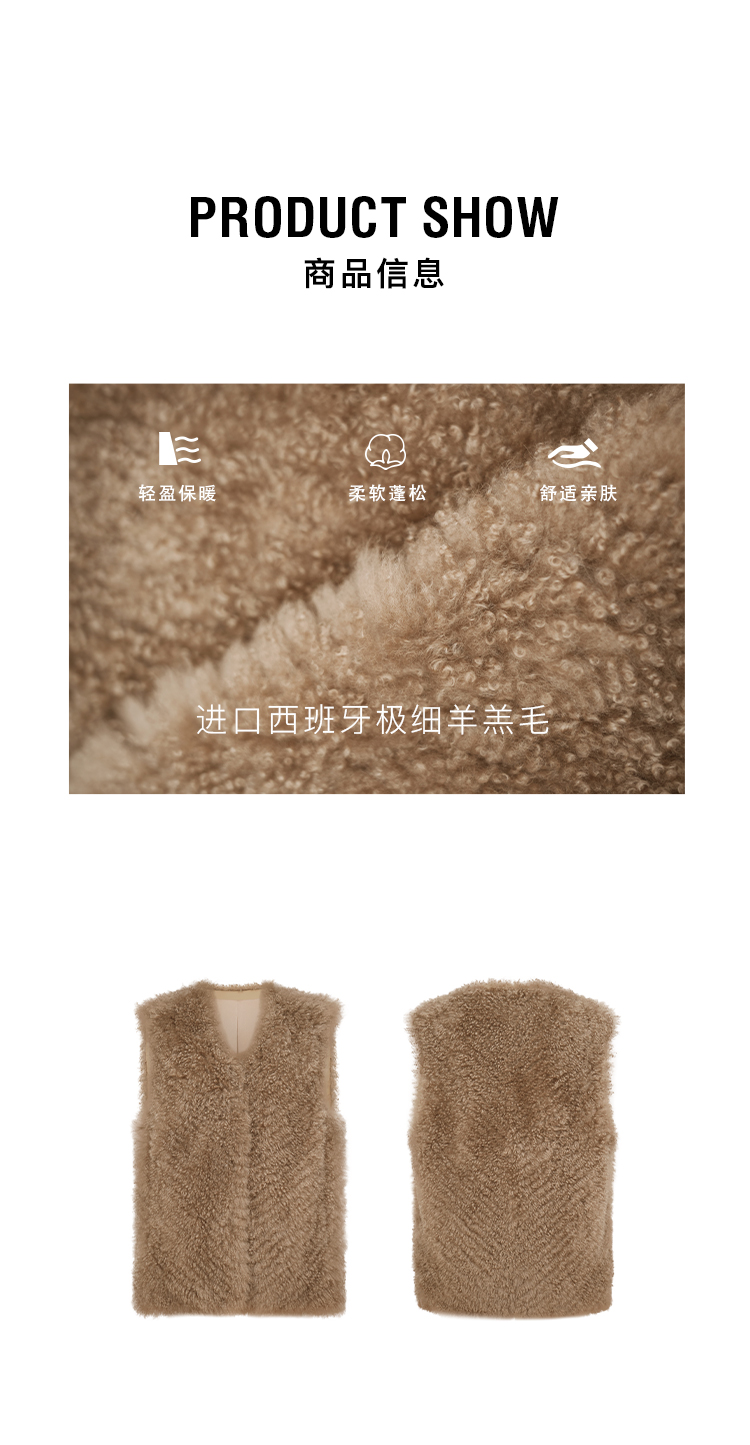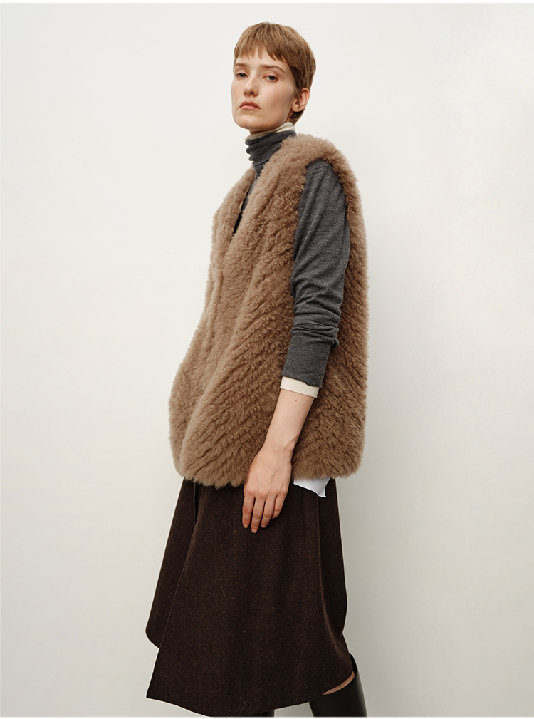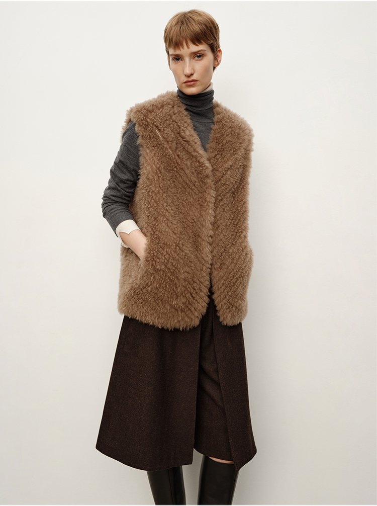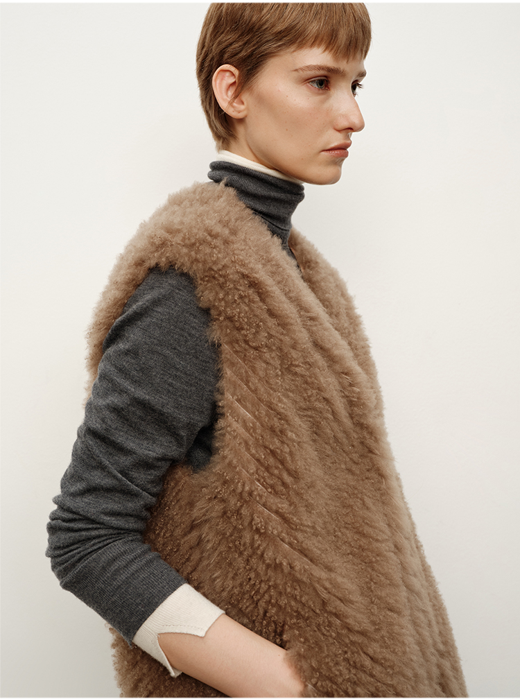 HIDEMI 进口西班牙极细羊羔毛背心马甲皮毛一体 摩卡灰
