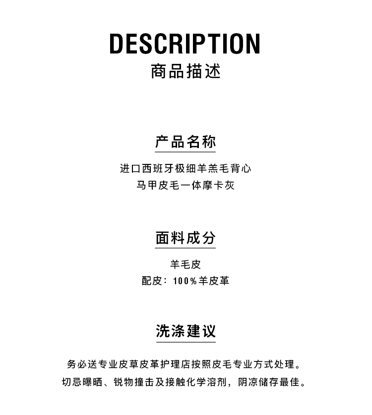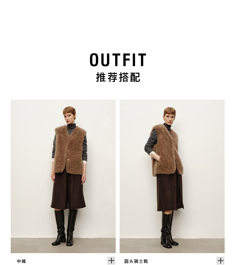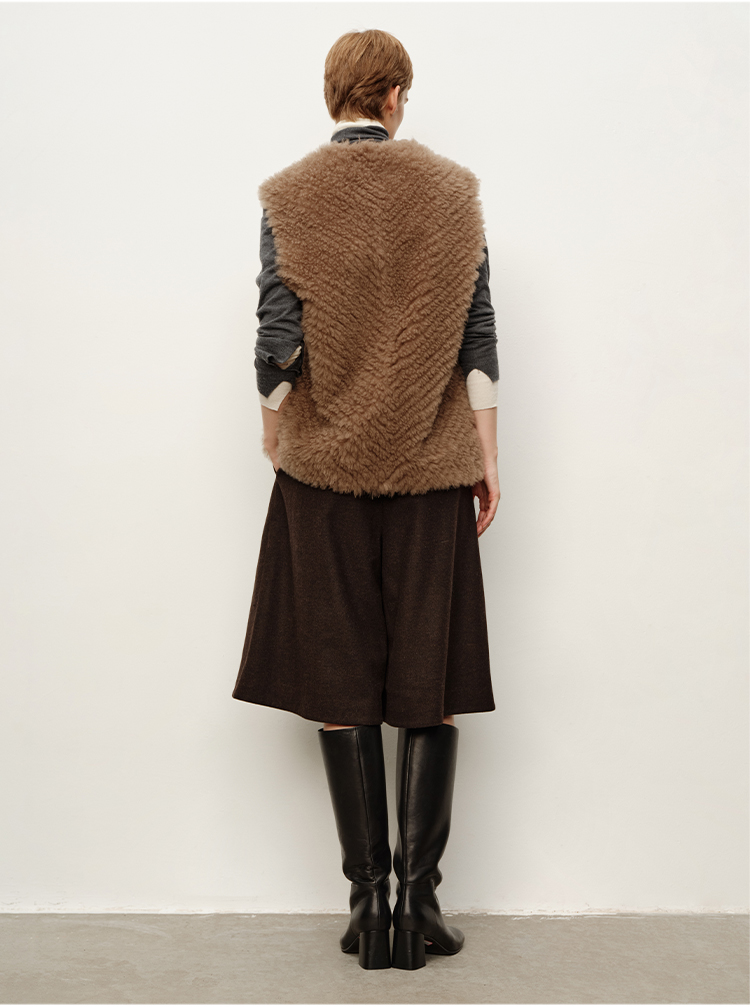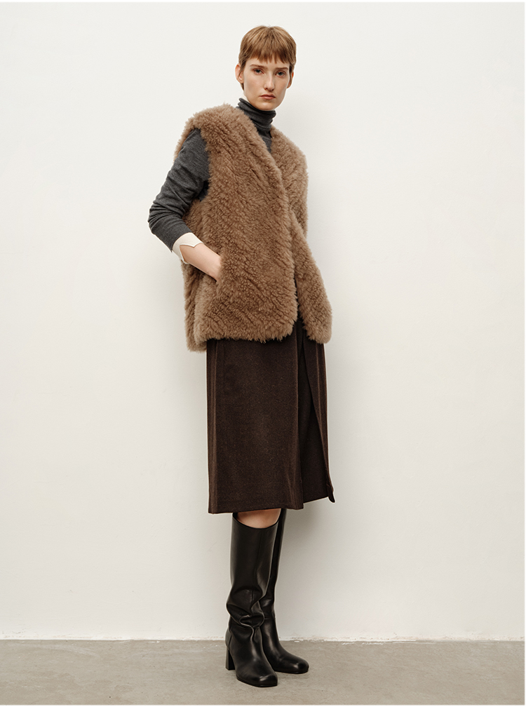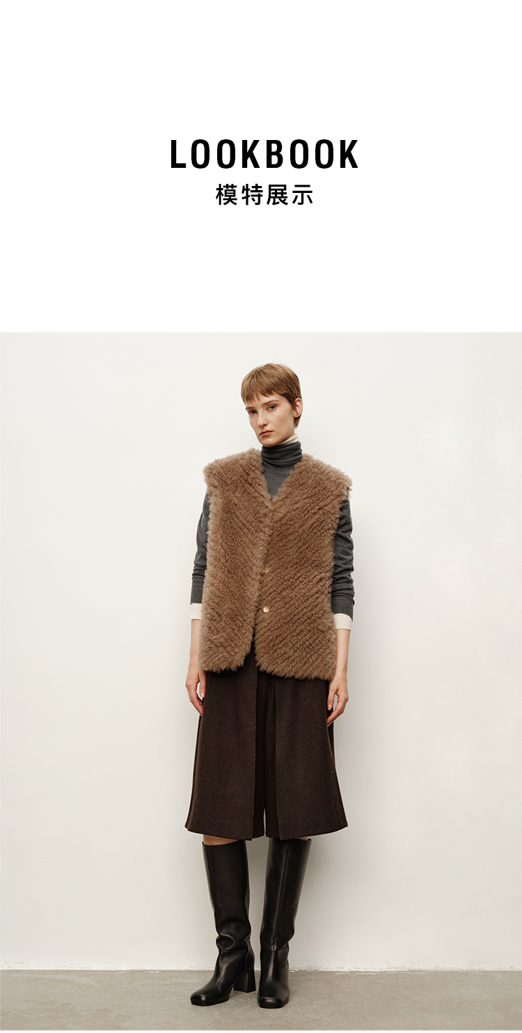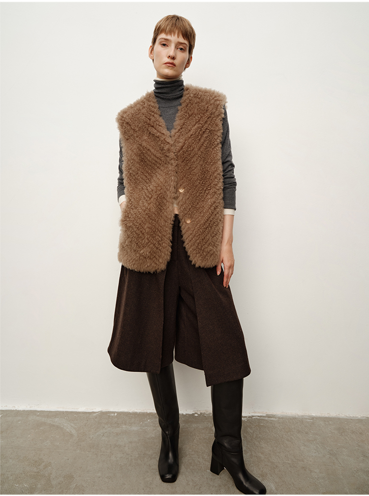 HIDEMI 进口西班牙极细羊羔毛背心马甲皮毛一体 摩卡灰