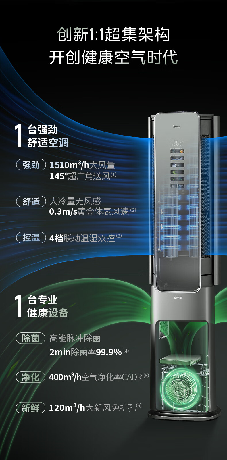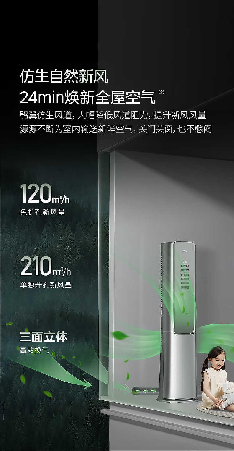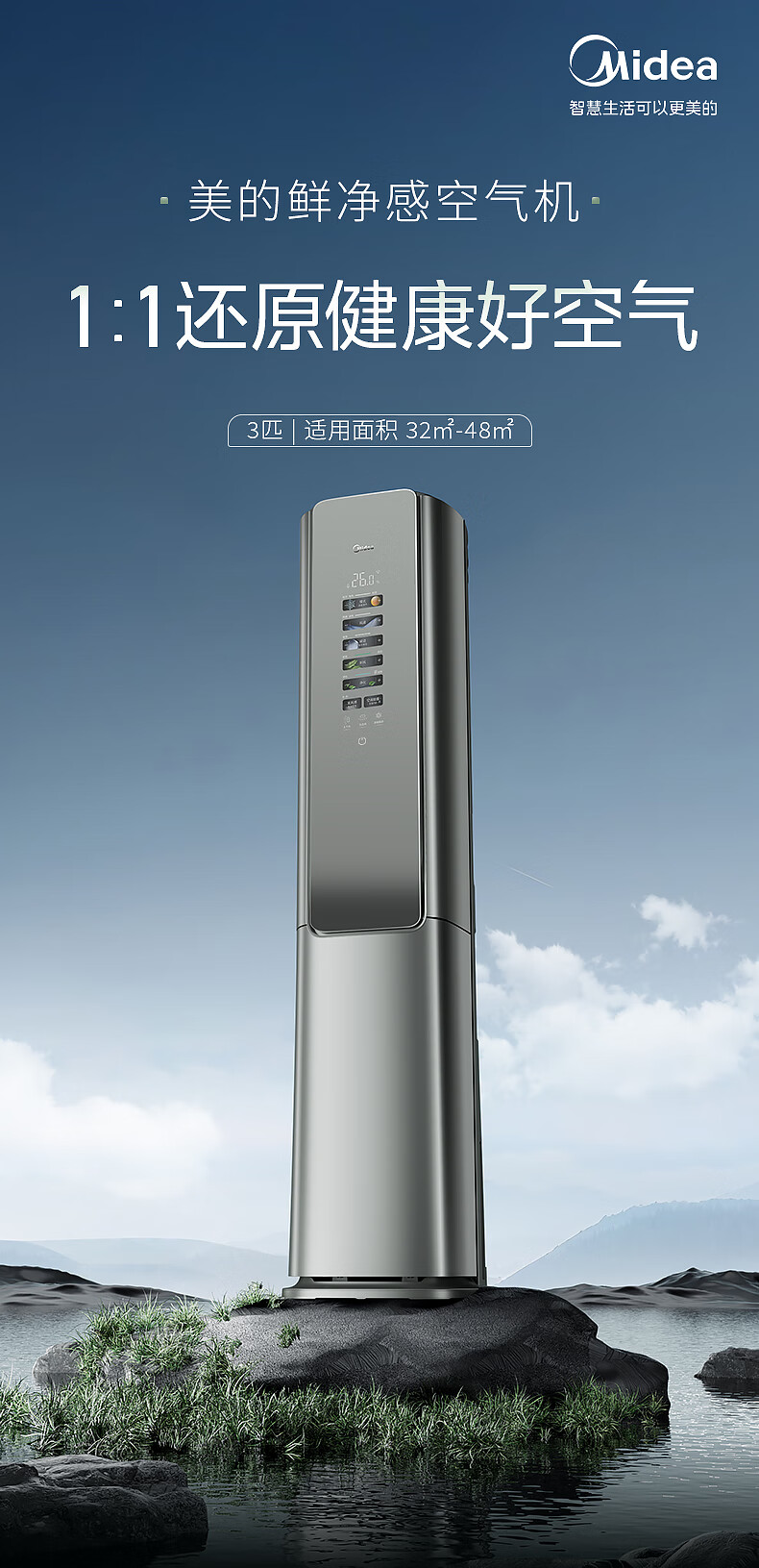 美的空气机 3匹 超一级能效 自然新风大冷量无风感 客厅立式空调柜机 轻奢风 家电国家补贴KFR-72LW/T5
