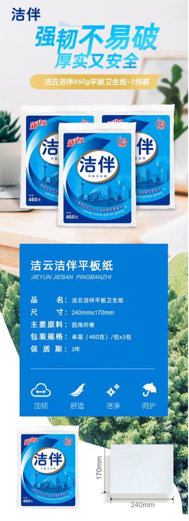 【年货节】洁云 卫生纸 洁伴 460g平板卫生纸3包装 大规格L码 平板纸 厕纸(新老包装随机发货)